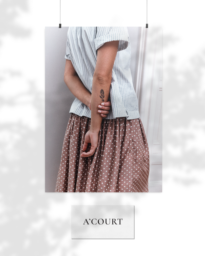 A’Court emerged from Rebecca Taylor's vision to transform the traditional fashion landscape. Originally from New Zealand, Rebecca ventured to New York after graduating, driven by a passion for new opportunities and creative growth. By producing small quantities and using premium materials, the brand minimises waste and offers seasonless pieces, encouraging long-term investment in timeless garments. From pleated dresses to blouses with delicate details and playful ruffles, A’Court invites you to care for your clothes like treasured friends, quoting Joan Crawford.