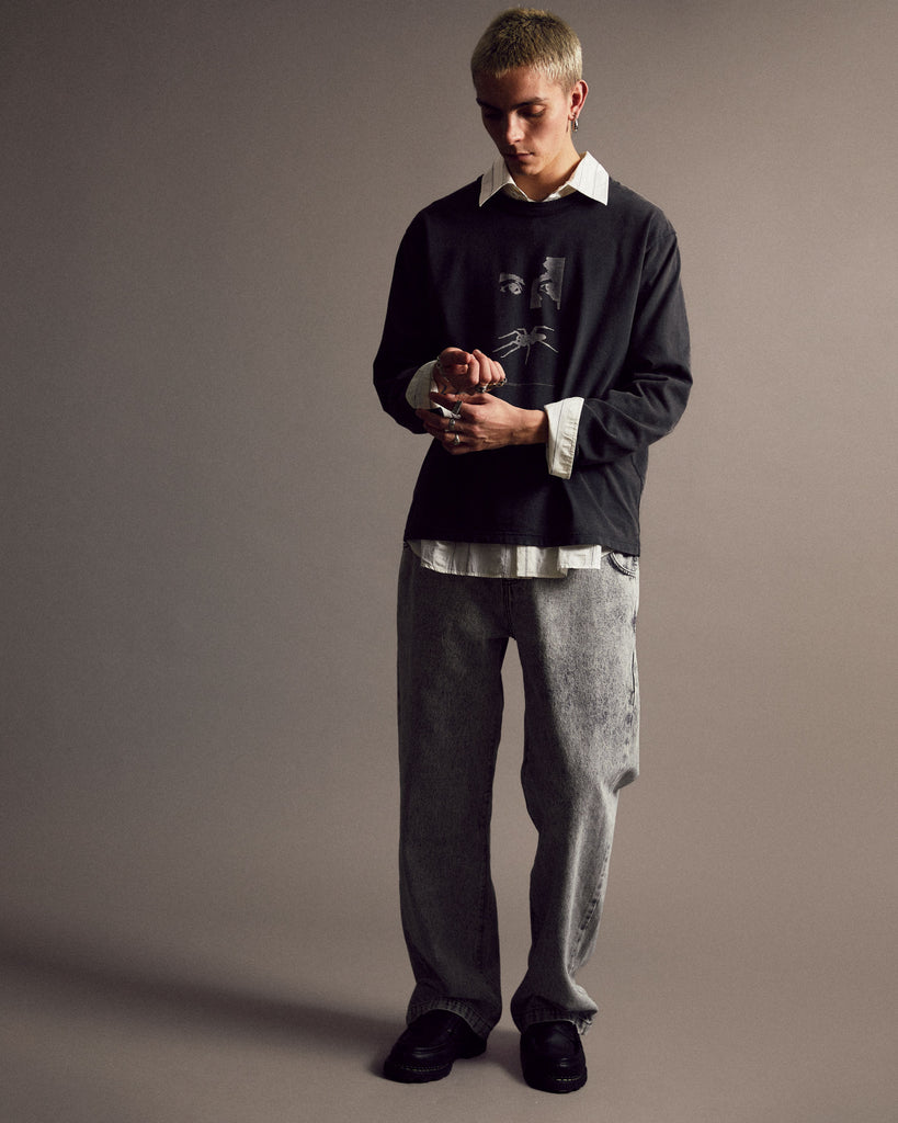 We sat down with Manchester-based artist Tomas Gittins to talk painting, exhibition spaces and the energy that brings a show to life. Wearing the Nep Denim Jean and Type 1+ Jacket in Rinse from TDR, he spoke about working across mediums, painting faces that spark joy and making art that people can relate to. For him, TDR stands for ‘The Daily Routine’ - a reminder to set yourself goals and keep evolving.