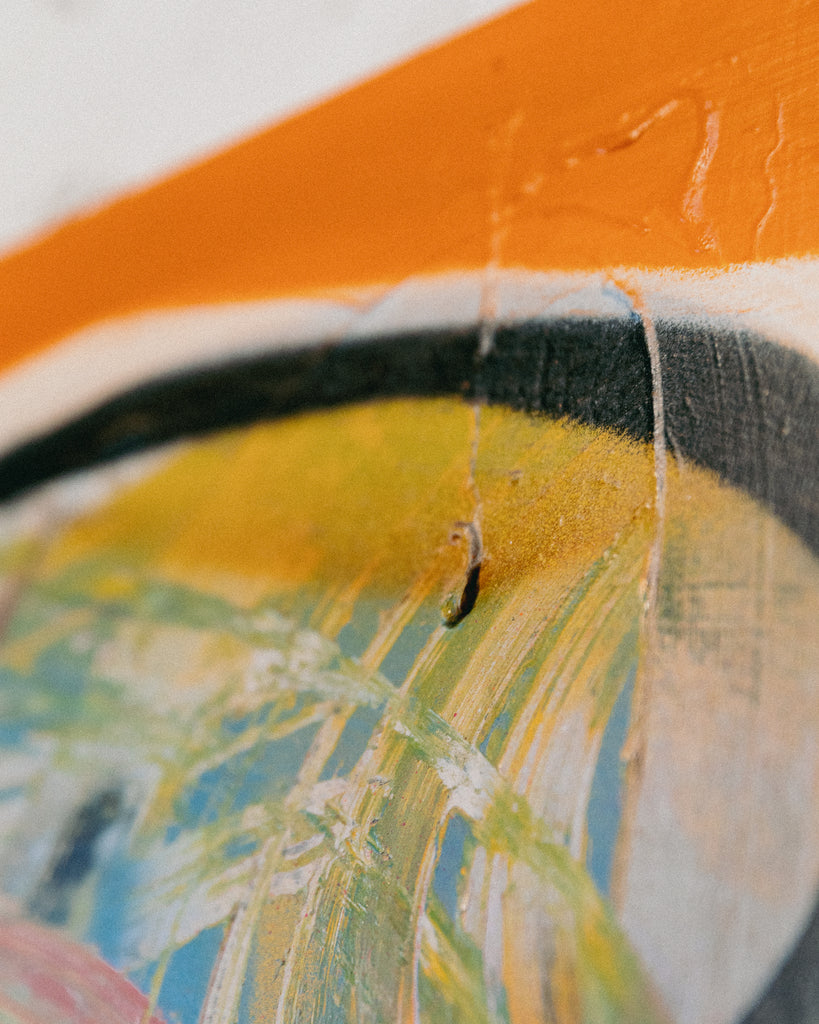 We sat down with Manchester-based artist Tomas Gittins to talk painting, exhibition spaces and the energy that brings a show to life. Wearing the Nep Denim Jean and Type 1+ Jacket in Rinse from TDR, he spoke about working across mediums, painting faces that spark joy and making art that people can relate to. For him, TDR stands for ‘The Daily Routine’ - a reminder to set yourself goals and keep evolving.