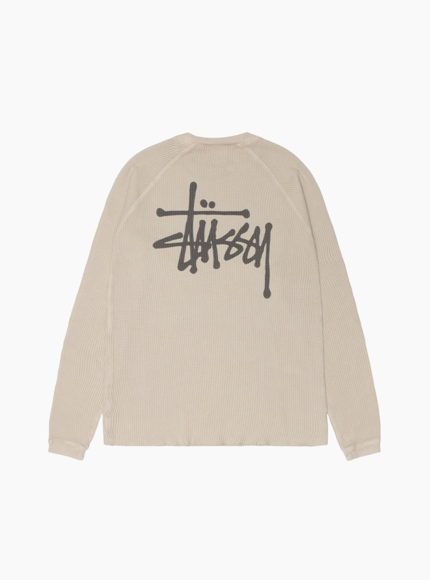 The Raglan Thermal Basic Stock from Stüssy arrives in a bone. Made from a garment dyed thermal cotton, the waffle knit falls to a regular fit. It is complete with a Stüssy stock logo at the chest and across the back. Raglan sleeves finish the thermal.