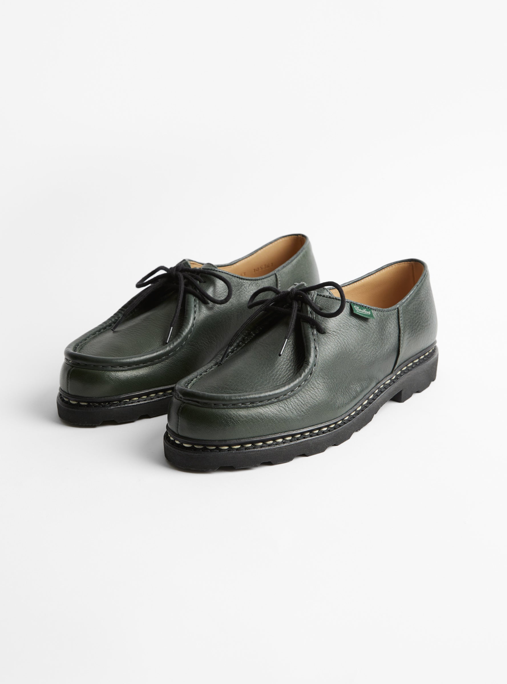 Originally launched in 1945, these Michael shoes from Paraboot are inspired by traditional Tyrolean silhouettes. Made in France from a khaki leather, they're set on chunky rubber soles with Norwegian-welt construction and fasten via laces.