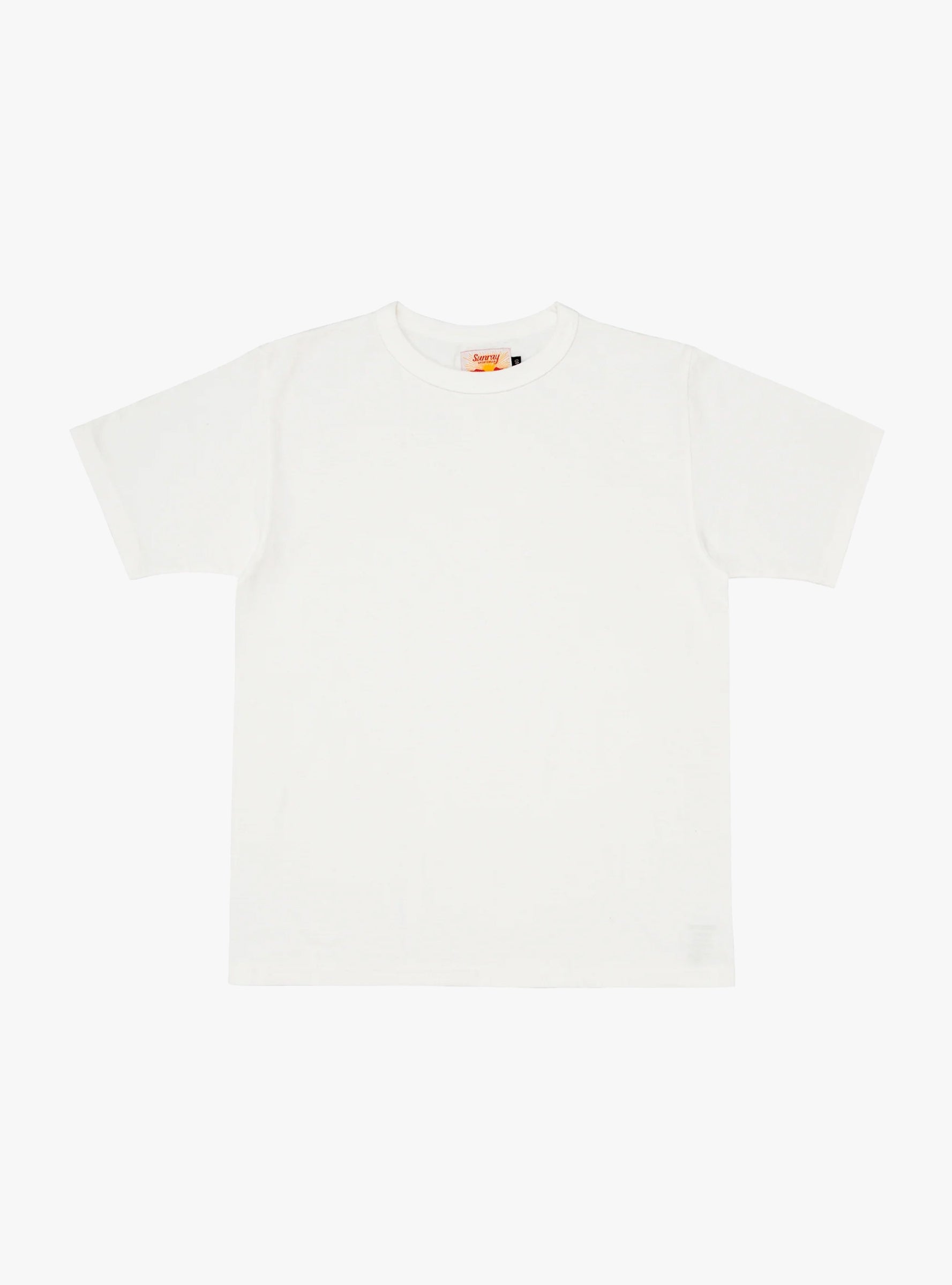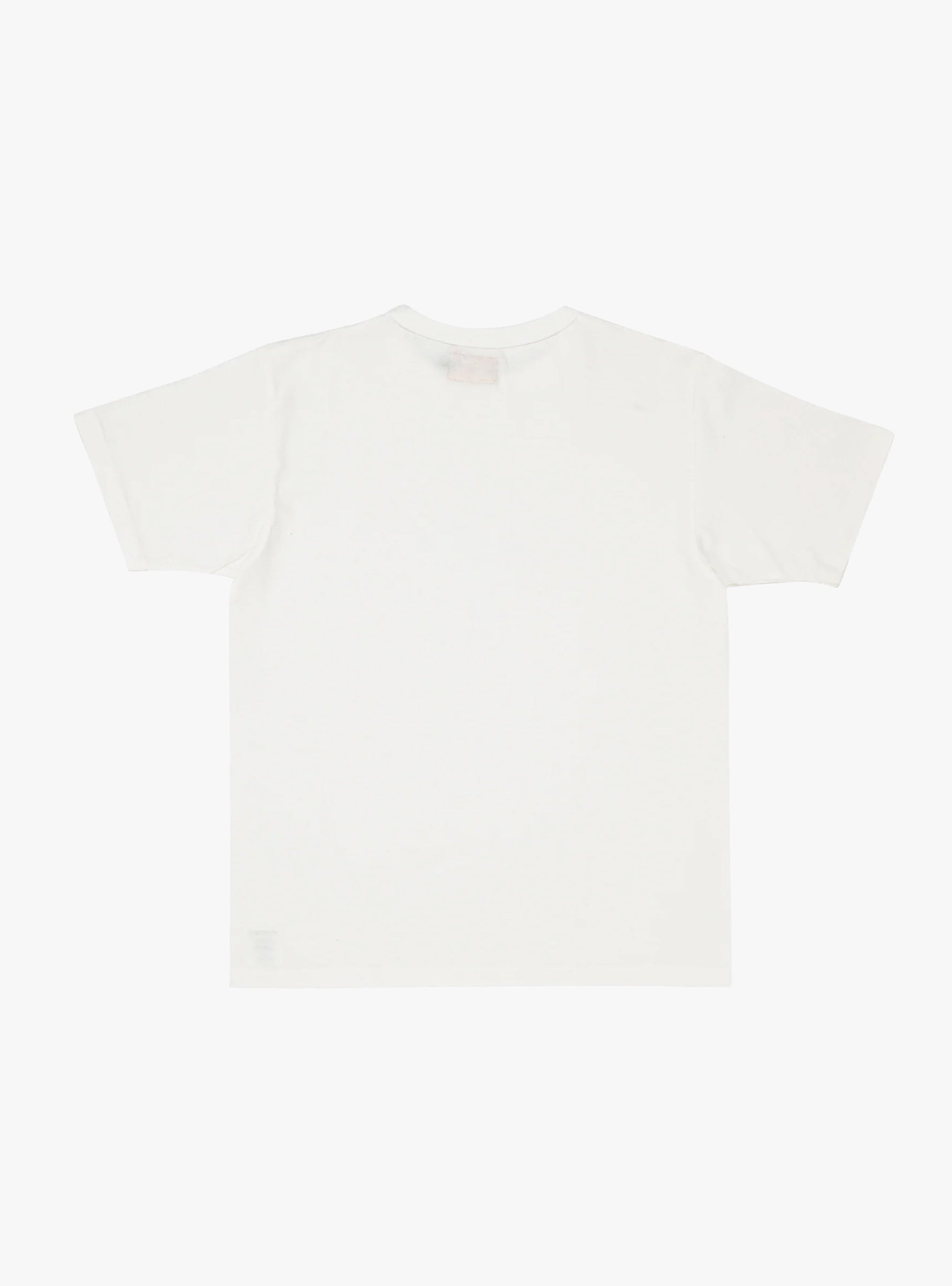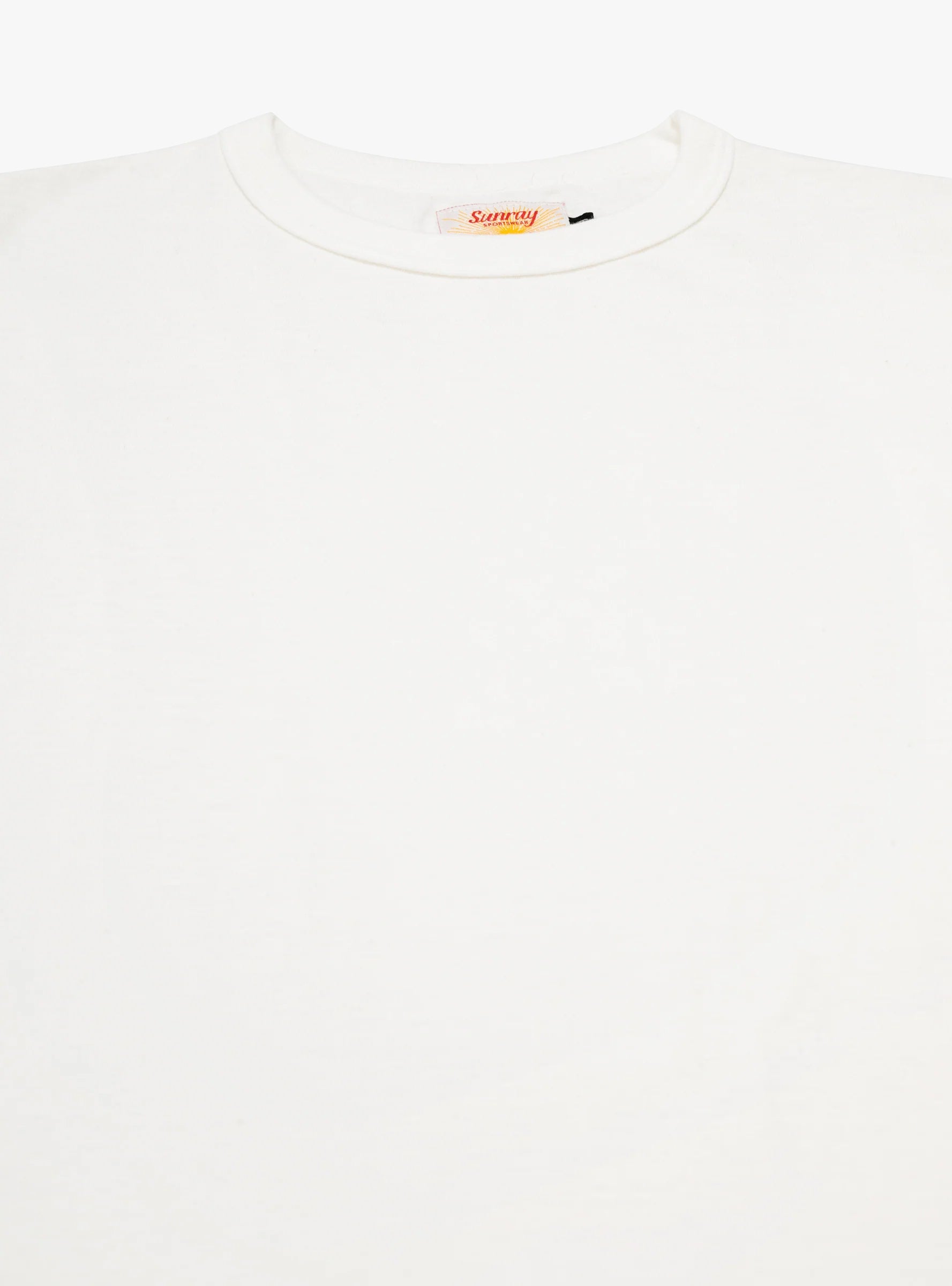 Made in Japan using one of the last two antique loopwheel knitting machines, which avoids the need for side seams and creates less tension on the fabric, this Hambledon-Off White coloured Haleiwa T-shirt from Sunray Sportwear is cut to a classic, yet slightly boxy, silhouette with a crewneck.