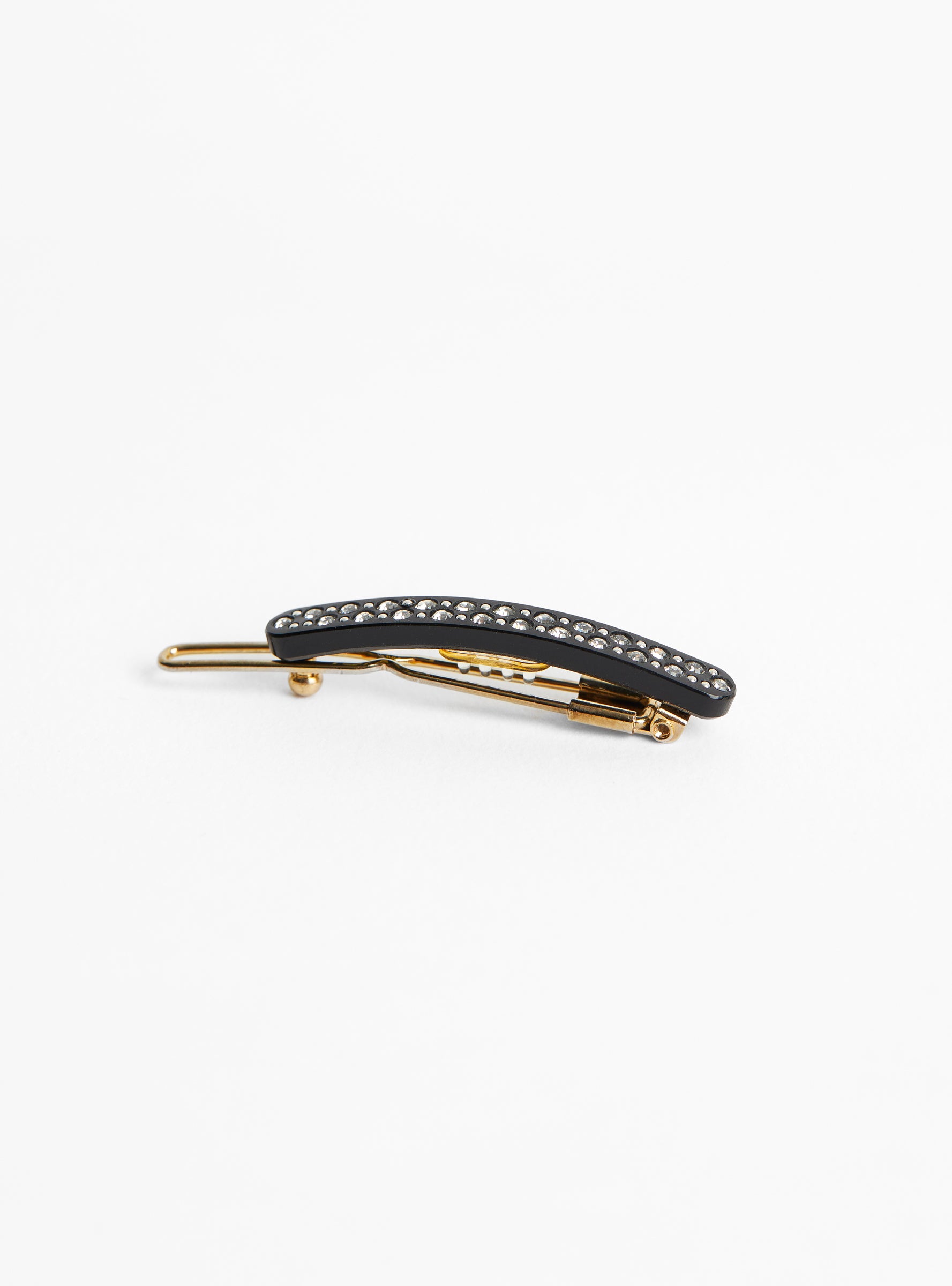 Kanel specialises in hair accessories in all shapes and sizes, such as this thin hair clip, made from Acetate and arriving in a black. It features a pin-barrette closure at the rear and is adorned with Swarovski crystals for a luxury finish.