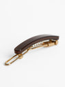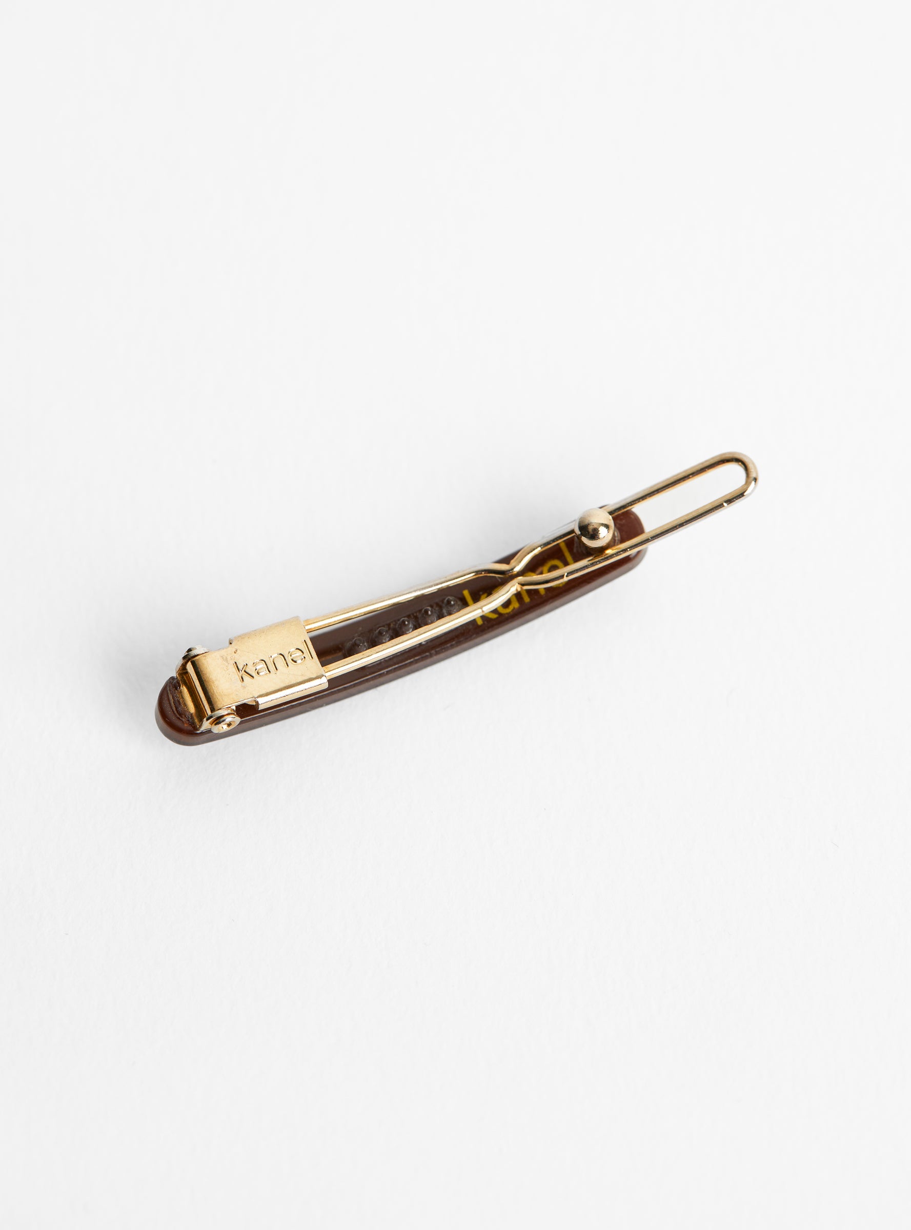 Kanel specialises in hair accessories in all shapes and sizes, such as this thin and simple hair clip, made from Acetate and arriving in a burgundy. It features a pin-barrette closure at the rear.