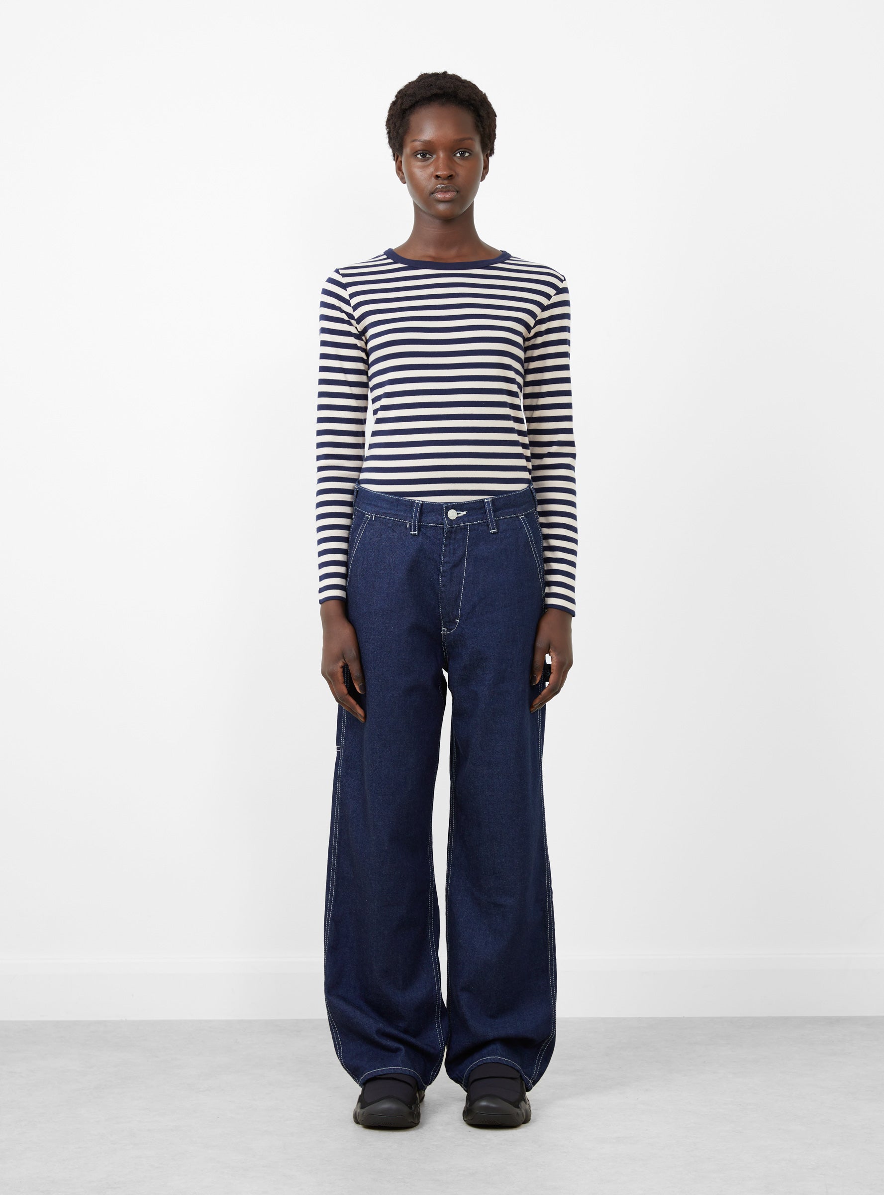 The 12.oz Denim Painter pant from BEAMS BOY arrive in an indigo. Made in Japan from a heavy cotton, the jeans fall to a relaxed fit with a wide finish. Taking after classic painter styles, the jeans feature a multitude of pockets including two at the side, two rear patch pockets, a hammer loop and a tool pocket. Contrast white stitching finish the trousers and a belt loop.
