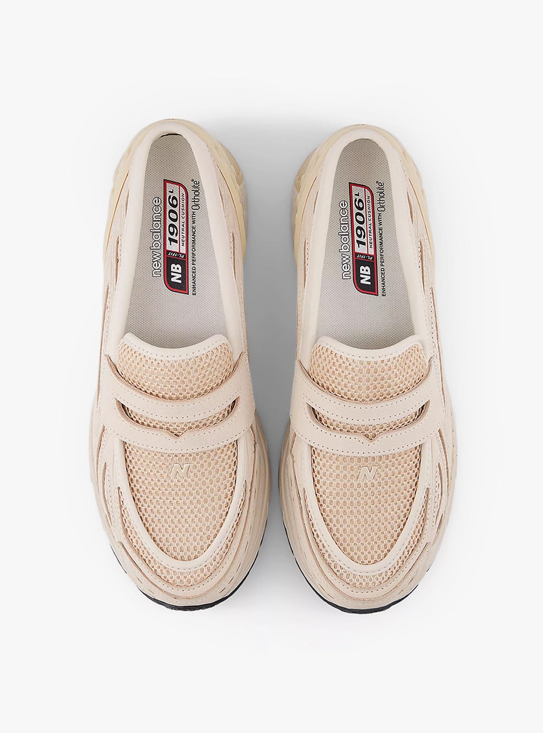 As an updated version of the New Balance 1906 model, the 1906LV1 Loafers in Bisque incorporate classic slip-on elements, blending laid-back sportswear with traditional style. Developed with the performance-focused Ortholite insole and the innovative ACTEVA LITE cream midsole for cushioning, the pair features an open mesh construction, ABZORB SBS pods, and a Stability Web outsole. The subtle 'N' logo on the forefoot perfectly completes the design.