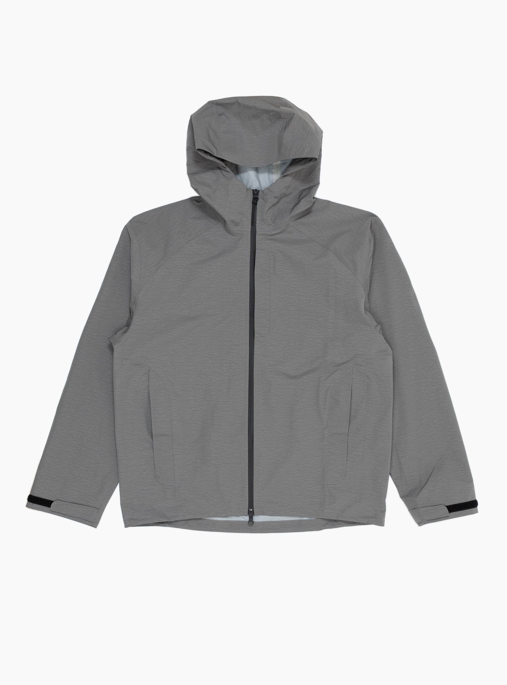 The 2.5L Shell Jacket by Hiking Patrol, available in Dark Grey, is made from durable nylon with waterproof taped seams for superior protection. It features a hood with a high collar, an adjustable hood opening, and a bonded brim. The jacket also includes a YKK two-way waterproof zipper, a left chest pocket with an invisible zip for added storage, and two hand pockets with waterproof zips for extra functionality. Back elbow darts enhance mobility, while strap adjustments at the cuffs and side hem ensure a tailored fit.