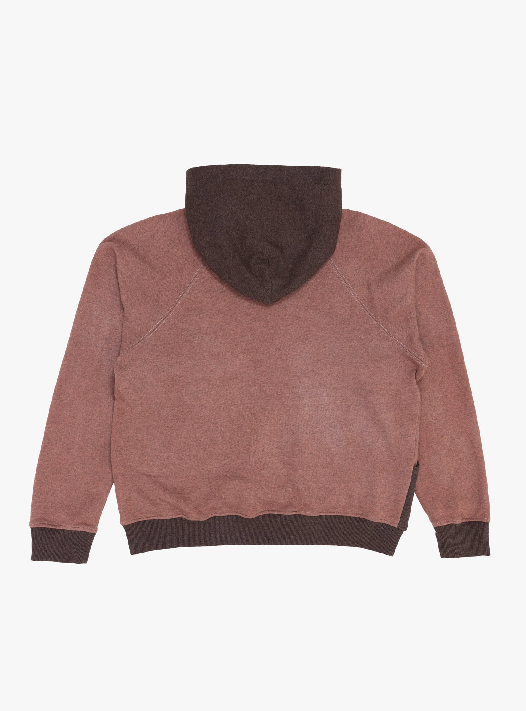 The '49 Alumni Hoodie from Paratodo arrives in a chocolate and heather colourway. Made in the USA from a heavyweight cotton fleece, the hoodie falls to a relaxed fit. The hoodie features a distinctive design, which blends a crewneck with a hood. Front scoop pockets, raglan sleeves, and ribbed trims finish the hoodie.