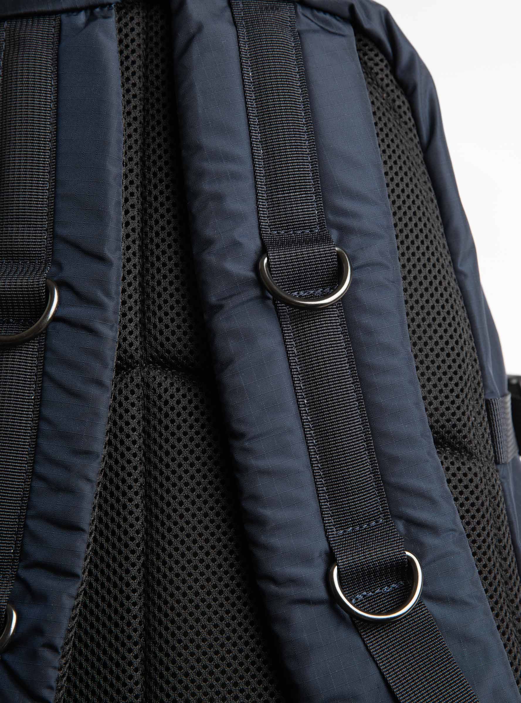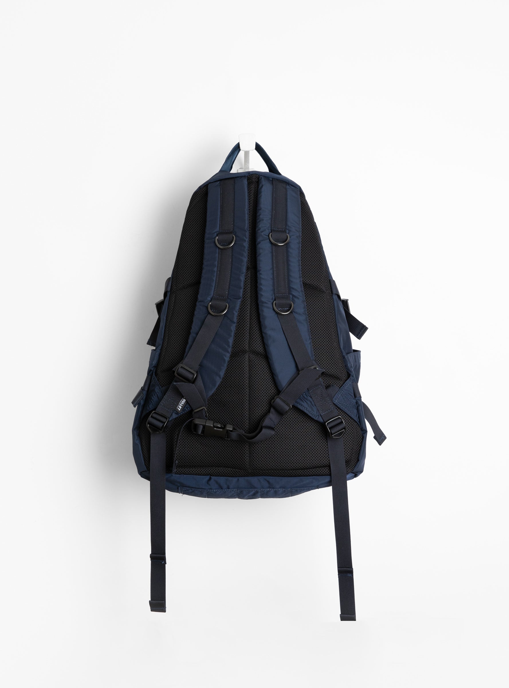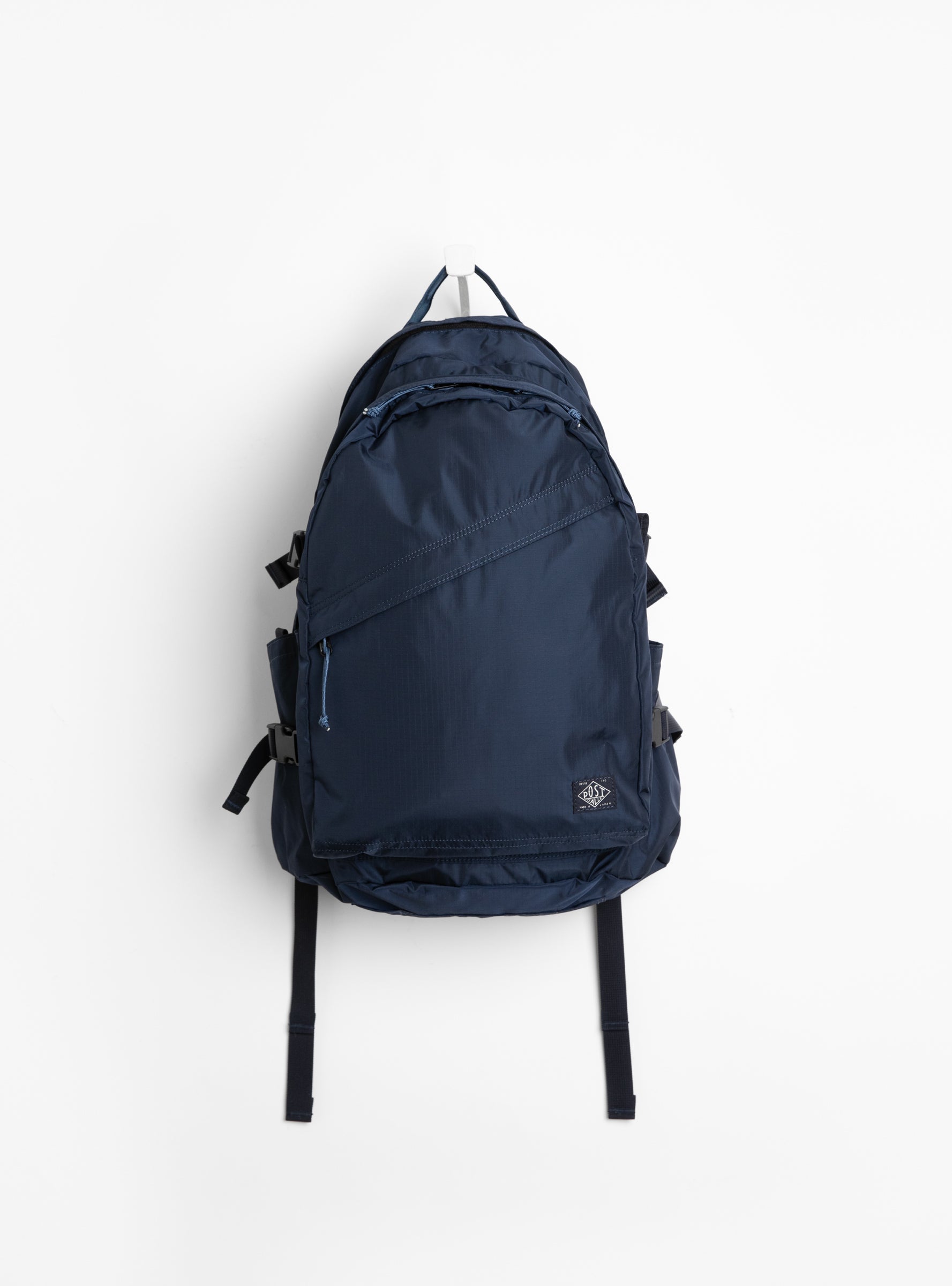 The A-III Backpack arrives from Post O'Alls in Navy. Originally a classic from the late 1990s to 2000s, this updated version is produced in collaboration with BALLISTICS Industries. Made from lightweight nylon ripstop, it offers a durable yet refined finish, combining functional design with a sleek street-ready look.