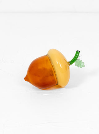 Handblown from borosilicate glass, this Acorn Christmas ball was features a clear bottom and a brown coloured top, as well as a hook for hanging from your tree.