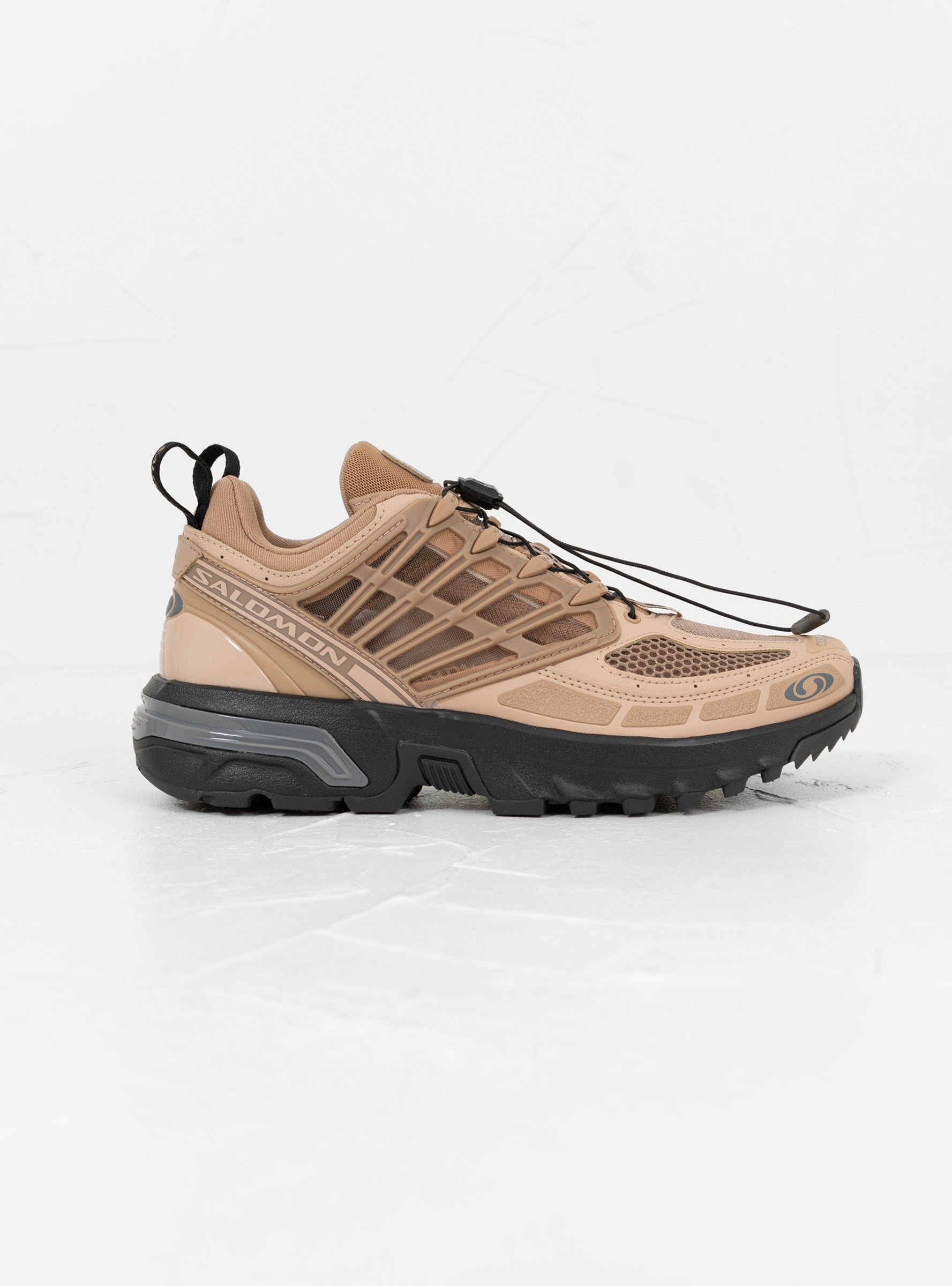 A contemporary update to Salomon’s seminal trail silhouette, these ACS PRO sneakers come in an earth-tone Portabella, Natural & Black. Featuring the brand’s upgraded Agile Chassis System for heightened grip and stability with a mesh upper, external lacing cage and Quicklace system, this pair is ready for both the trails and streets.