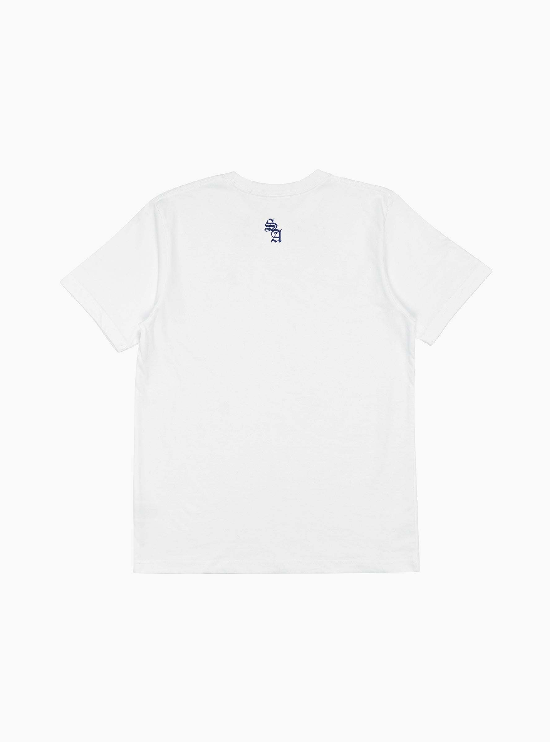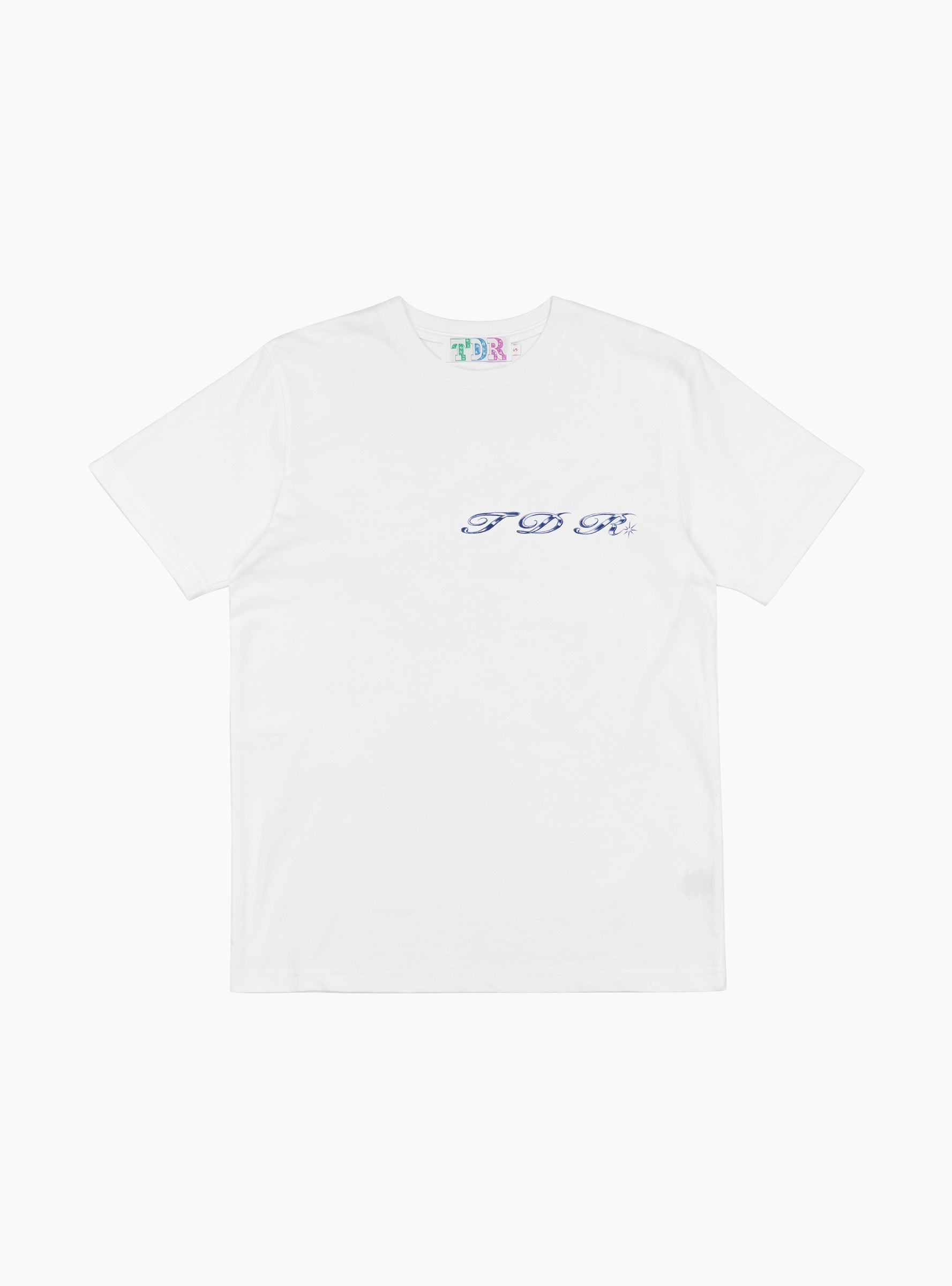 The Almost T-Shirt in White from TDR is a heavyweight, breathable cotton tee designed for everyday wear. Made in Canada, it features a printed chest and back typography graphic, designed by London tattoo artist Rich Sinner, and durable double-needle stitching at the collar for added strength.