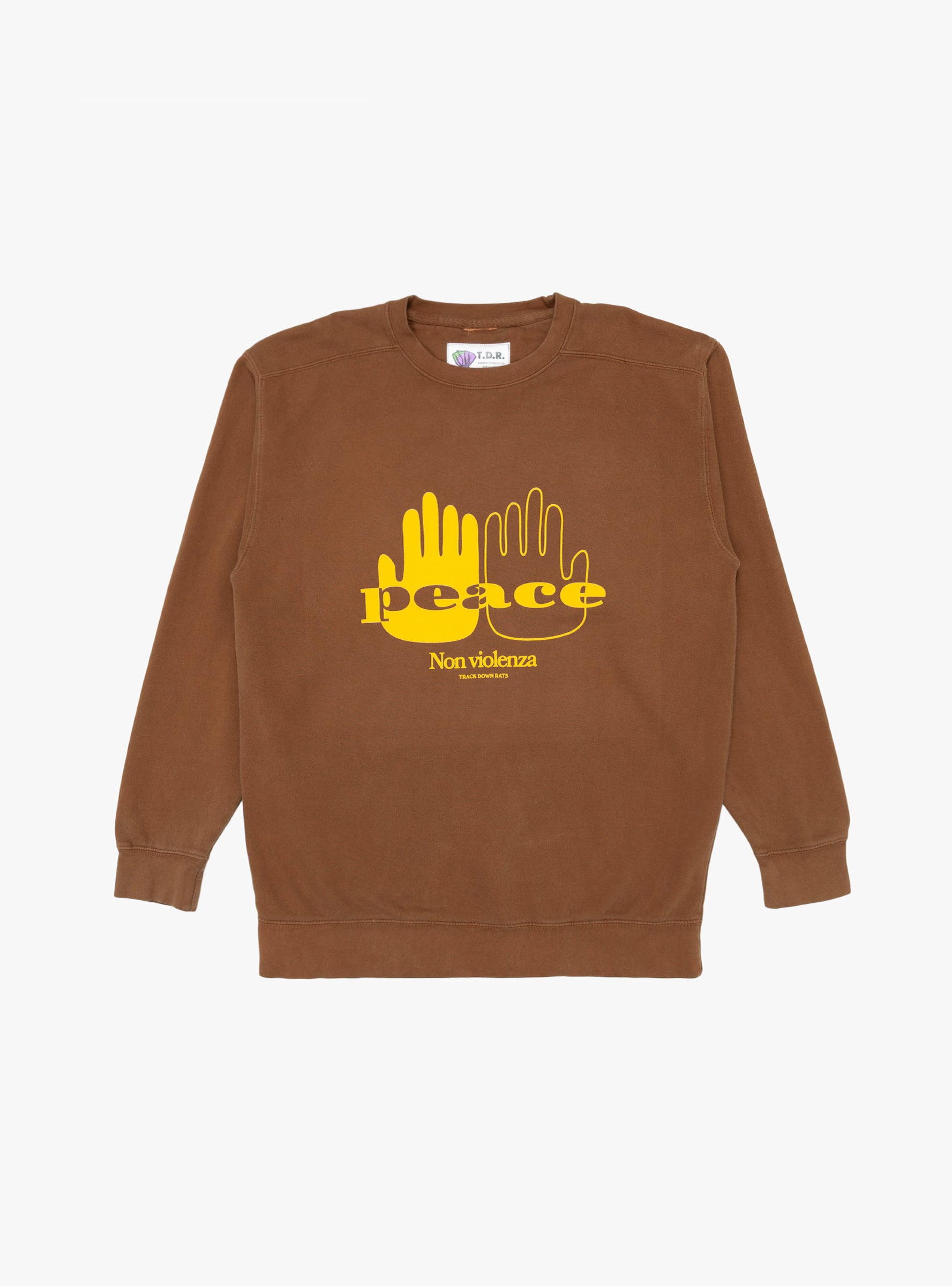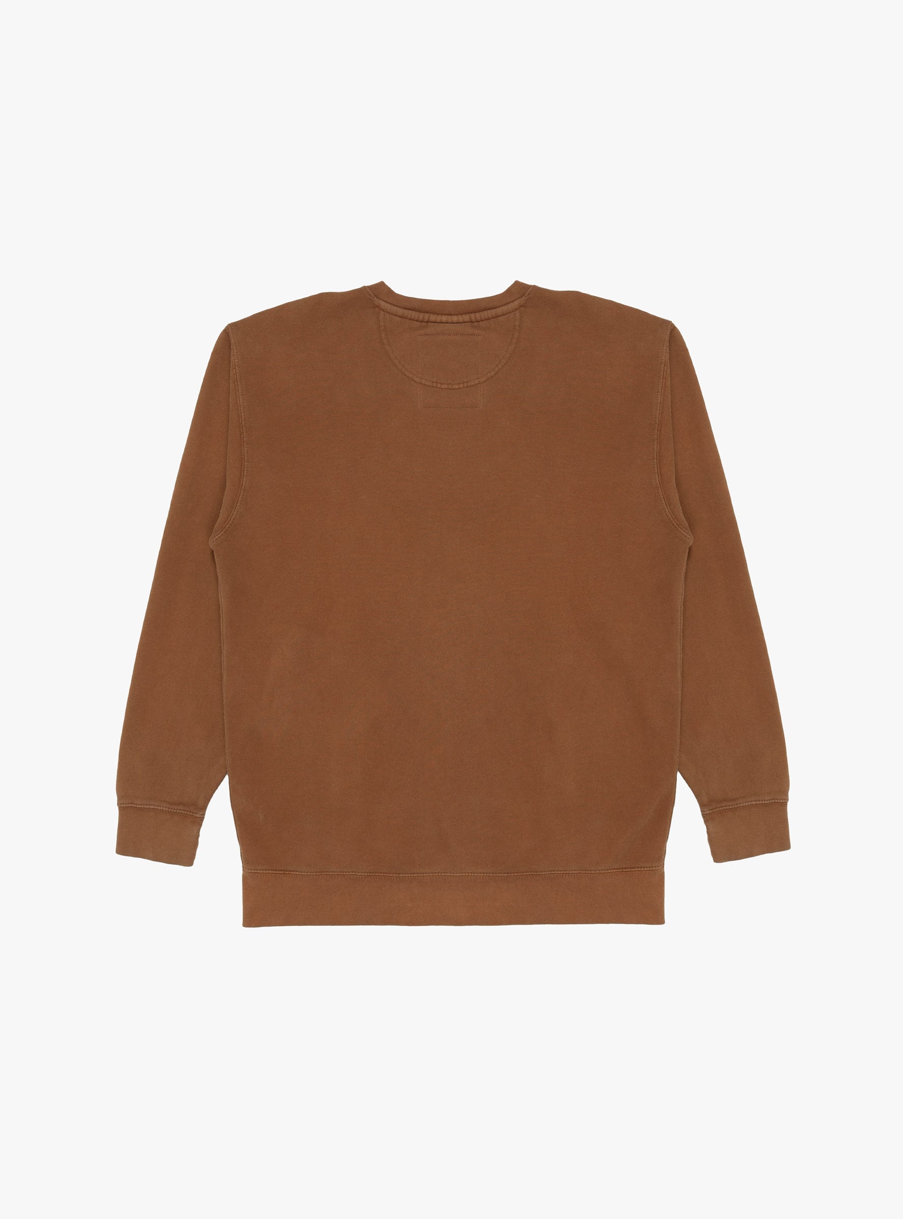 The American Waste Sweatshirt from TDR comes in Army Brown and is made using deadstock vintage American sweats. Each piece is individually stripped of its original colour and re-dyed, resulting in natural variation in shade and size across the range. Finished with custom TDR graphics, every sweatshirt is screen printed in the UK, giving reclaimed garments a new life. Due to the vintage and individual nature of the sweats, fibre composition varies.