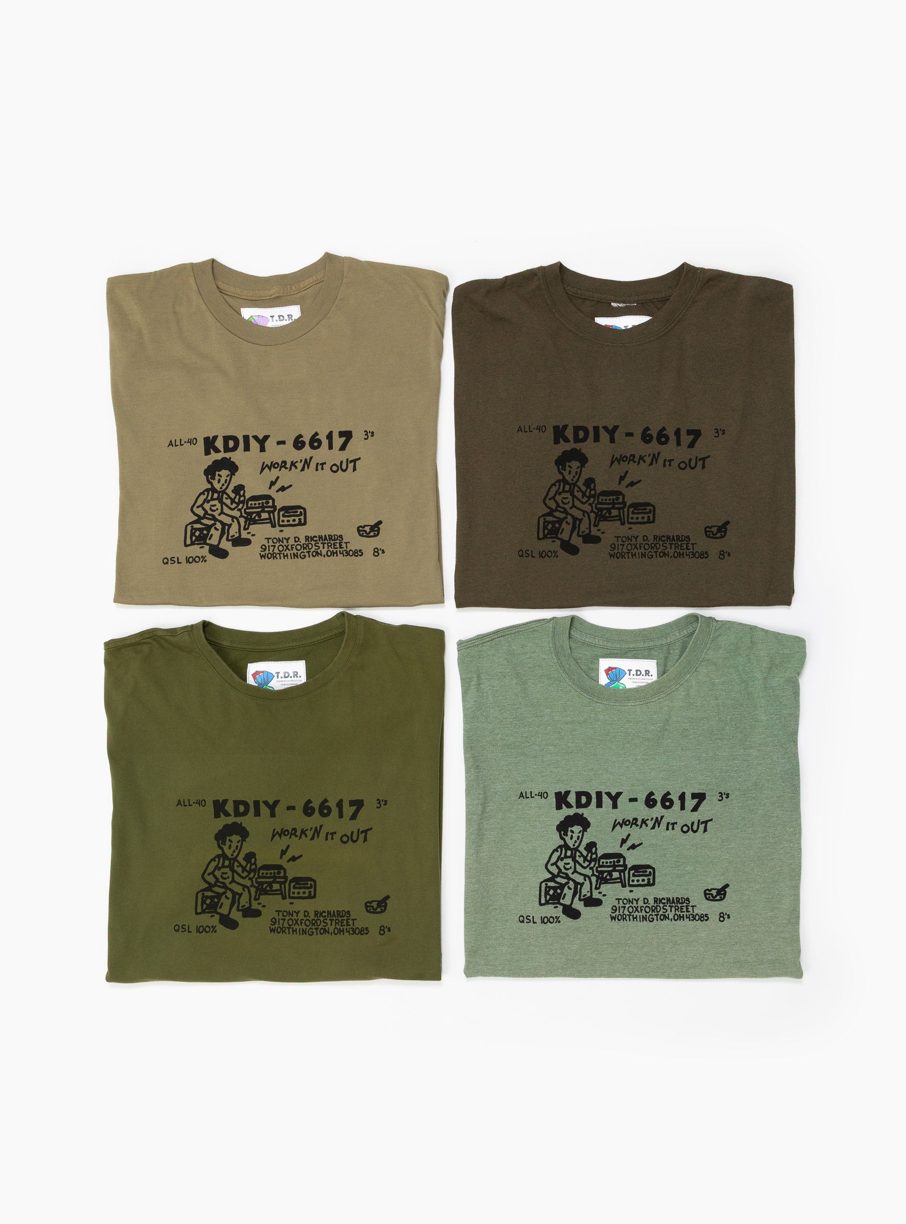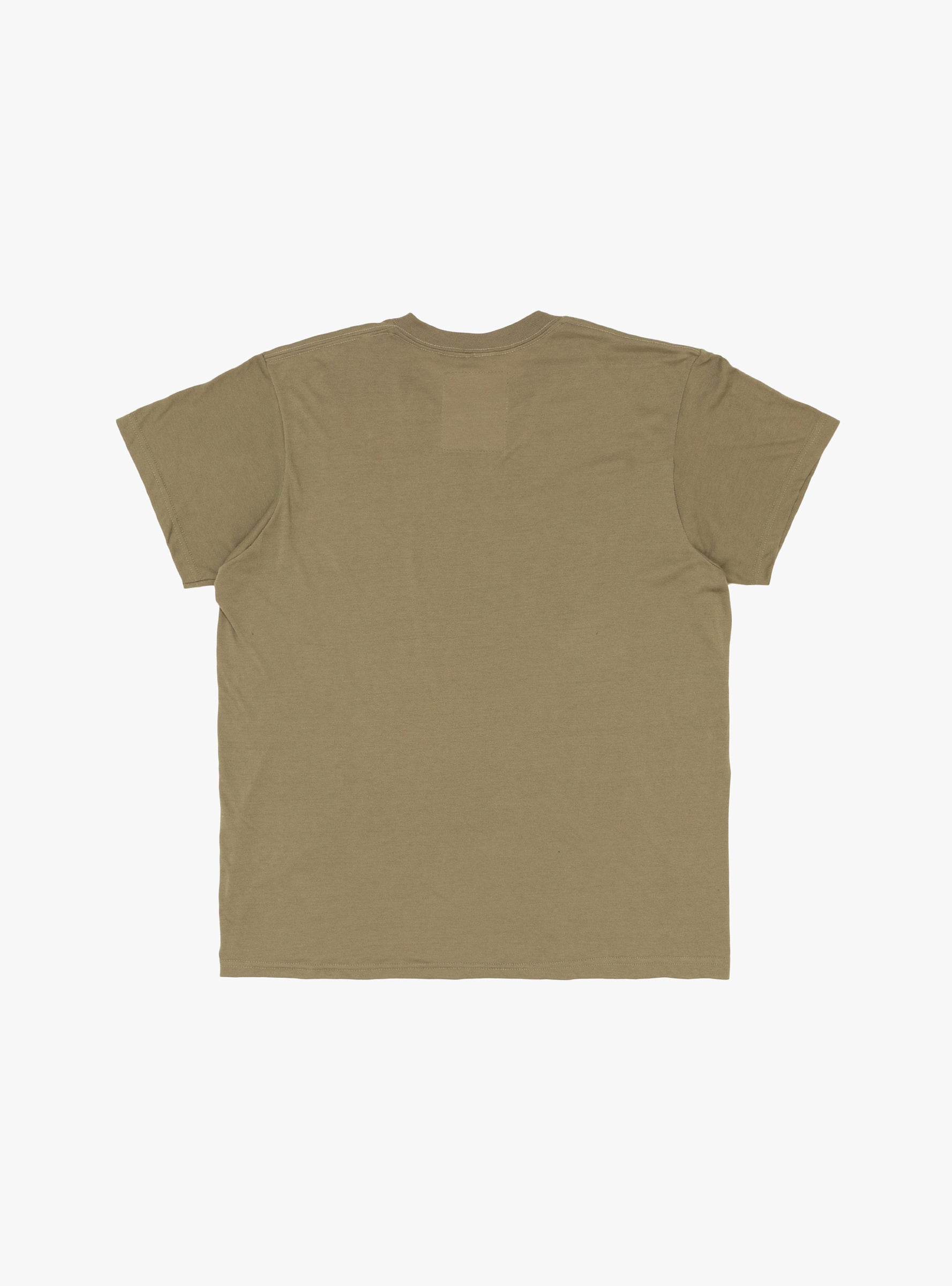 The American Waste T-Shirt from TDR comes in Army Green and is made using deadstock vintage American tees. Each piece is individually stripped of its original colour and re-dyed, giving every t-shirt a slightly different shade and size. Finished with custom TDR graphics, each style is screen printed in the UK, giving new life to reclaimed garments. Due to the vintage nature of the tees, fabric composition varies.