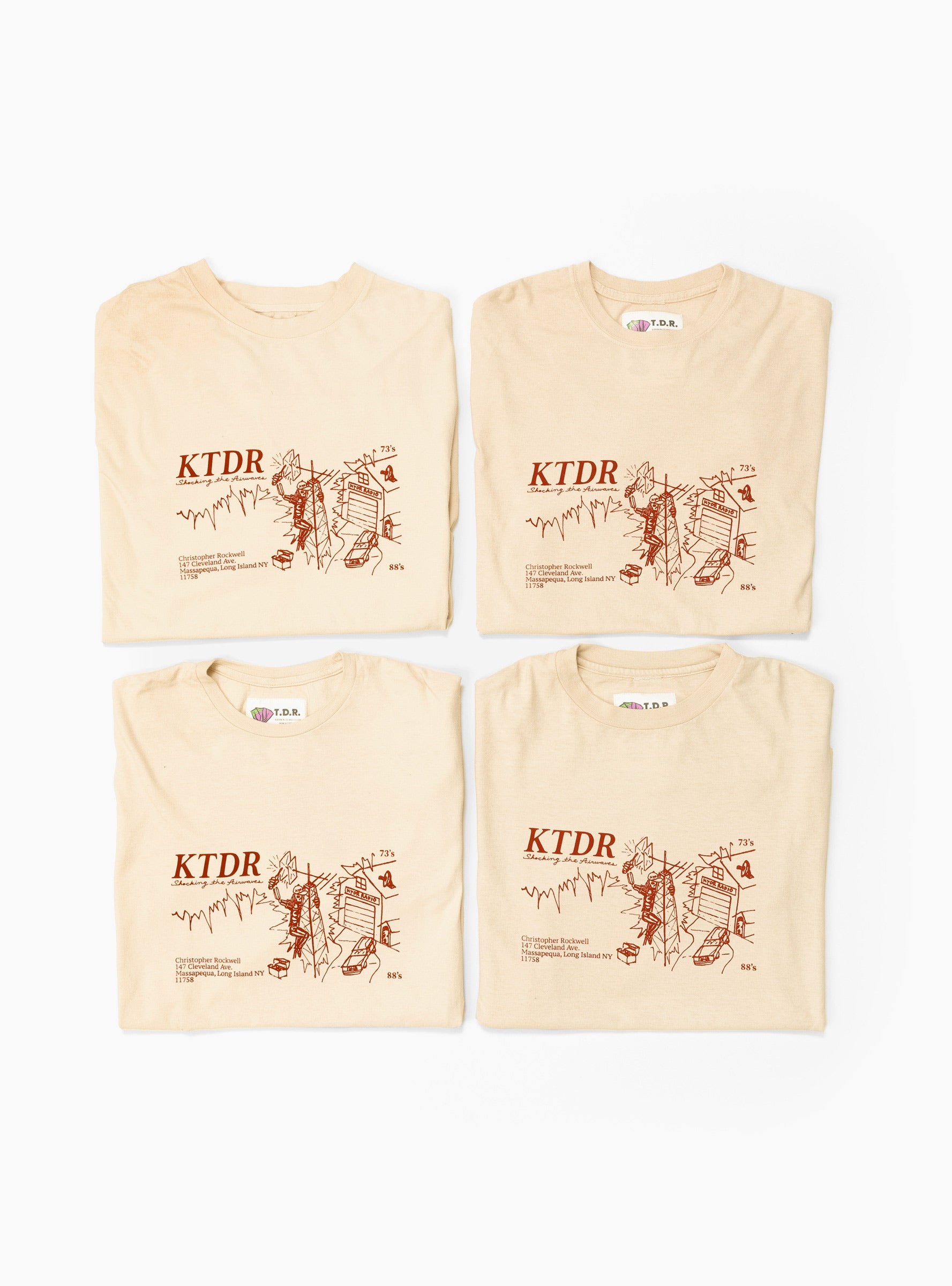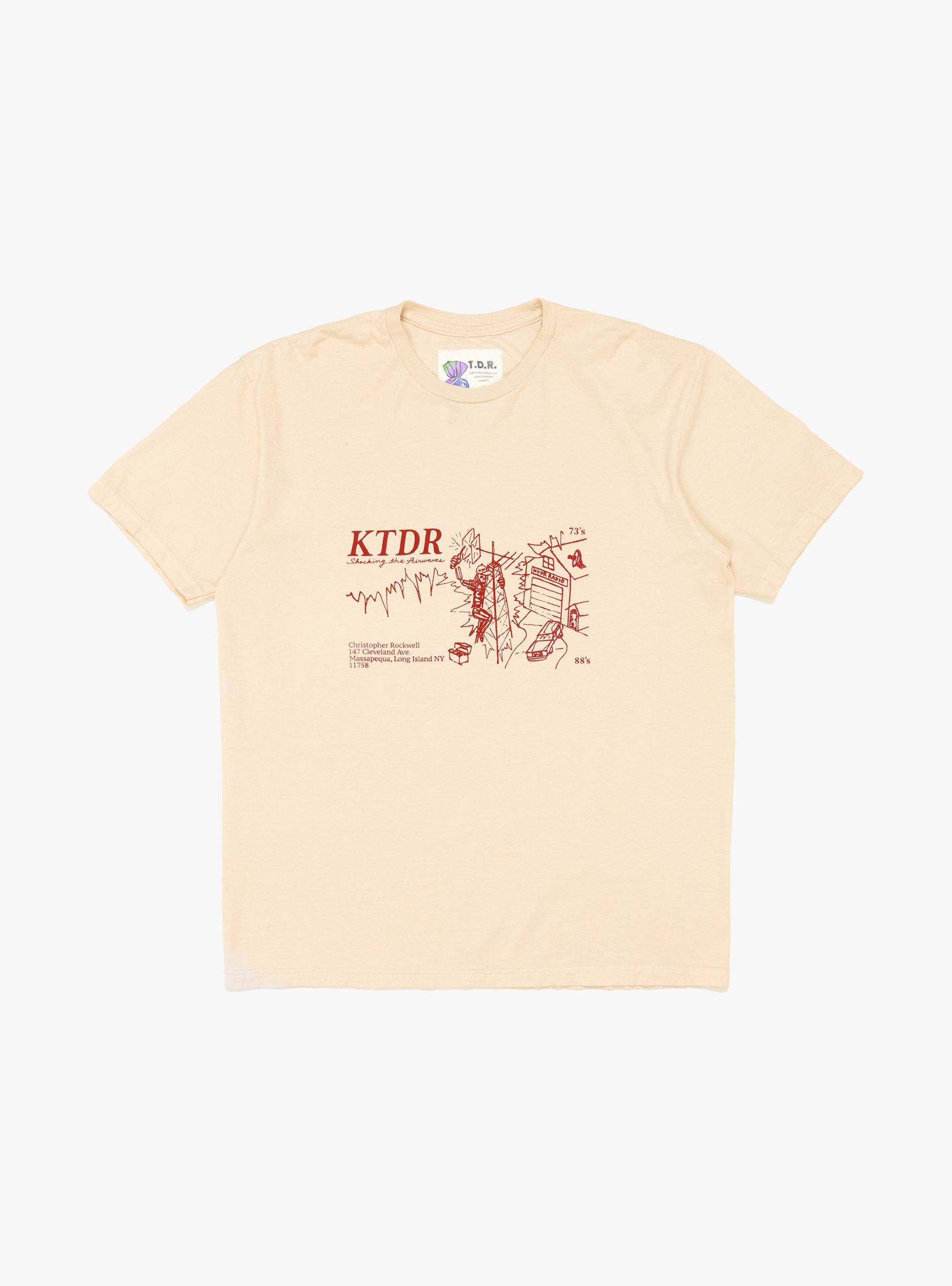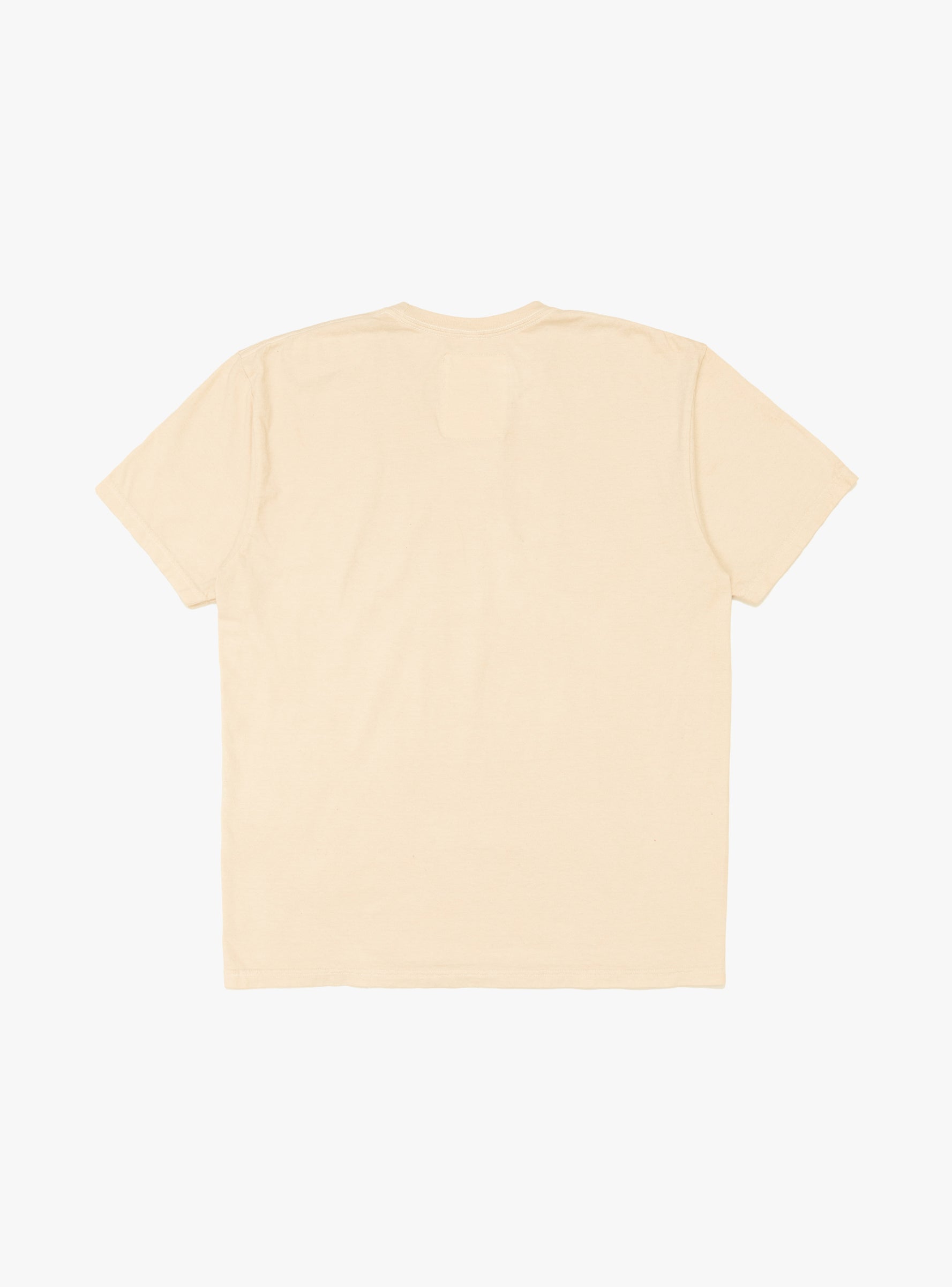 The American Waste T-Shirt from TDR comes in Off White and is made using deadstock vintage American tees. Each piece is individually stripped of its original colour and re-dyed, giving every t-shirt a slightly different shade and size. Finished with custom TDR graphics, each style is screen printed in the UK, giving new life to reclaimed garments. Due to the vintage nature of the tees, fabric composition varies.