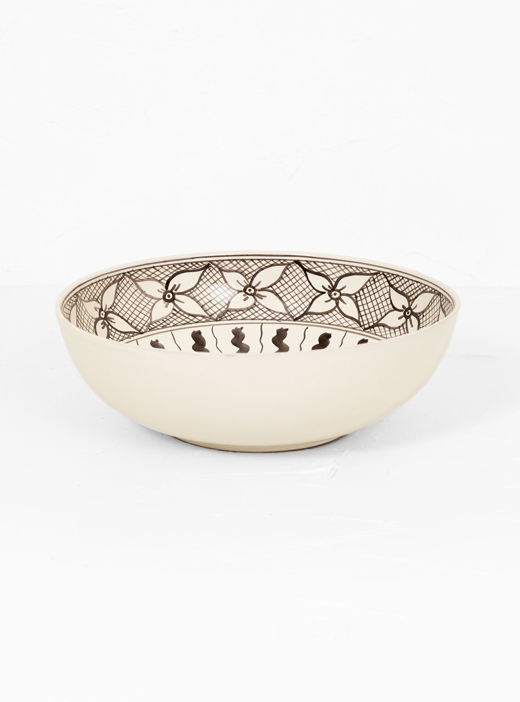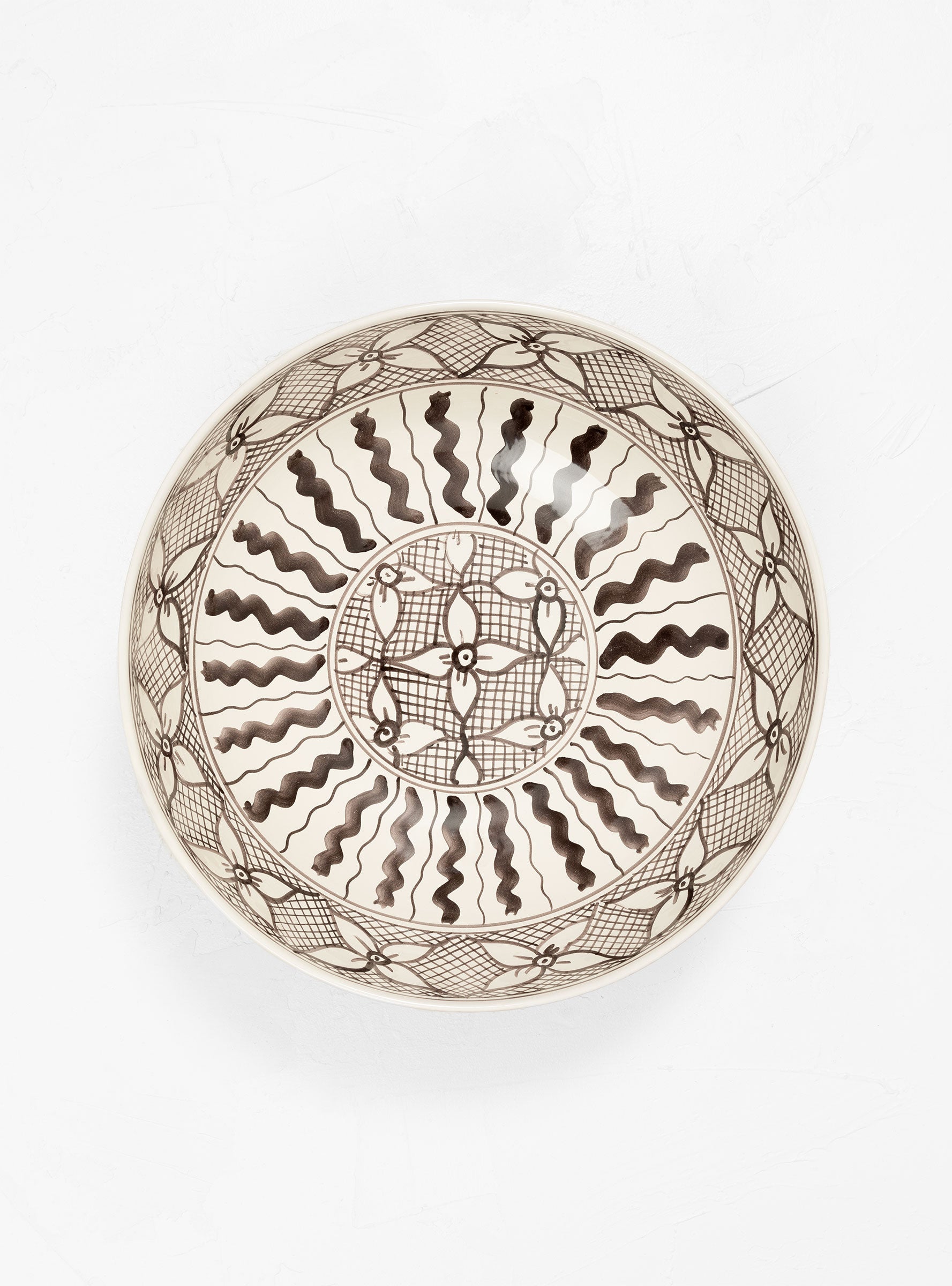 The brown Arab bowl by Enza Fasano Ceramiche is a beautiful, decorative piece made in the ceramist’s workshop in Grottaglie, Italy. Every piece is handmade and hand painted with a geometrical and floral pattern typical of the decorative Arab art, hence the name.