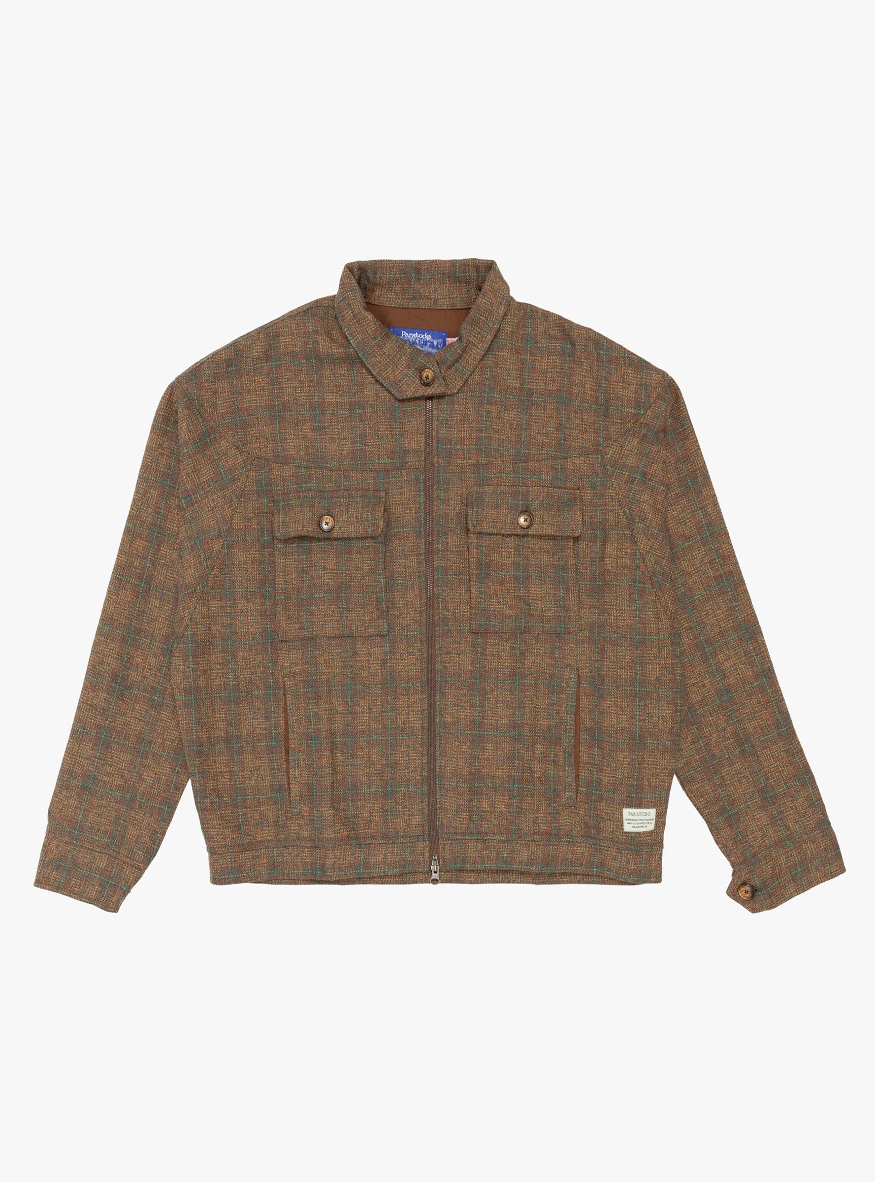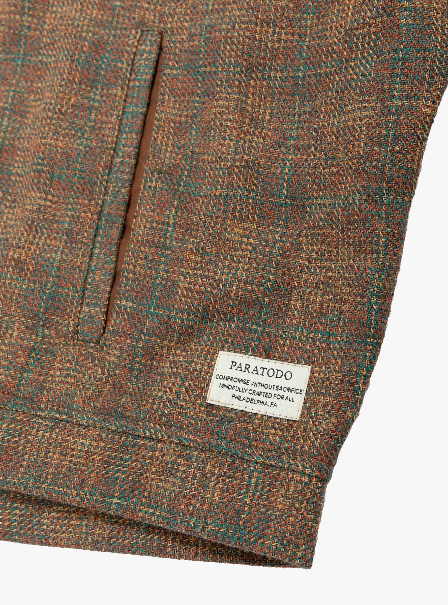 The Archetype Jacket Yarn Dyed Plaid from Paratodo is crafted from Japanese yarn-dyed cotton with a polyester/cotton lining. Designed with a drop shoulder silhouette, it features connecting front and back yokes that add structure and a relaxed shape. Functional detailing includes two hand pockets, two chest pockets, and an inside pocket, all paired with a zipped front closure and a button collar for secure layering.