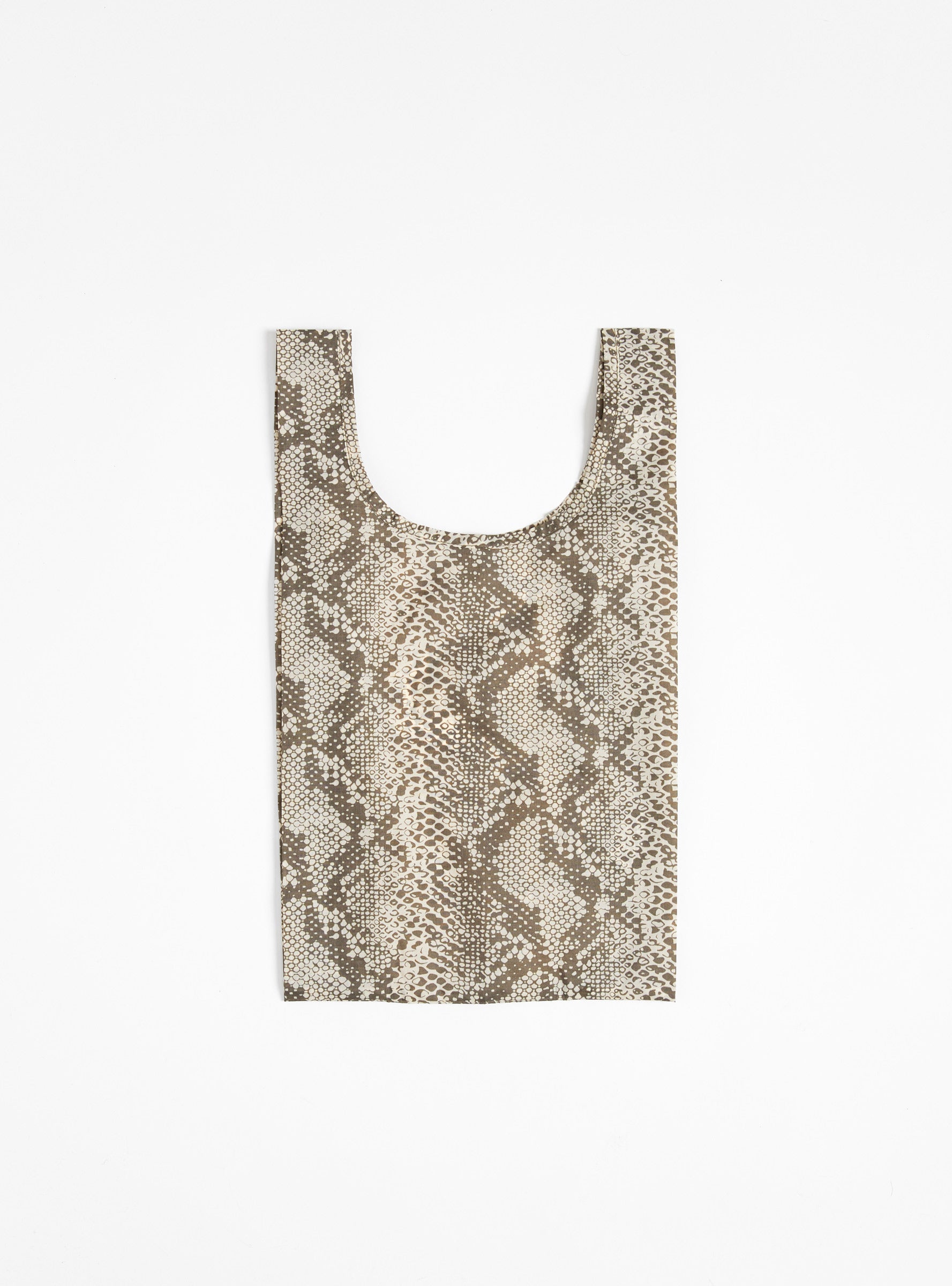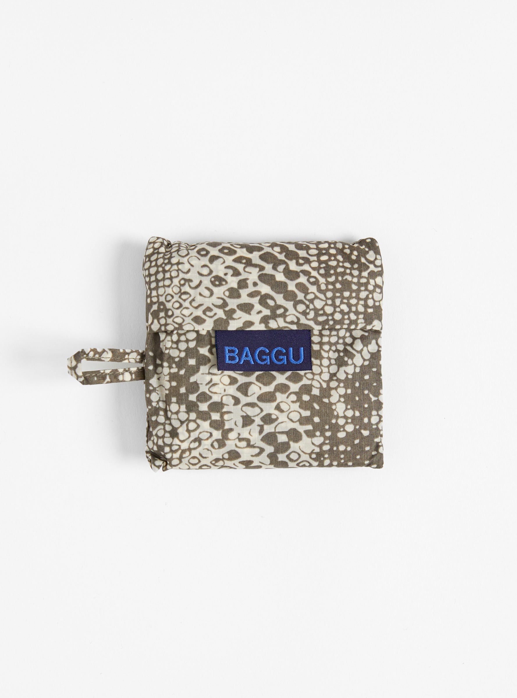 The Baby Baggu arrives in Snakeskin, a compact reusable tote made from recycled ripstop nylon. A smaller version of the original shopping bag, it is designed to carry up to 50 lbs and neatly folds into a 4" x 4" pouch for easy storage. Ideal for everyday use, from carrying lunch to running errands.