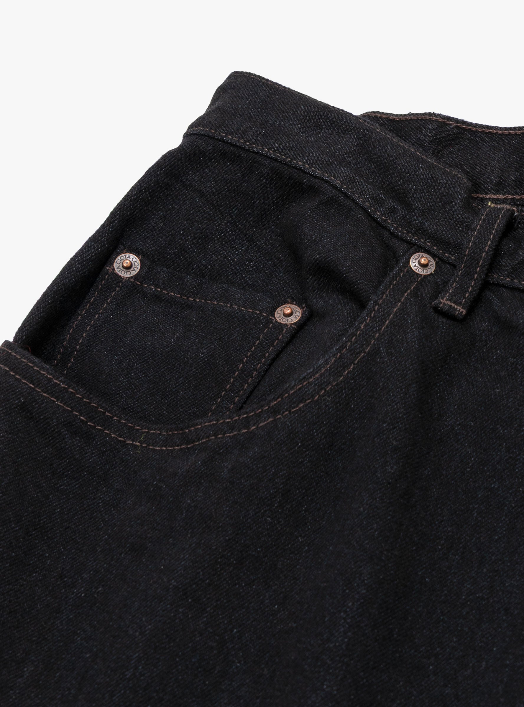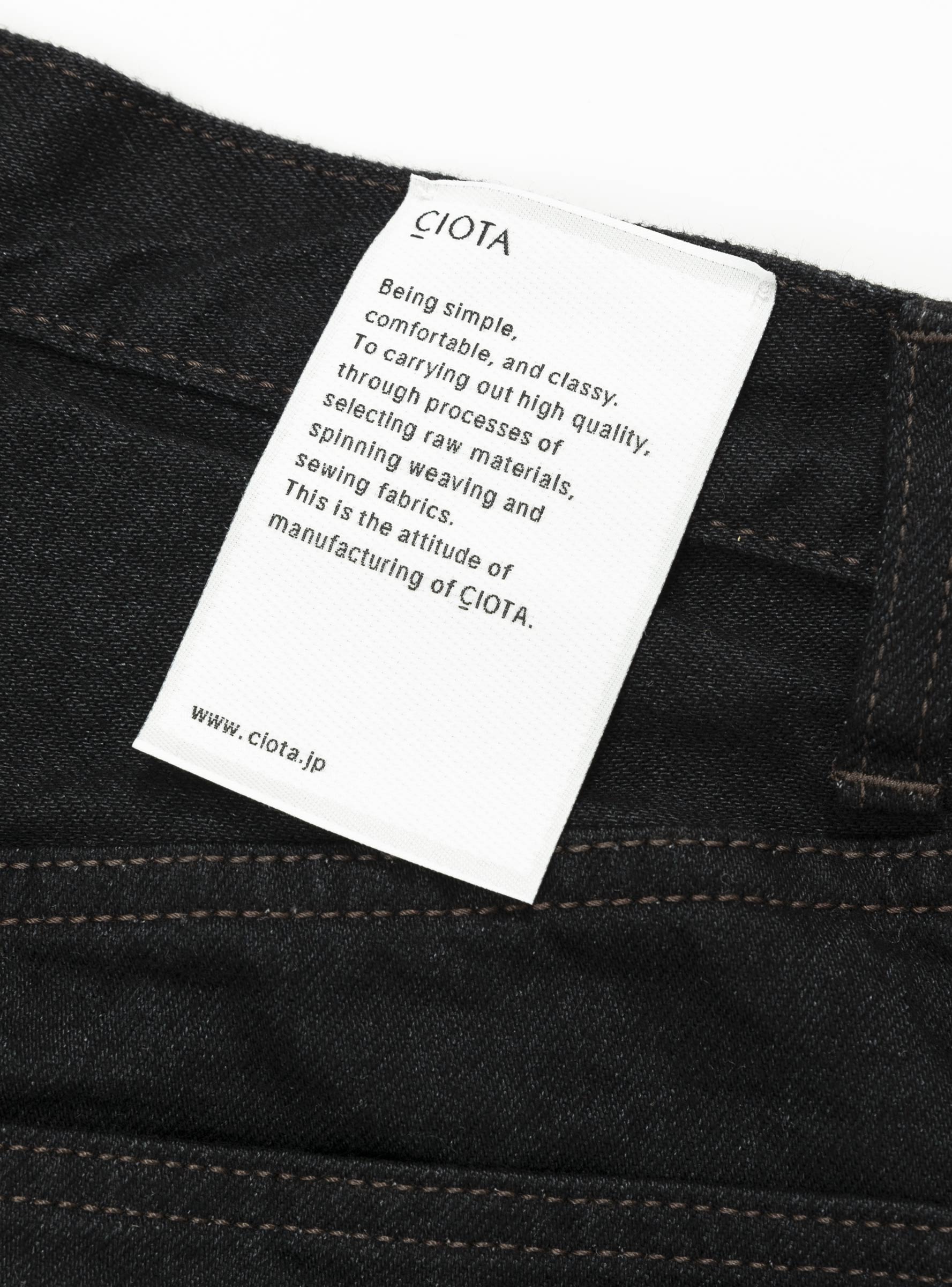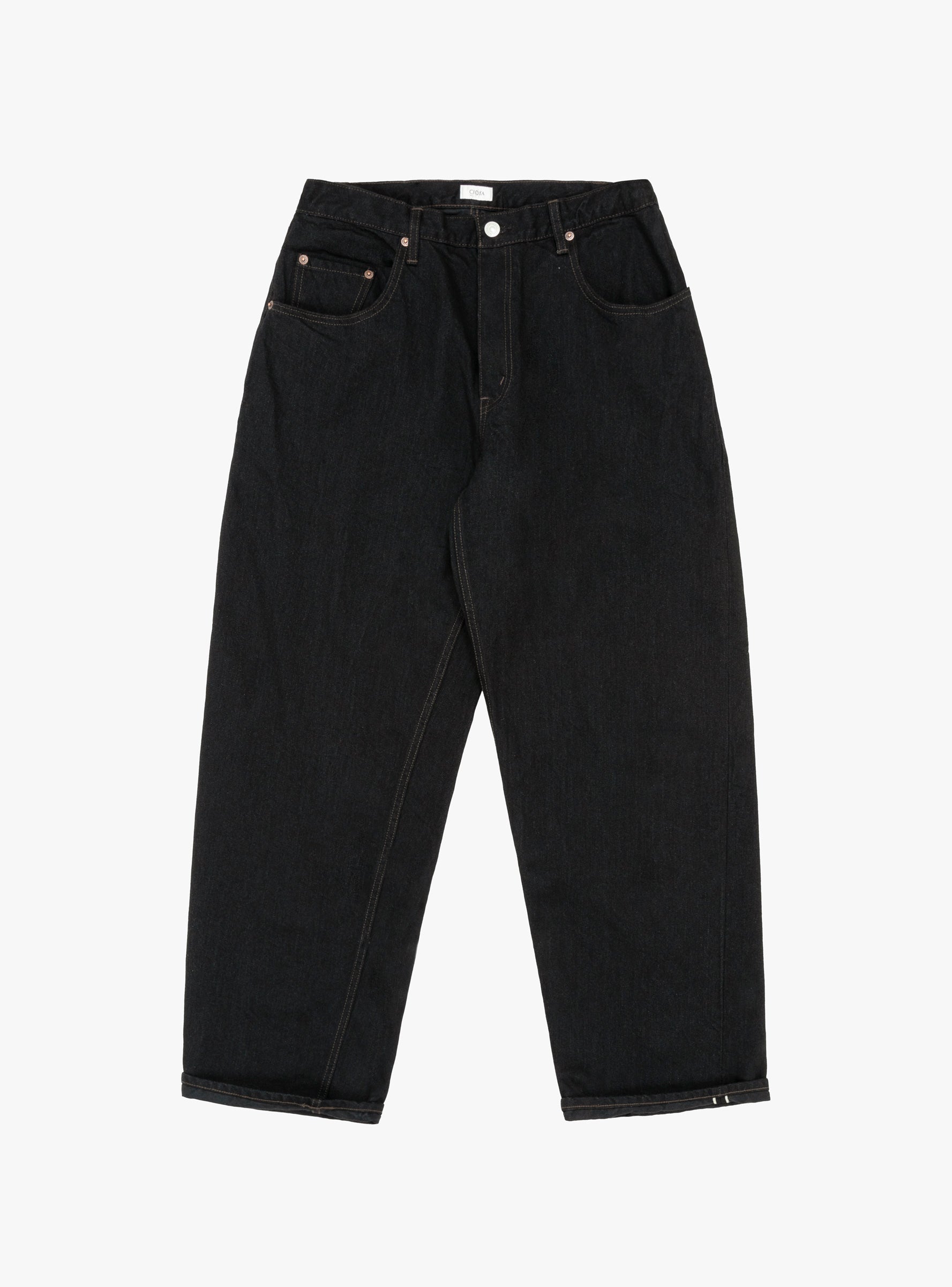 CIOTA’s Baggy 5-Pocket Pants arrive in Black. Inspired by the ‘90s, they feature a deep inseam and a loose, relaxed fit from the crotch to the hem. Crafted from selvedge denim woven on a shuttle loom, they include classic details such as five pockets and a button-and-zip closure.