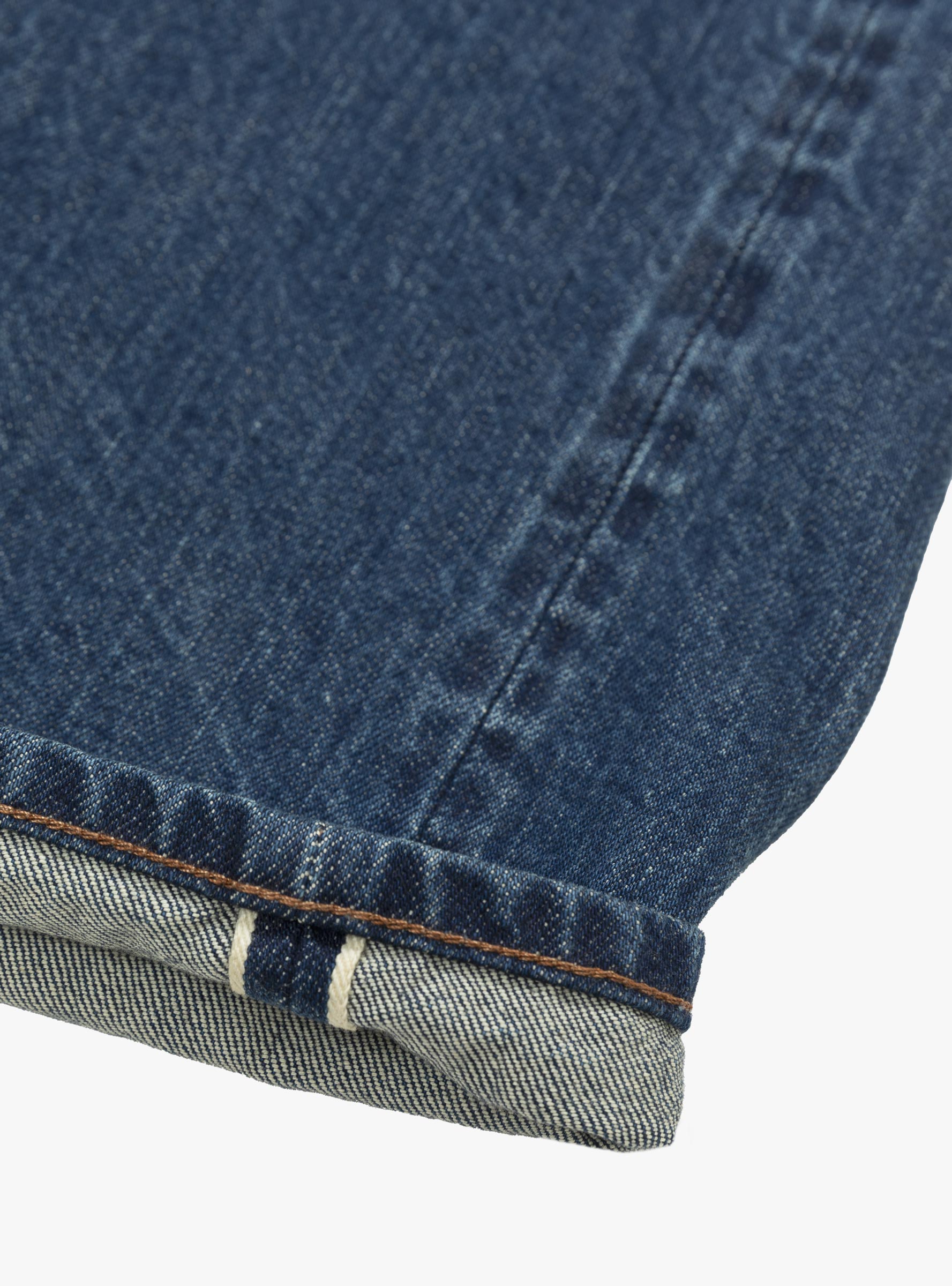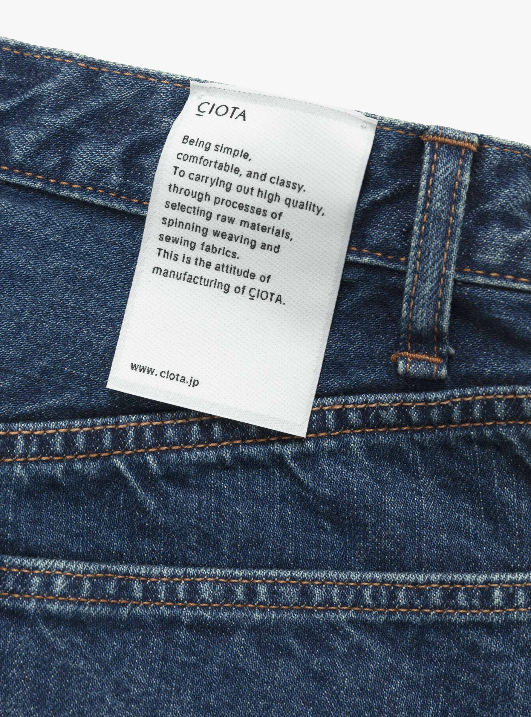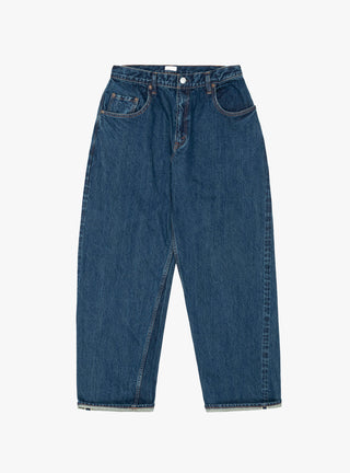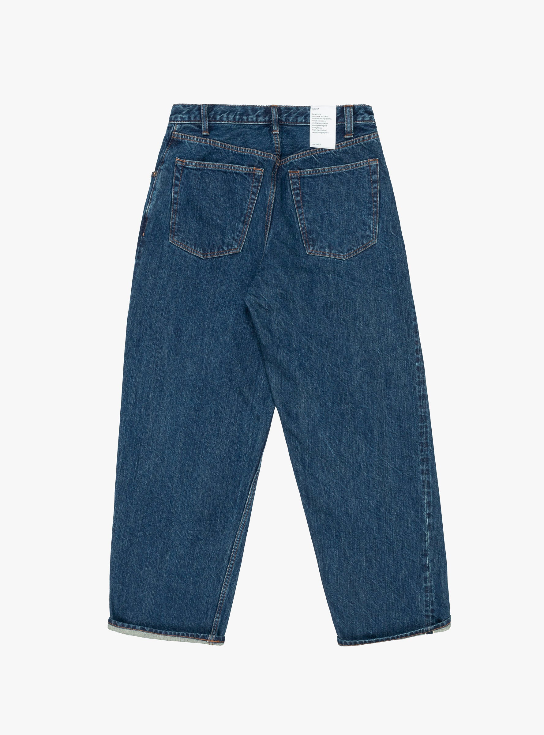 CIOTA’s Baggy 5-Pocket Pants arrive in Dark Blue Damage. Inspired by the ‘90s, they feature a deep inseam and a loose, relaxed fit from the crotch to the hem. Crafted from selvedge denim woven on a shuttle loom, they include classic details such as five pockets and a button-and-zip closure.