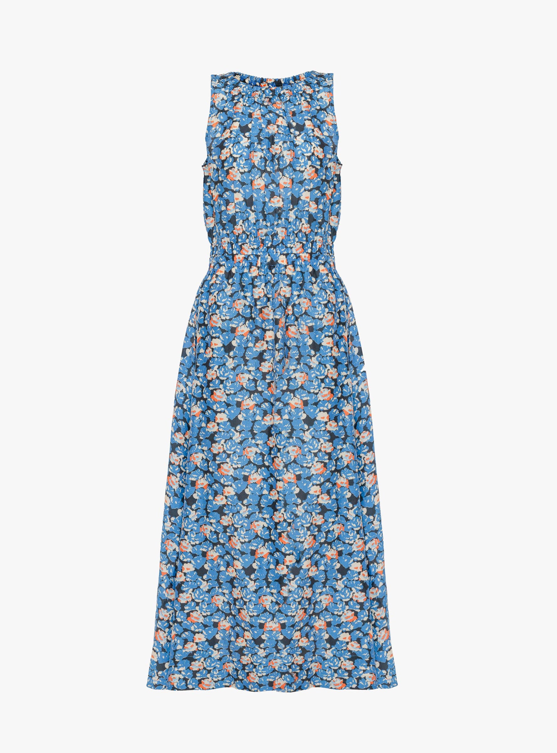 The Bali Tank Dress from Apiece Apart comes in Florette Blue and is made from cotton and silk. The dress features a fitted bodice with an elasticated neckline and waist for comfort, while the skirt falls with side slits for ease of movement. Discreet side pockets add practical detail.