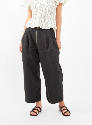 Informed by an exposed fly and half-elasticated waistband, these charcoal-black Bandini trousers from Rachel Comey are cut from organic cotton twill to a high-rise silhouette with wide legs and cropped hems.