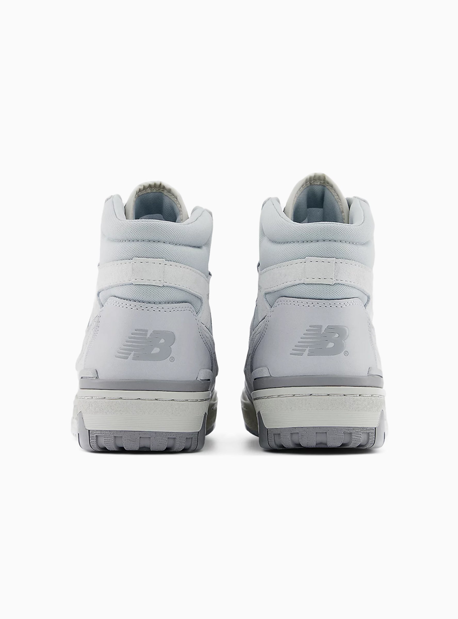 First debuted on the courts in 1989, this light aluminium and rain cloud-grey iteration of New Balance's 650 trainers are made from leather with nubuck overlays and set on exposed EVA mid soles.