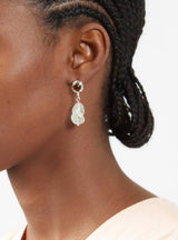 These amber-brown earrings are part of CLED’s Beam series, inspired by the spectrum of shades emitted when light is refracted, such as a rainbow. Made in Los Angeles from 24kt gold-plated brass, they’re embellished with the label’s signature Eco Gems and faux pearls, both of which are hand-formed from discarded glass bottles.