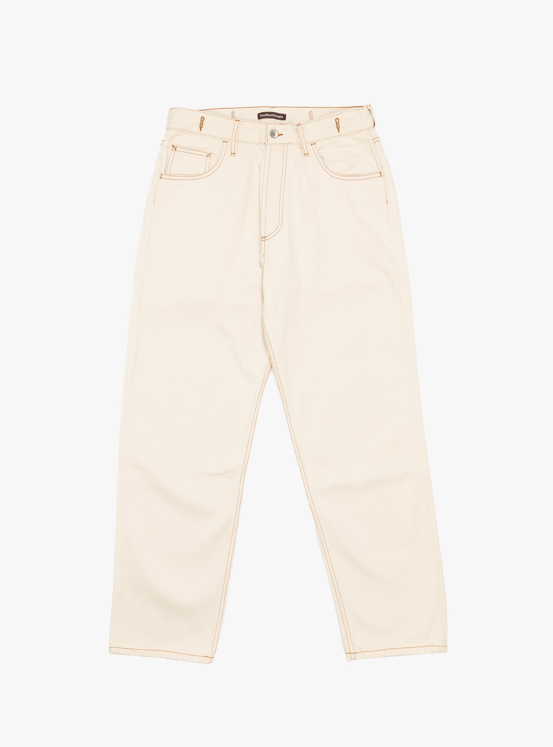 The Bez Jean from YMC come in a soft ecru colour. Crafted in Portugal from 100% organic cotton denim, the selvedge jeans are washed with a garment rinse and cut to a baggy silhouette.