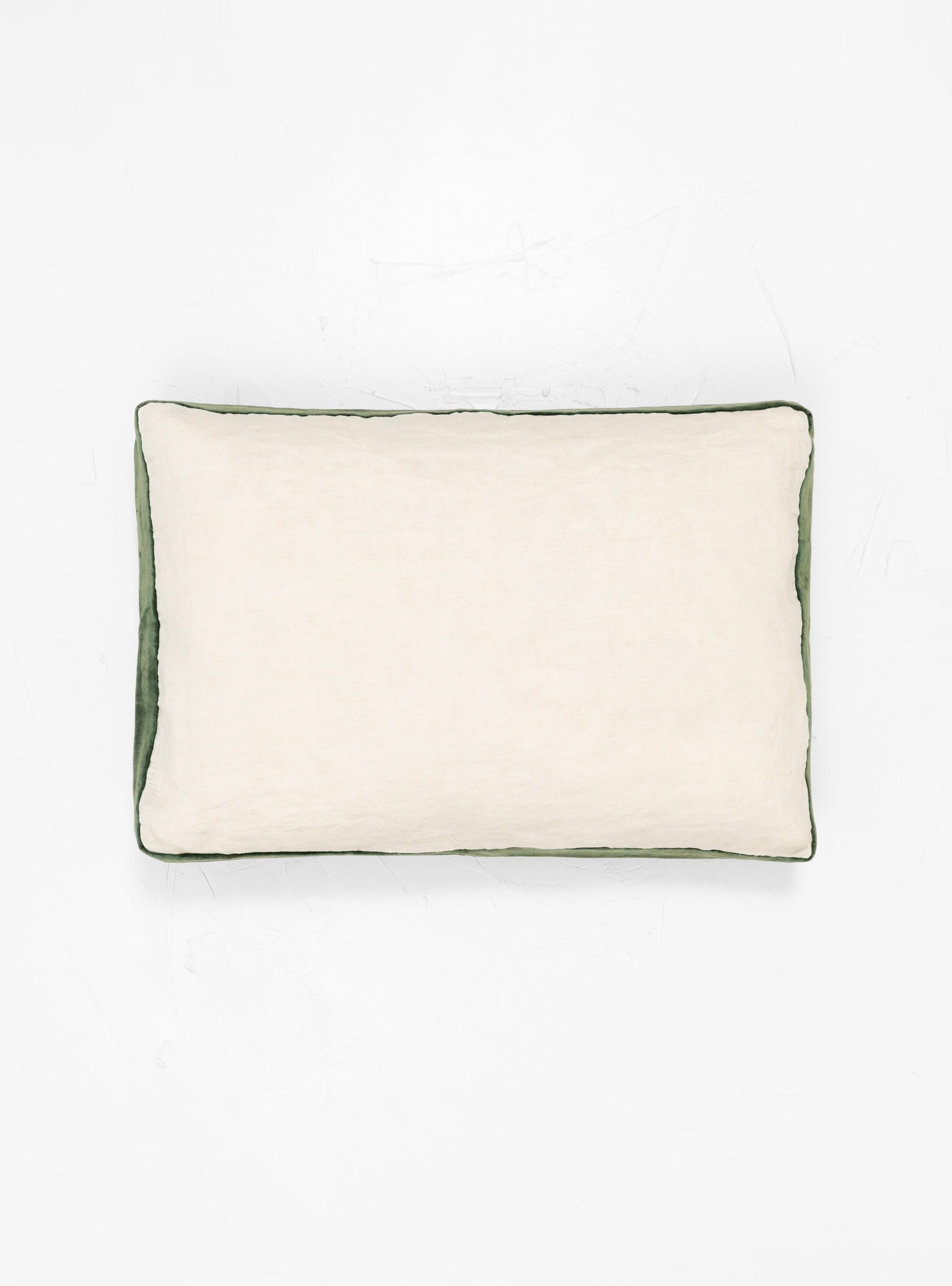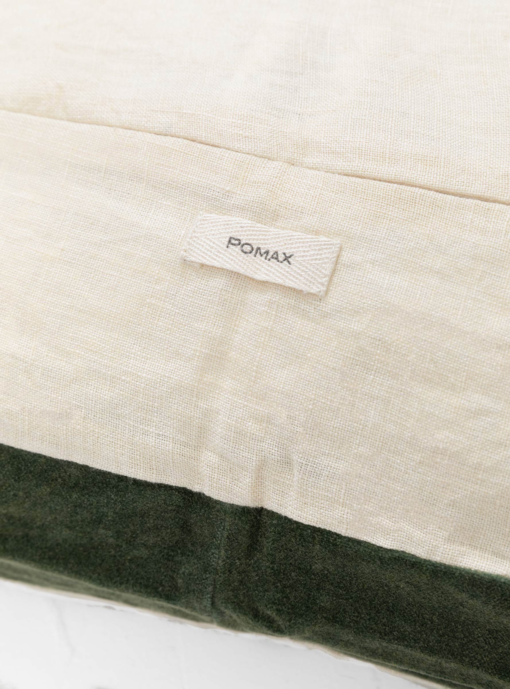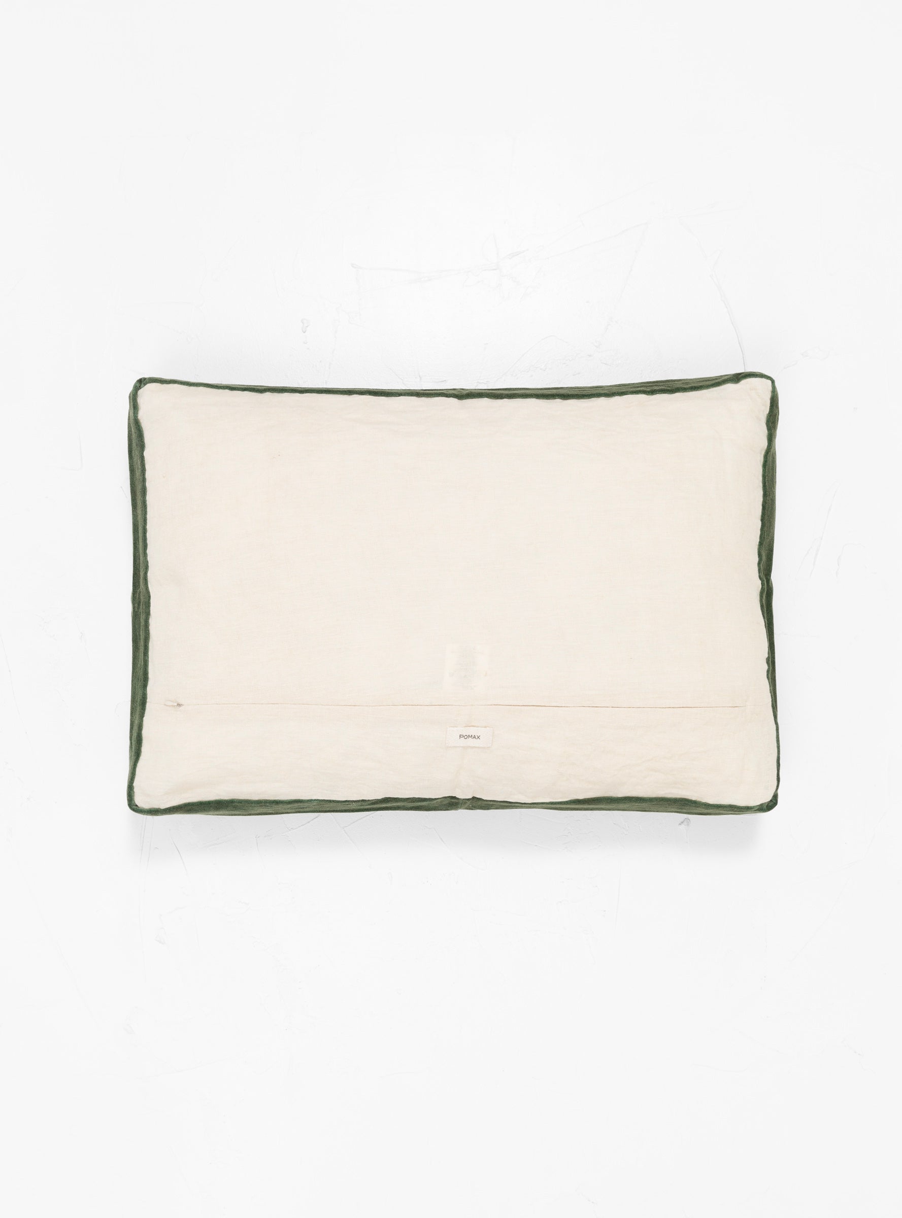 The Border Cushion from Pomax comes in a natural colourway with a green border. Made in India from linen, the feather cushion is finished with a contrast velvet edge. Why not complete the set with our other colourways?