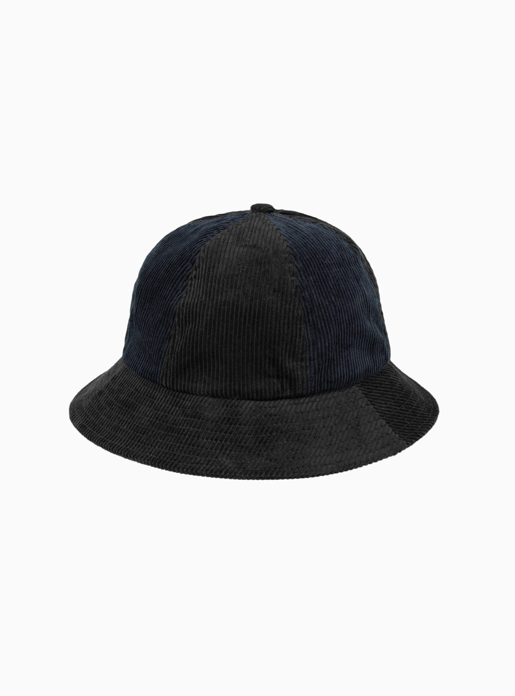 Made from mid-wale cotton corduroy, this navy and black bucket hat from Garbstore’s AW23 collection has a six-panel construction and taped internal seams.