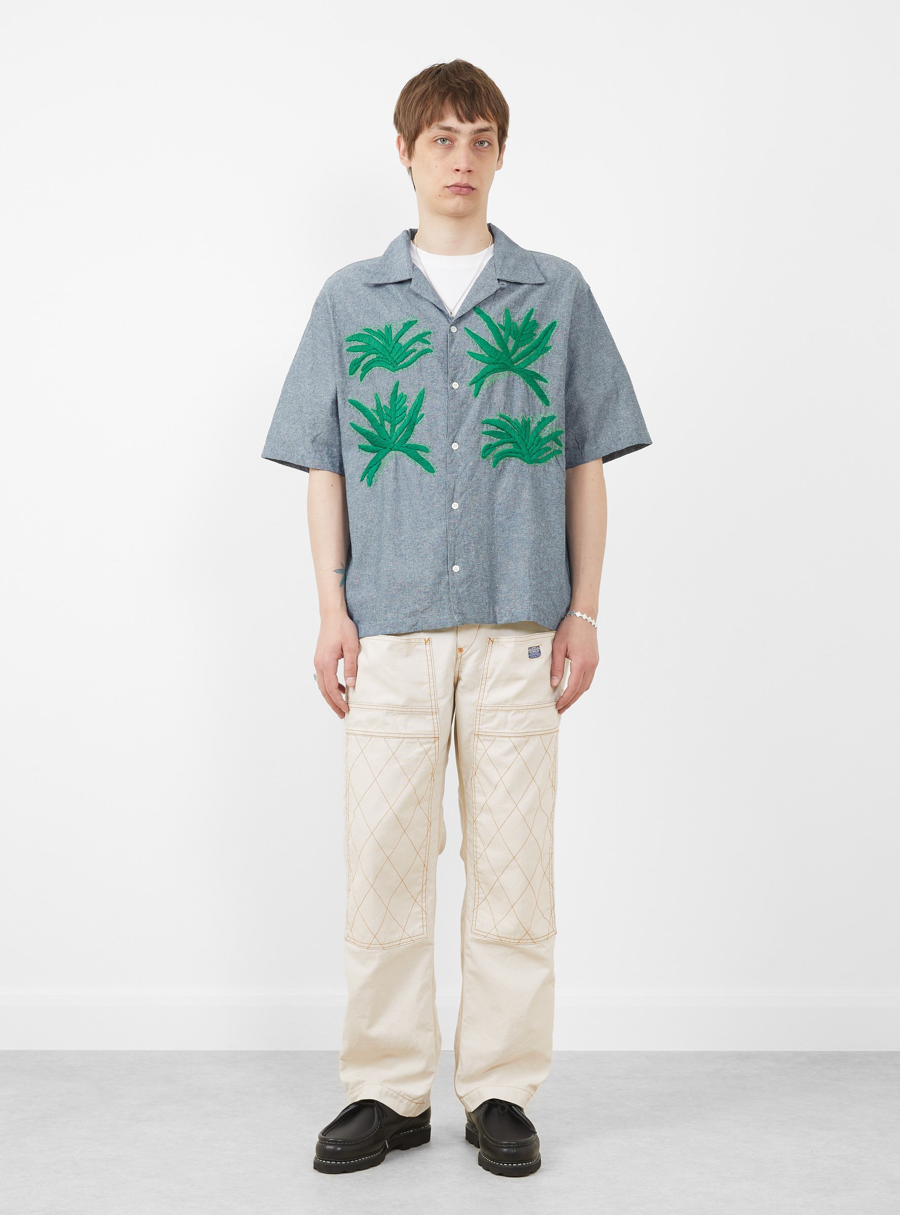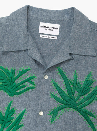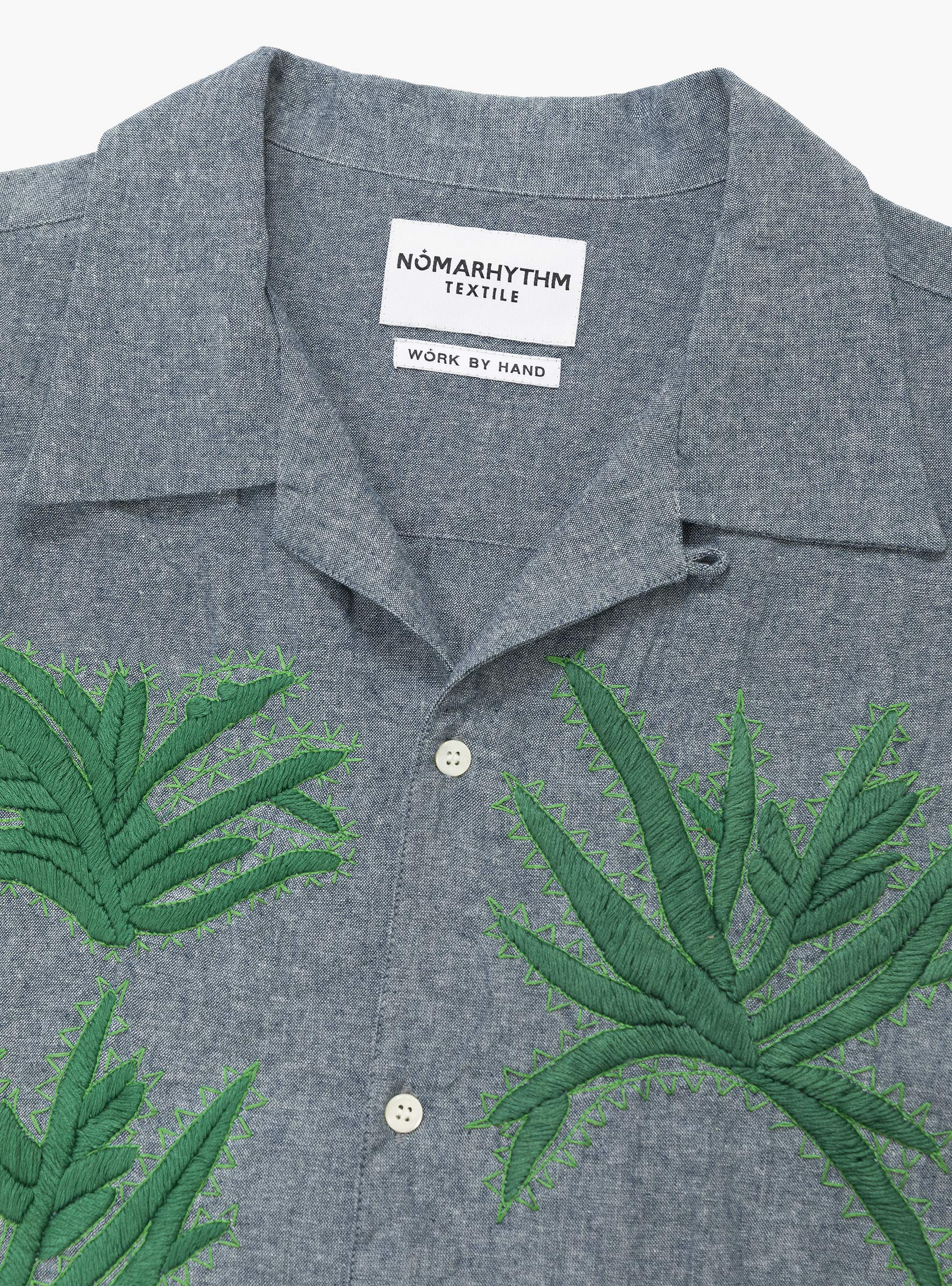 Made from cotton, the Cactus Hand Embroidery Shirt by NOMARHYTHM TEXTILE comes in Indigo Green. Featuring an open collar, short sleeves, and a white button placket, it's hand-embroidered by artisans in India with cactus-inspired motifs.