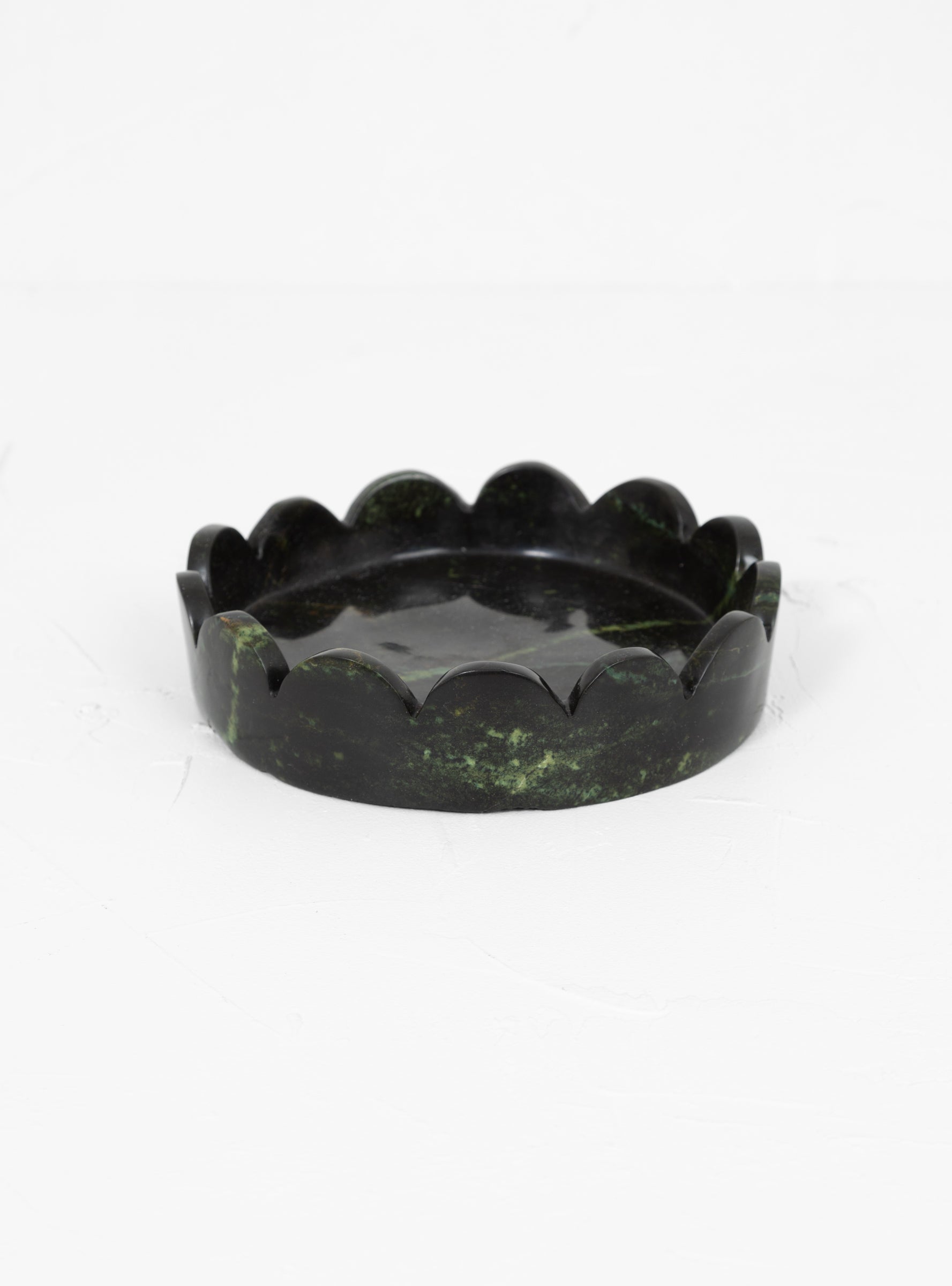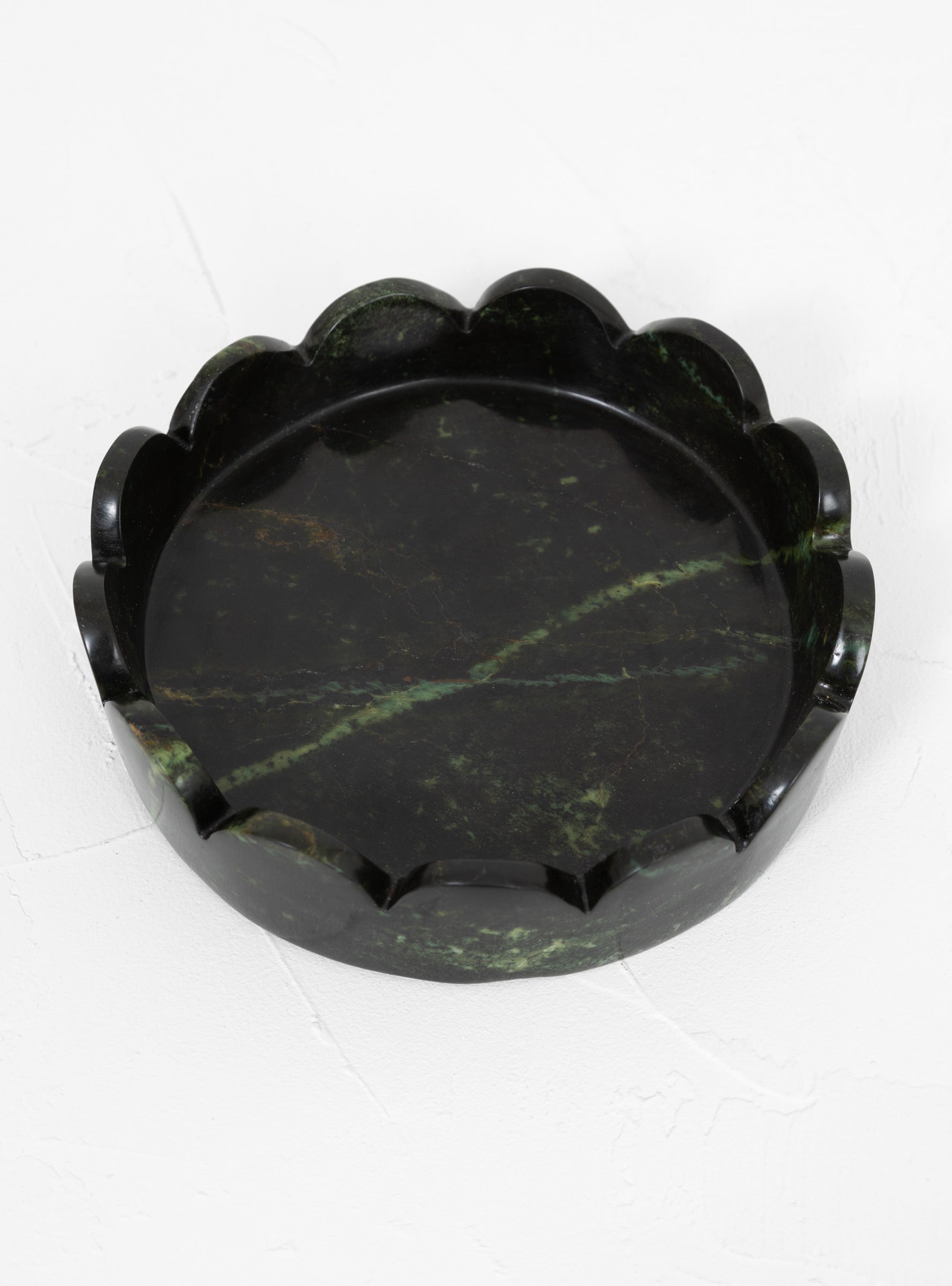 Designer Alessandra Williams was inspired by the scalloped edges of door canopies to design this plate, hand carved in Zimbabwe by a community of Fair Trade certified artisans. The unique shades of the Green Leopard stone make each piece one of a kind.