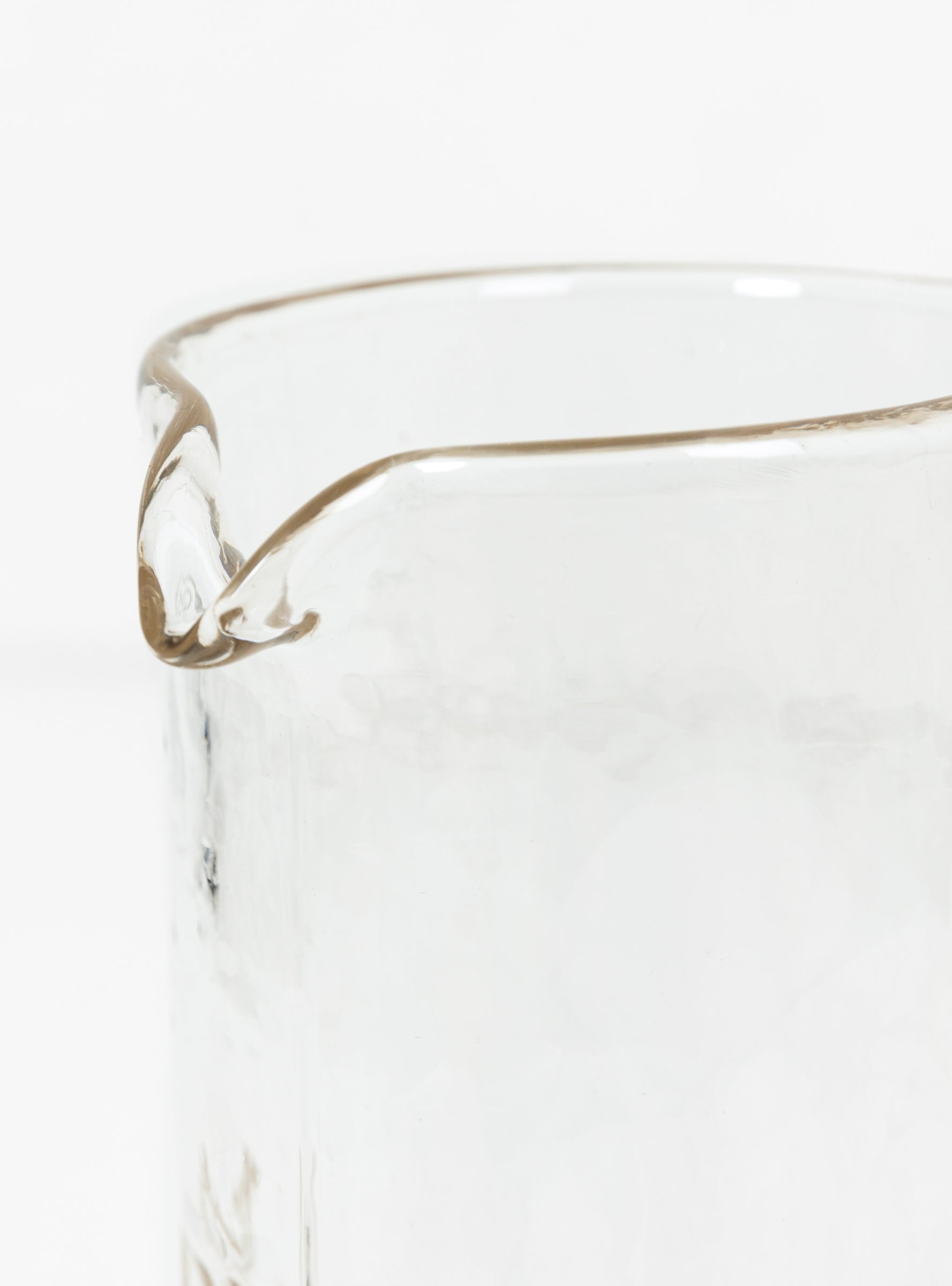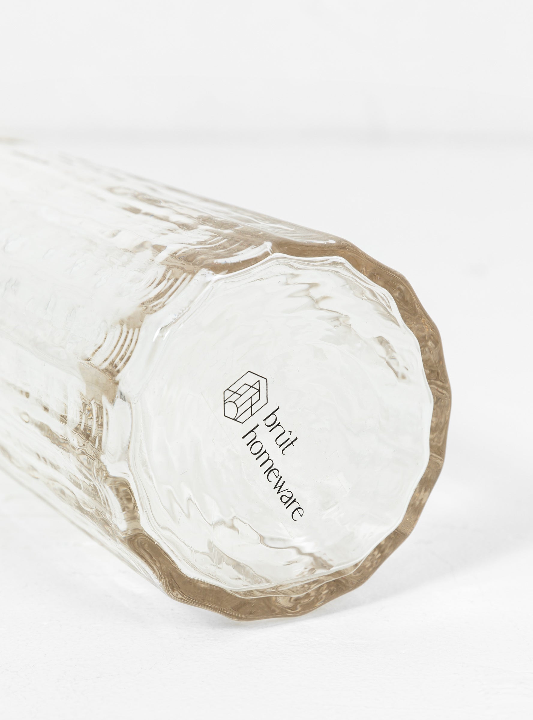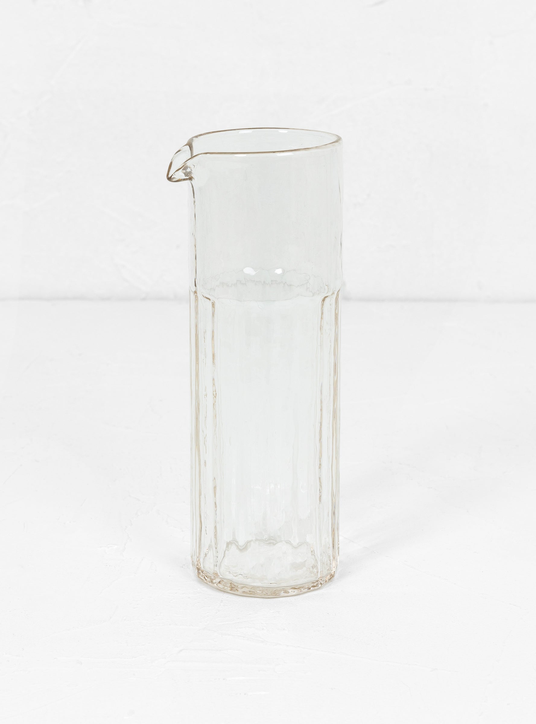 This Carafe from Brut Homeware is handmade from recycled glass by Indian artisans. Inspired by Art Deco design, the clear heavy, mouth blown carafe features vertical ridges along the bottom.