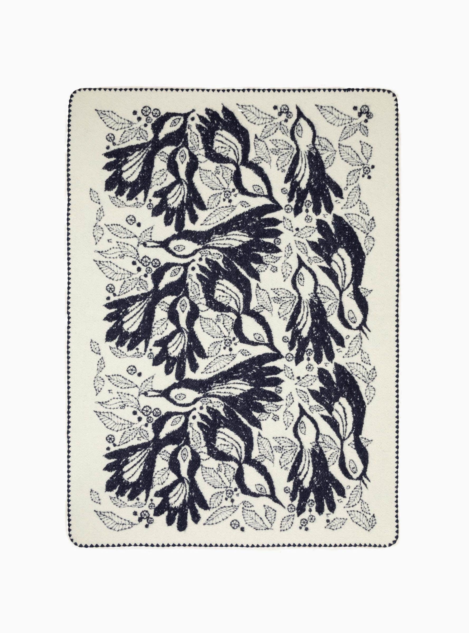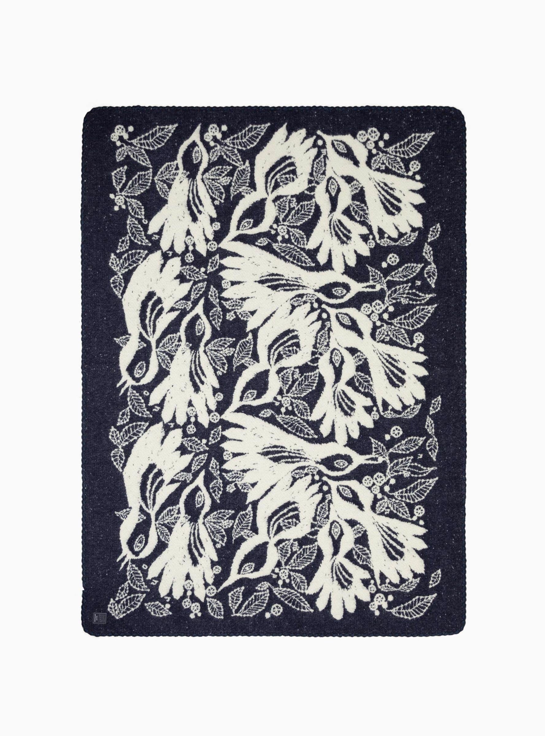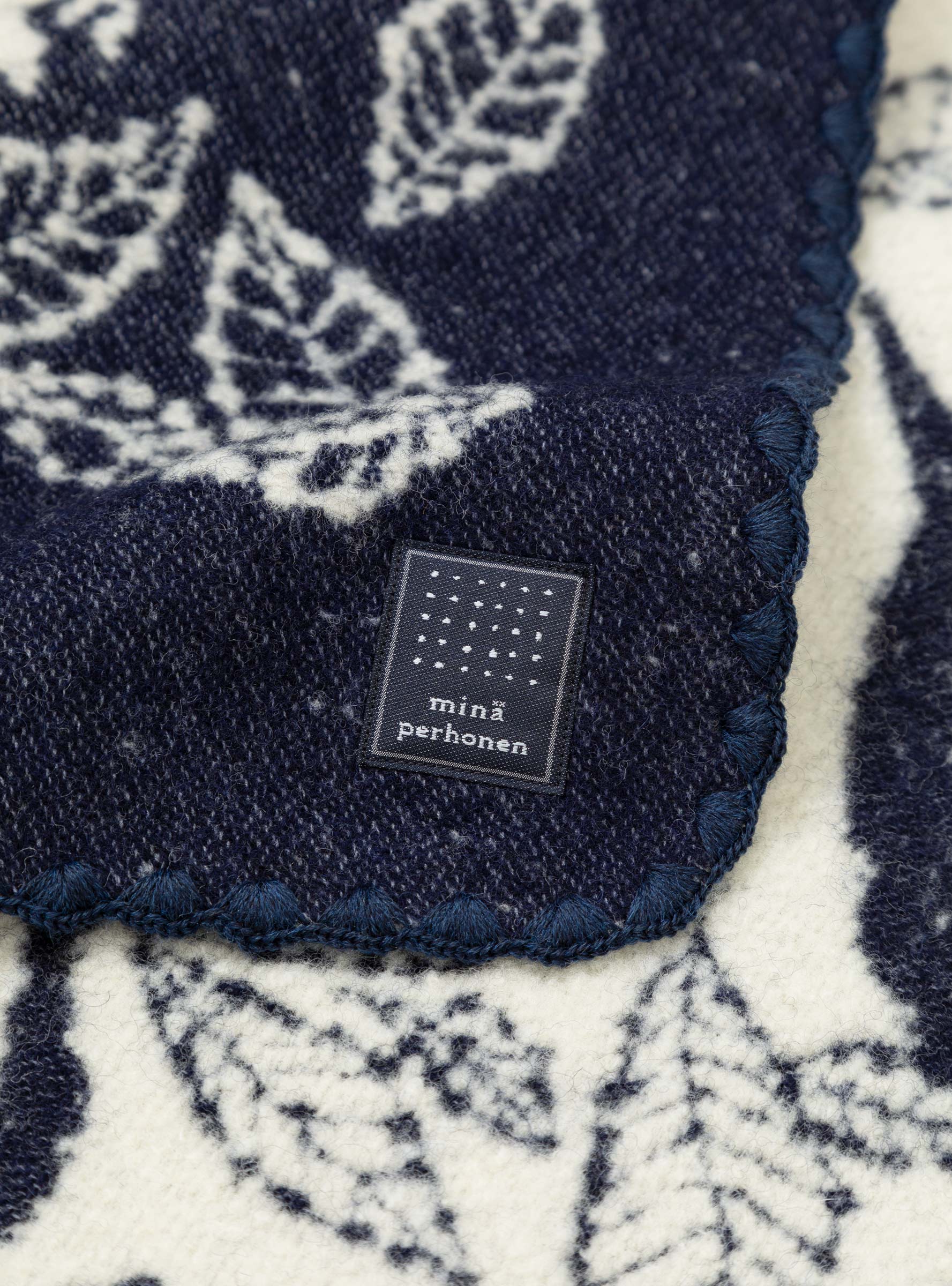 This navy Carnival blanket from Minä Perhonen is made in Japan from soft wool jacquard, meaning it can be presented two ways depending on your mood, and finished with hand-stitched edges.