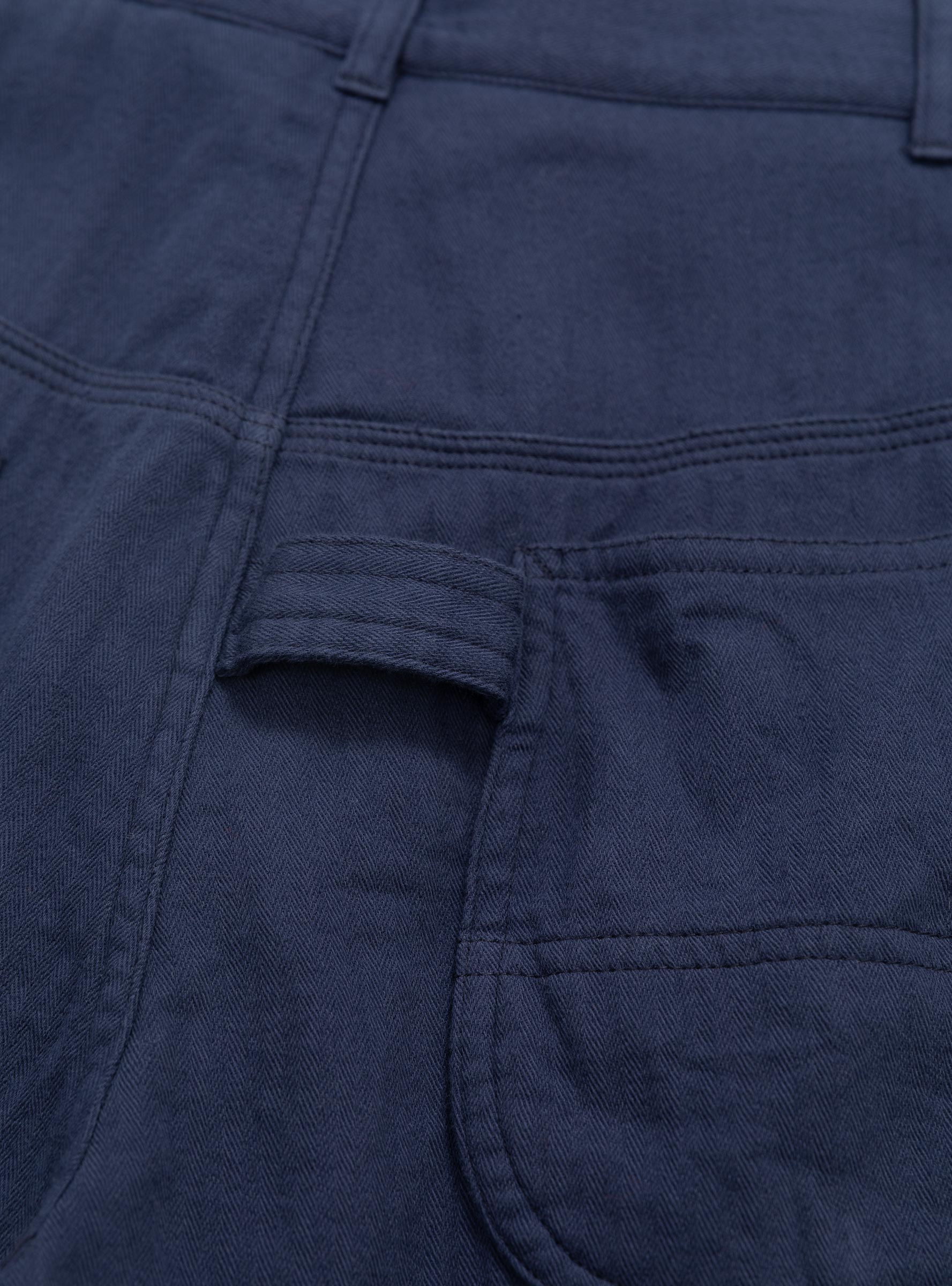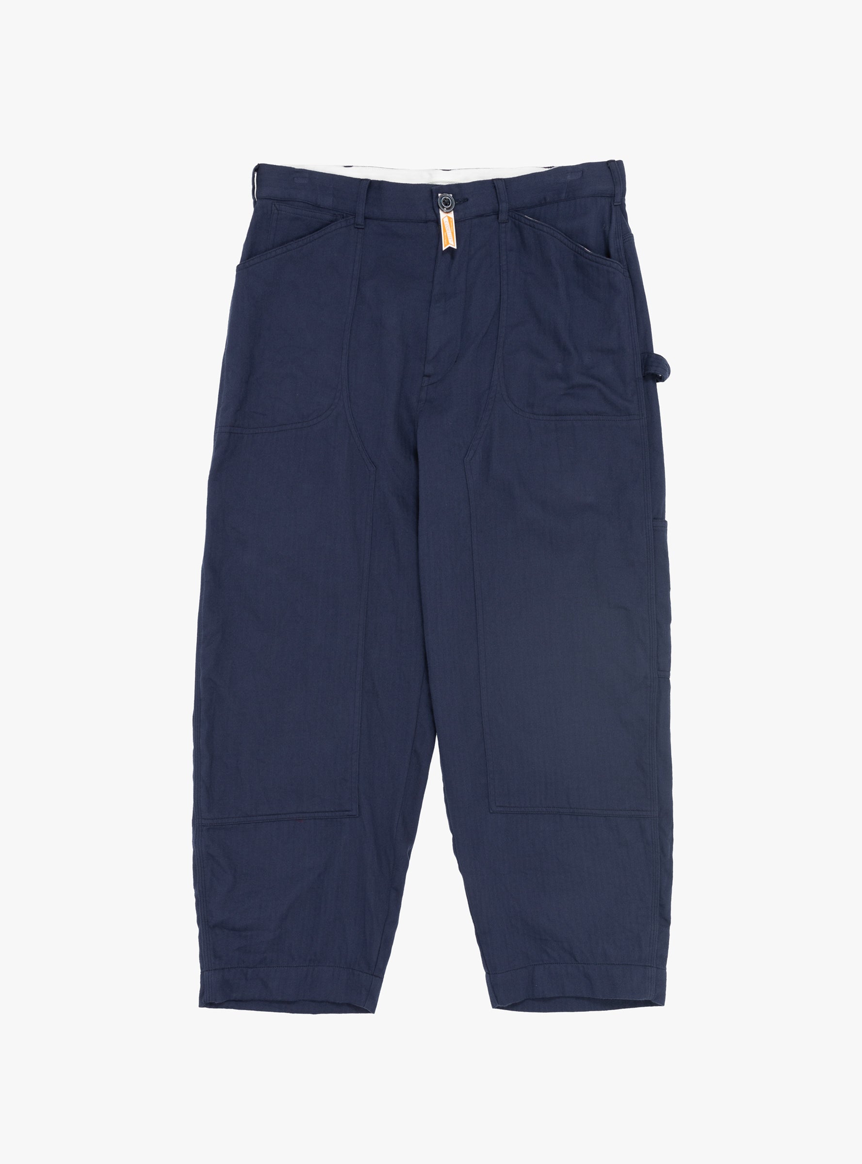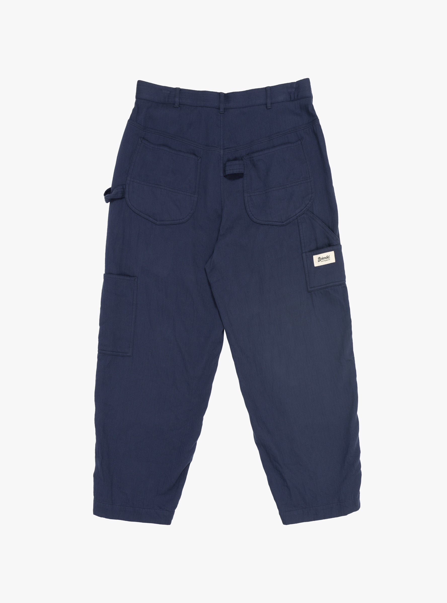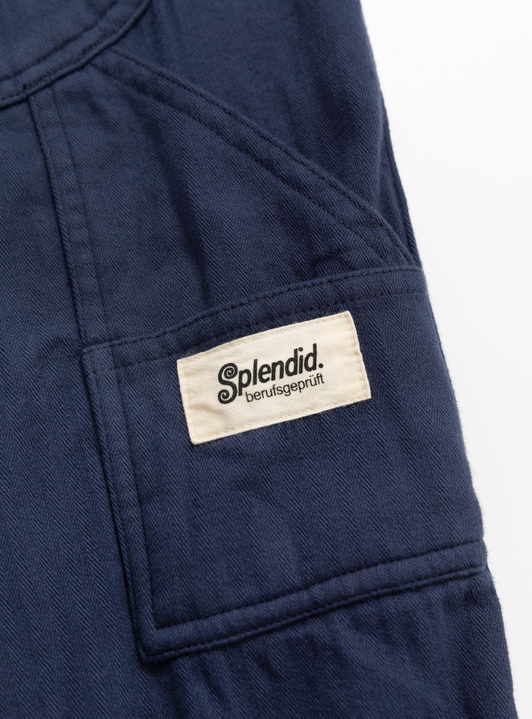 The Carpenter Pant in Navy from TDR is a utility-focused trouser made from 100% cotton. Designed for function and style, it features multiple carpenter pockets, a twisted hammer loop, reinforced knees, and a Splendid logo stitched on the right-hand patch pocket.