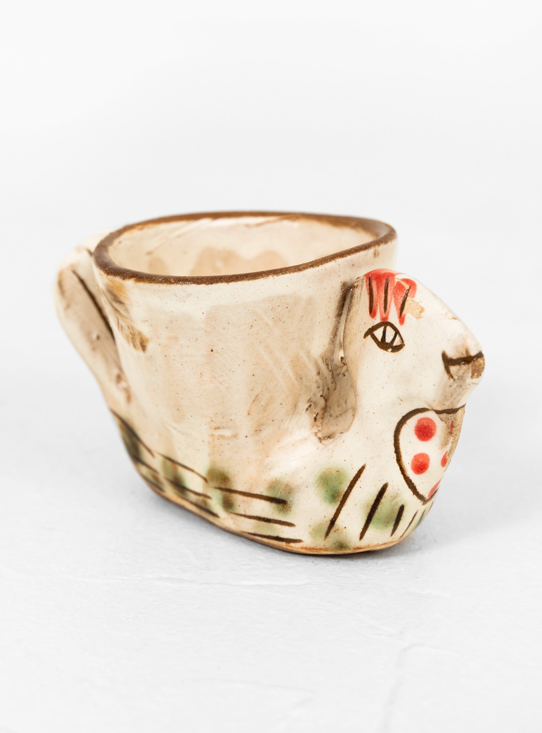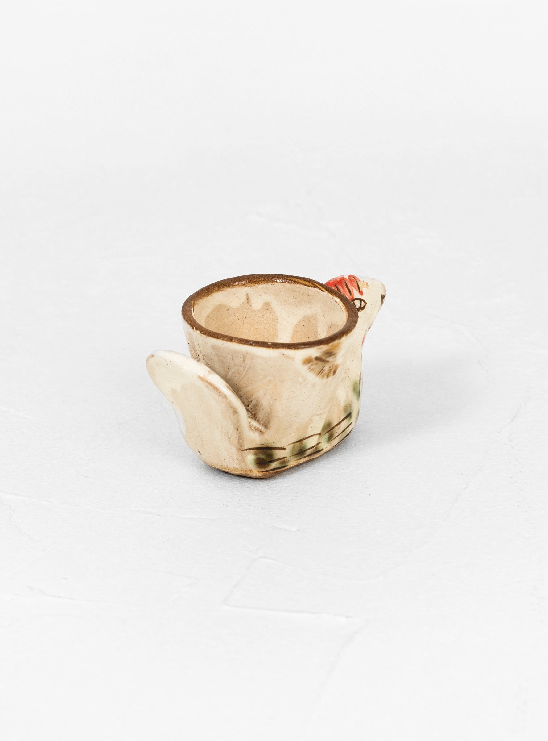 The Chicken Egg Holder from Anut Cairo is hand-crafted and hand-painted by Fayoumy potters in Egypt. The egg cup sits atop a hand-crafted chicken.