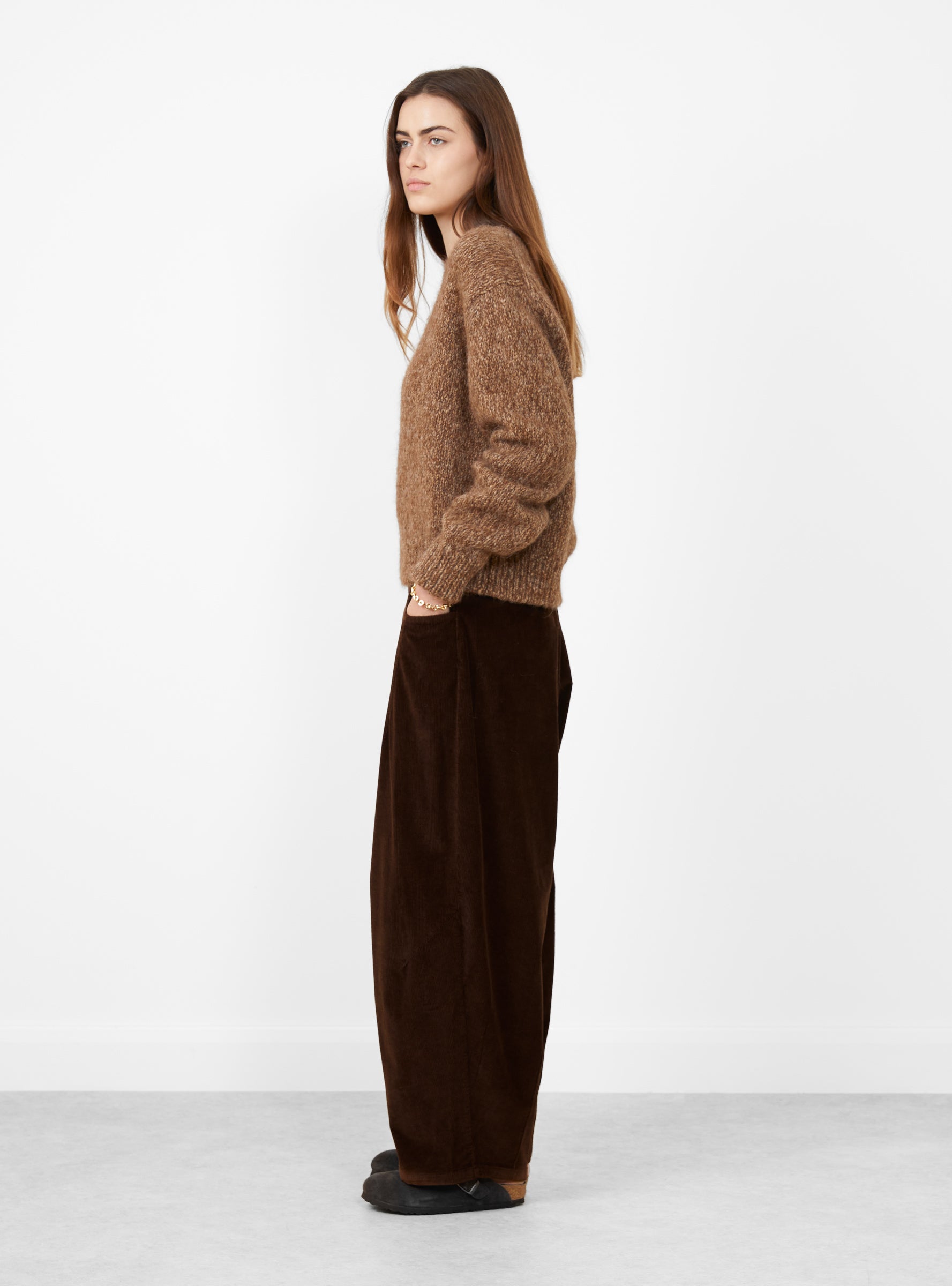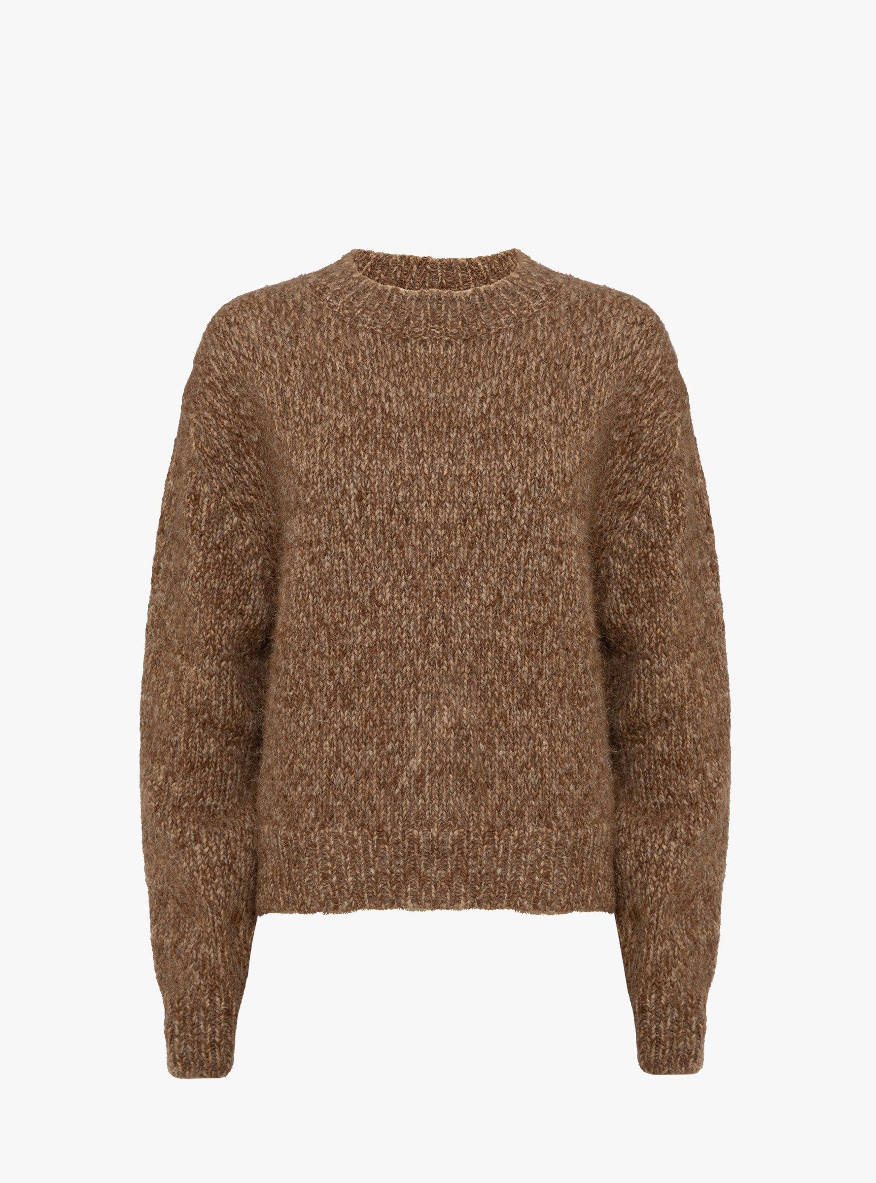 The Chunky Sweater from Cordera comes in Brown Melange and is crafted in Spain. Designed in a regular boxy fit, this cozy knit features a classic crewneck, ribbed cuffs, and hem. Made from a blend of superfine alpaca and recycled polyester, it balances warmth and softness with a sustainable touch.
