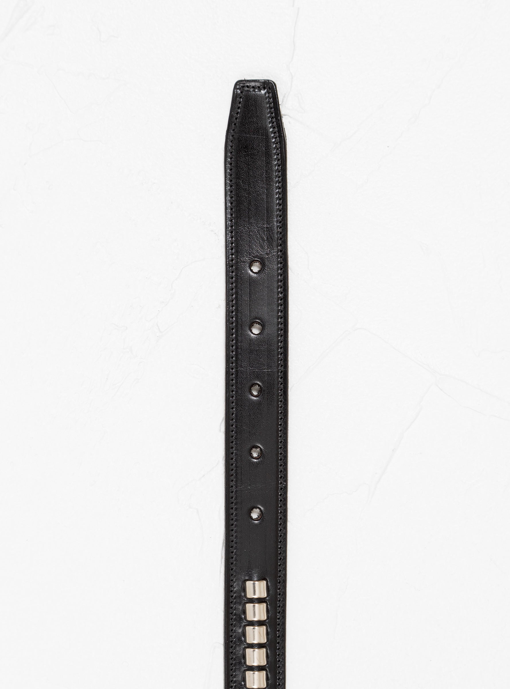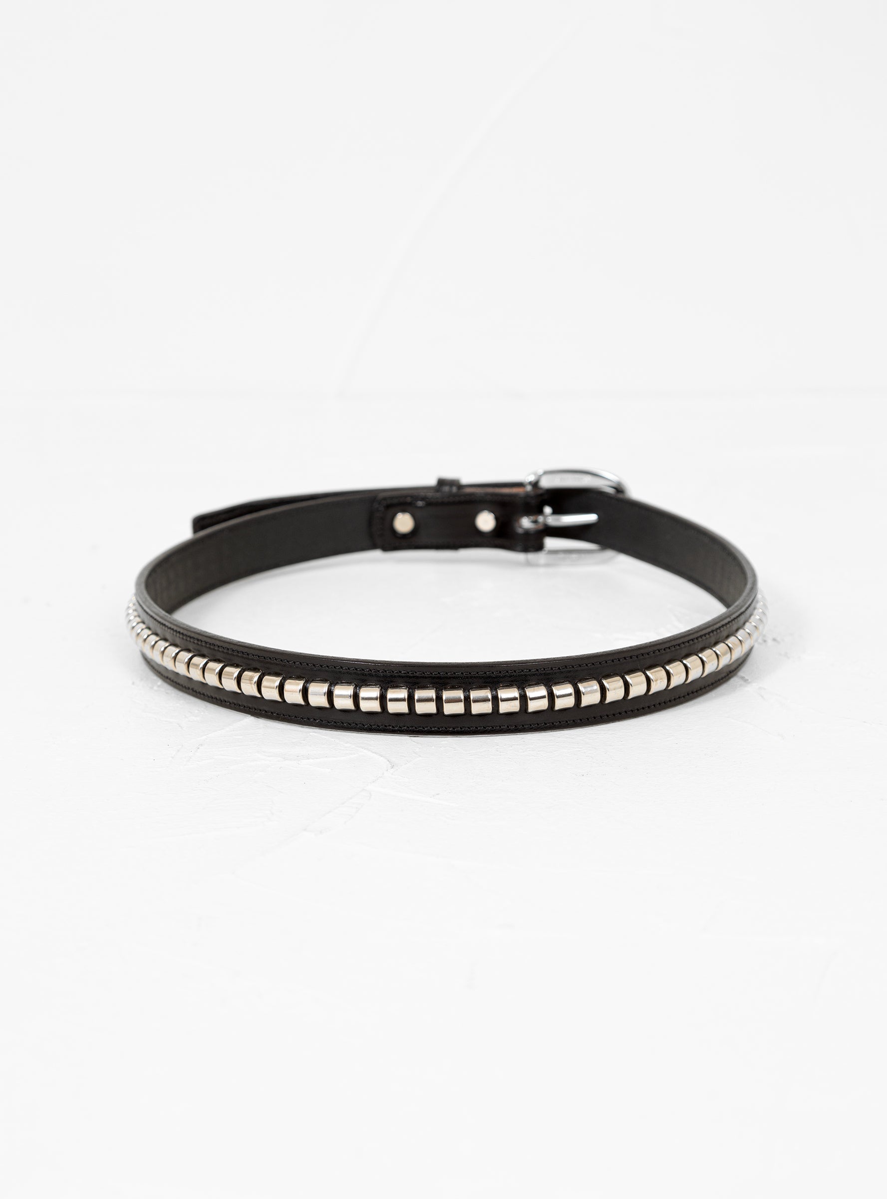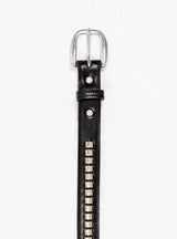 Made in the USA from bridle leather, this black Clincher belt from Tory Leather features silver-tone brass hardware, including stud embellishments, and is finished with stitched edges.
