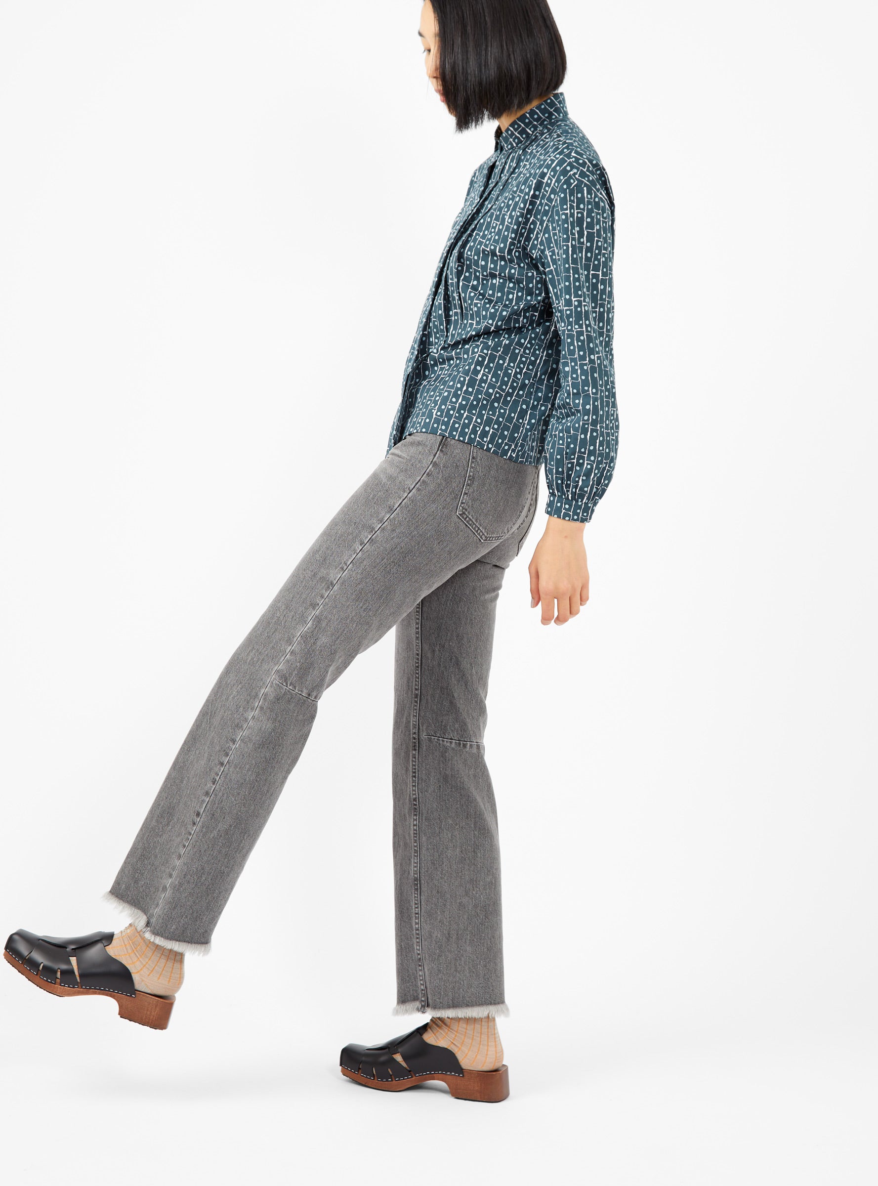 Made in the USA from the label’s Washed Salinas Denim, a Japanese denim that slowly builds character with wear, these grey Collins jeans from Rachel Comey are cut to a mid-rise silhouette with straight, slightly flared legs and raw hems.