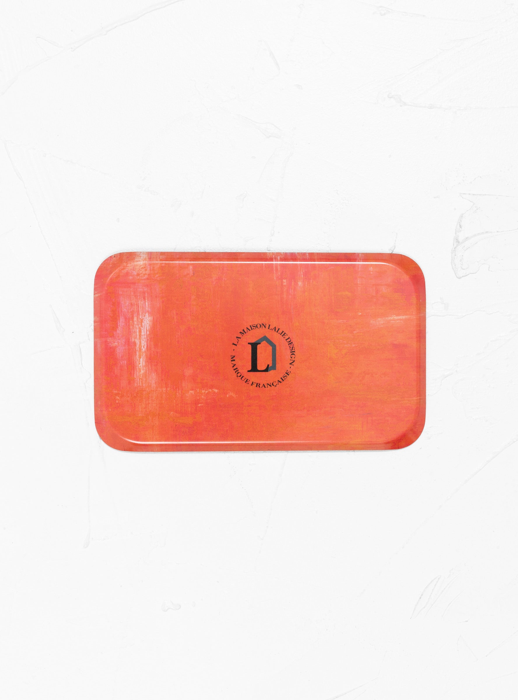 The Confetti Orange Tray from Lalie Design is made in Spain from melamine. With a confetti paint design, the XS tray is the perfect house accessory.