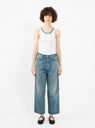 Contrast Slim Rib Tank Top White & Teal