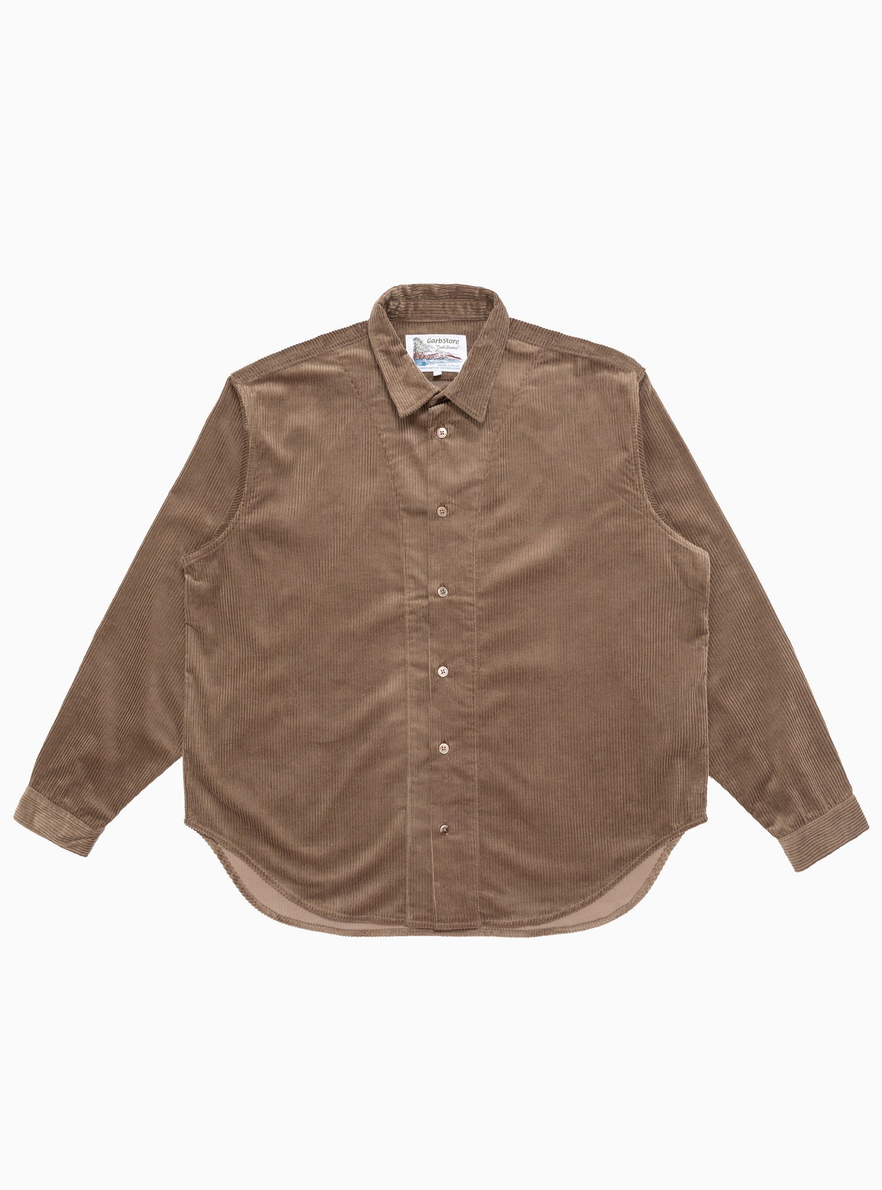 The cord shirt is a winter essential, and this stone iteration from Garbstore’s AW22 collection is a stellar choice. Made from premium Japanese cotton-blend corduroy, it’s cut to a relaxed silhouette with a classic collar and a curved hem. Natural shell buttons fasten the front and cuffs.