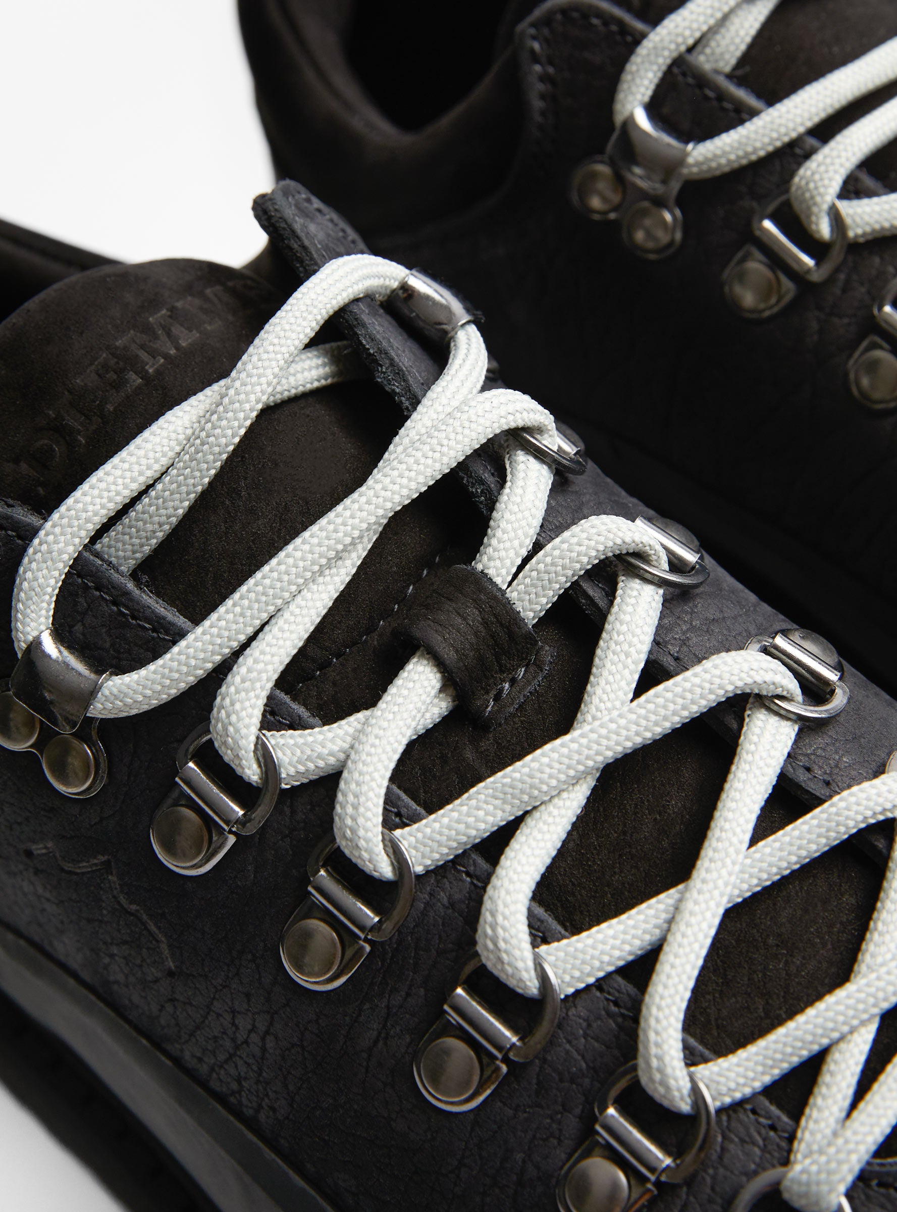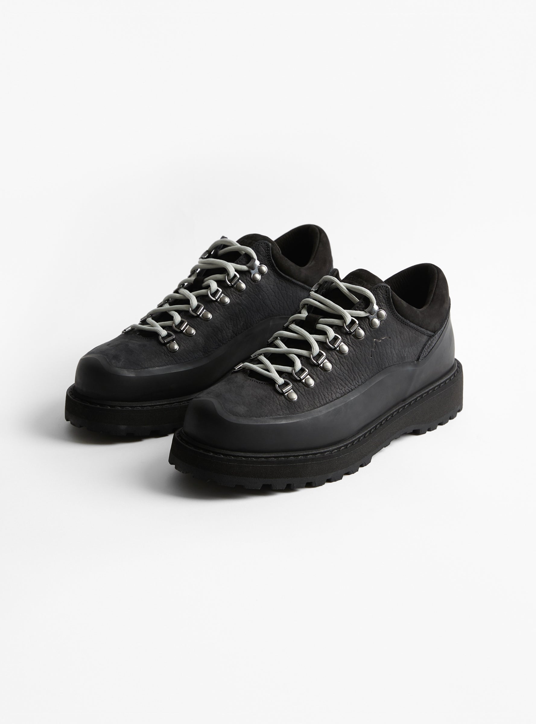The Cornaro Gomma from Diemme arrives in Black. Handcrafted in the Diemme family factory in Veneto, Italy, this low-top hiking-inspired style features waxed structured leather uppers for added water resistance. Finished with tonal hardware, a branded tongue, and durable rubber soles.