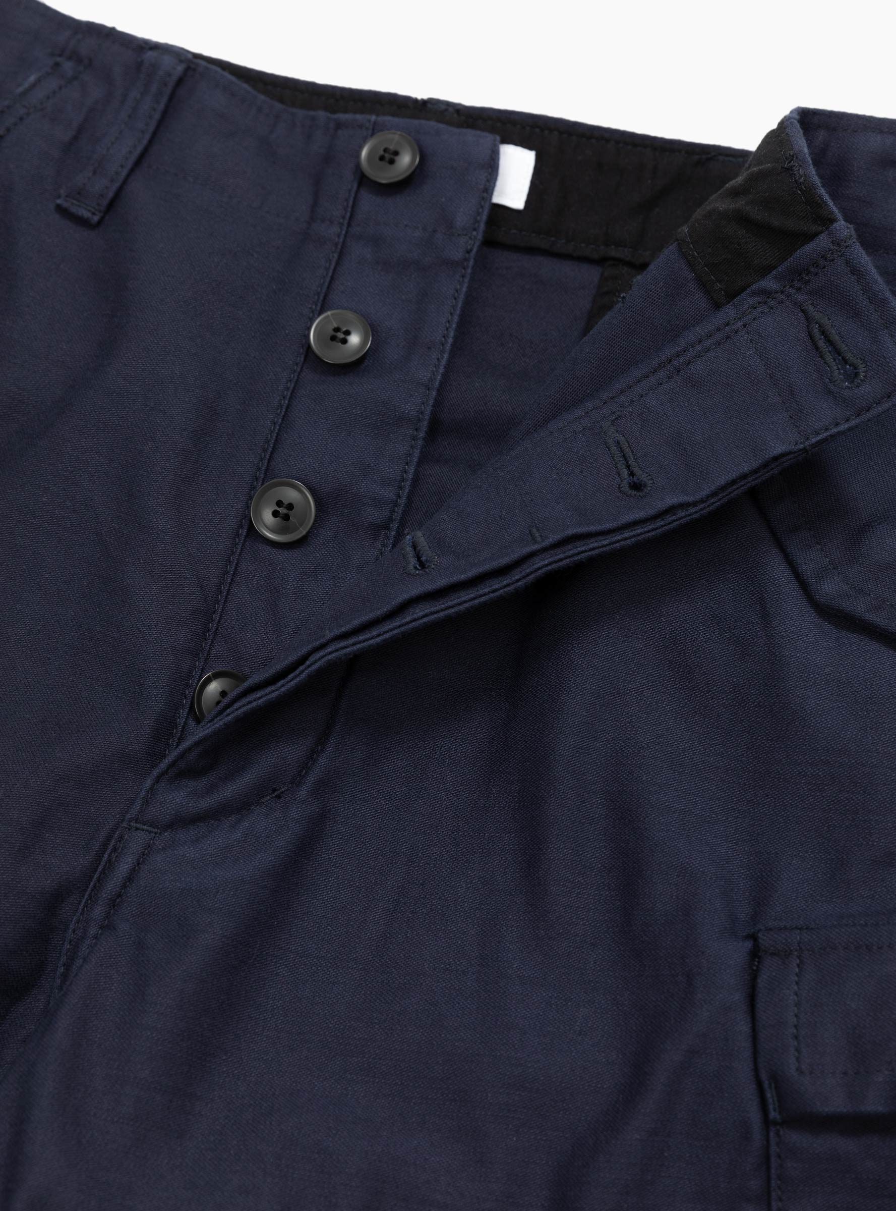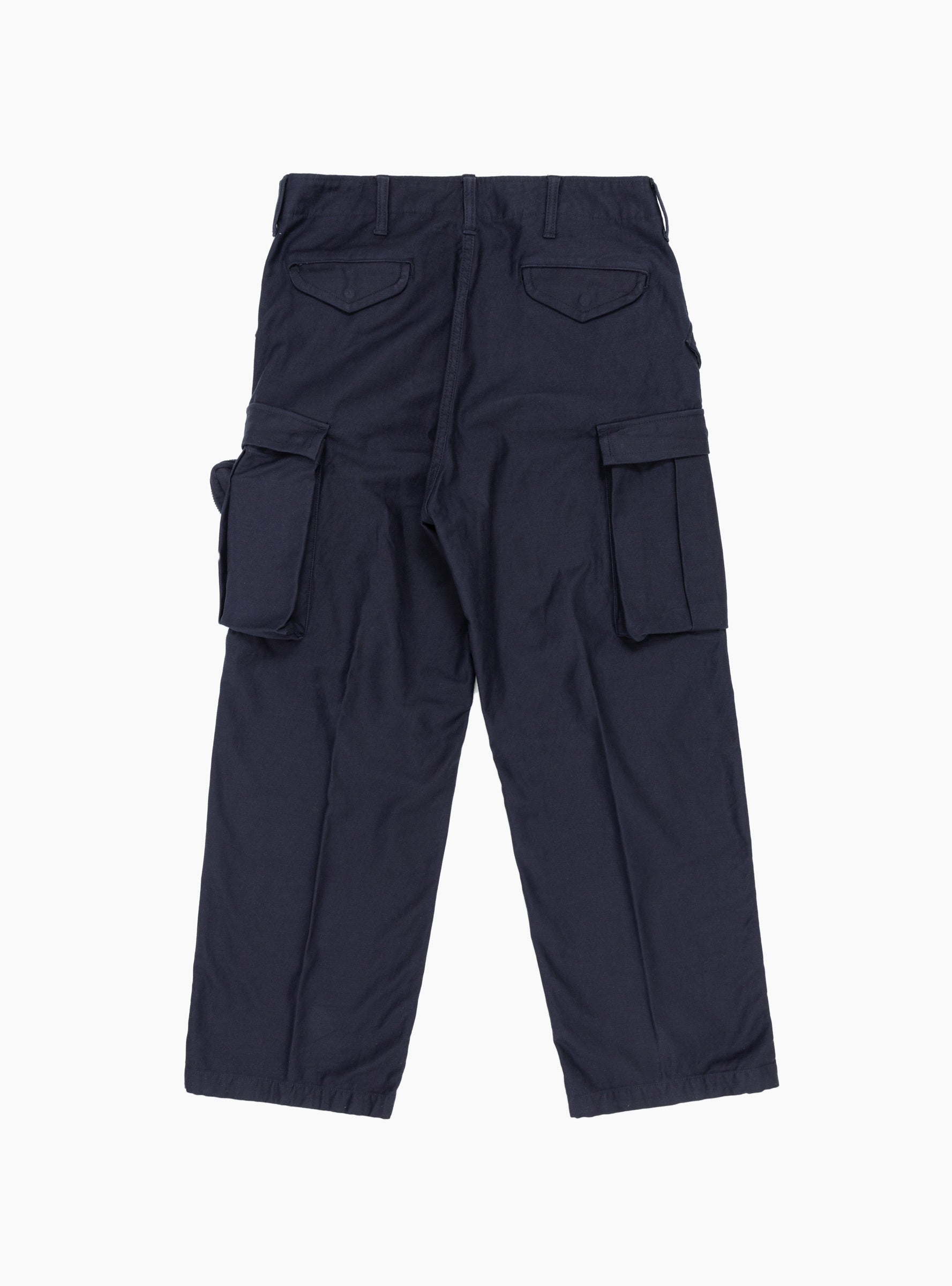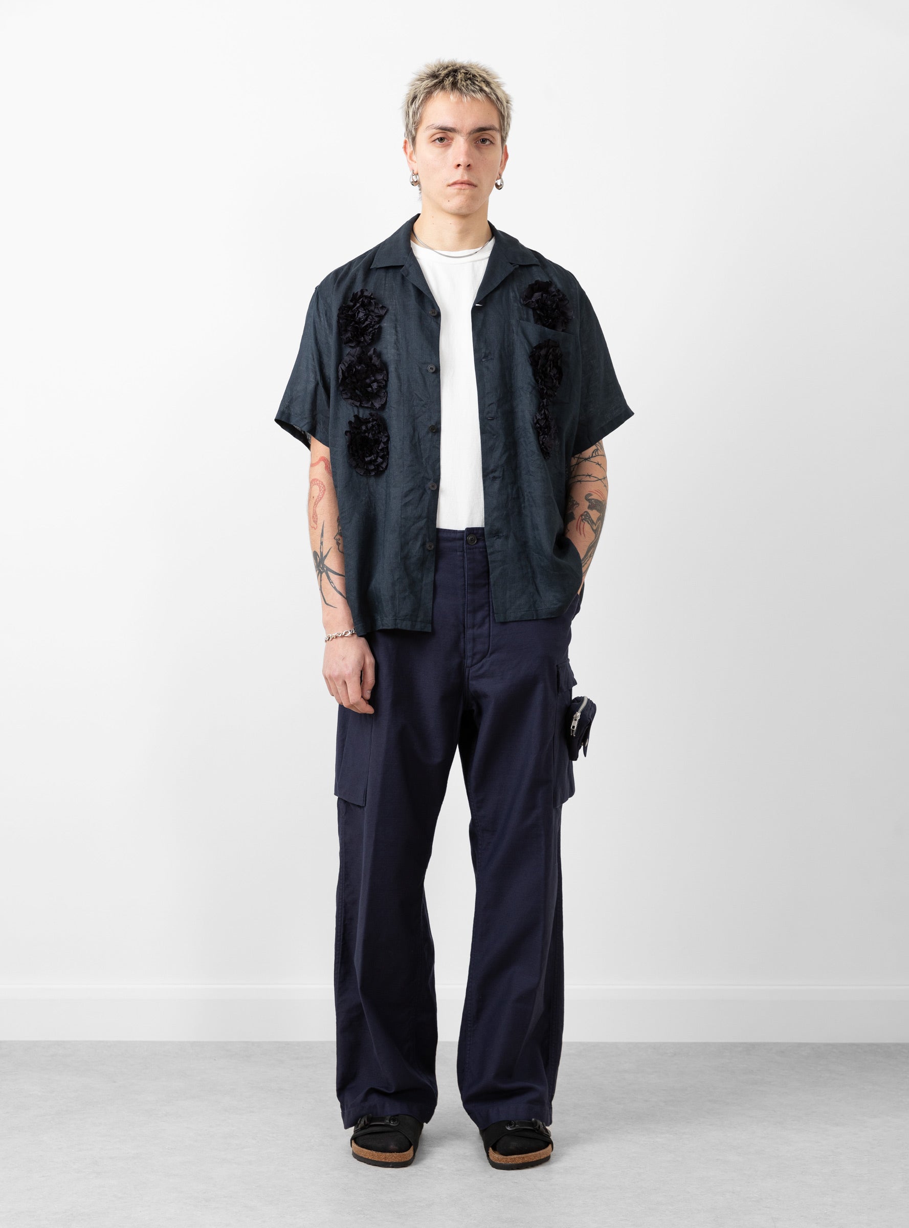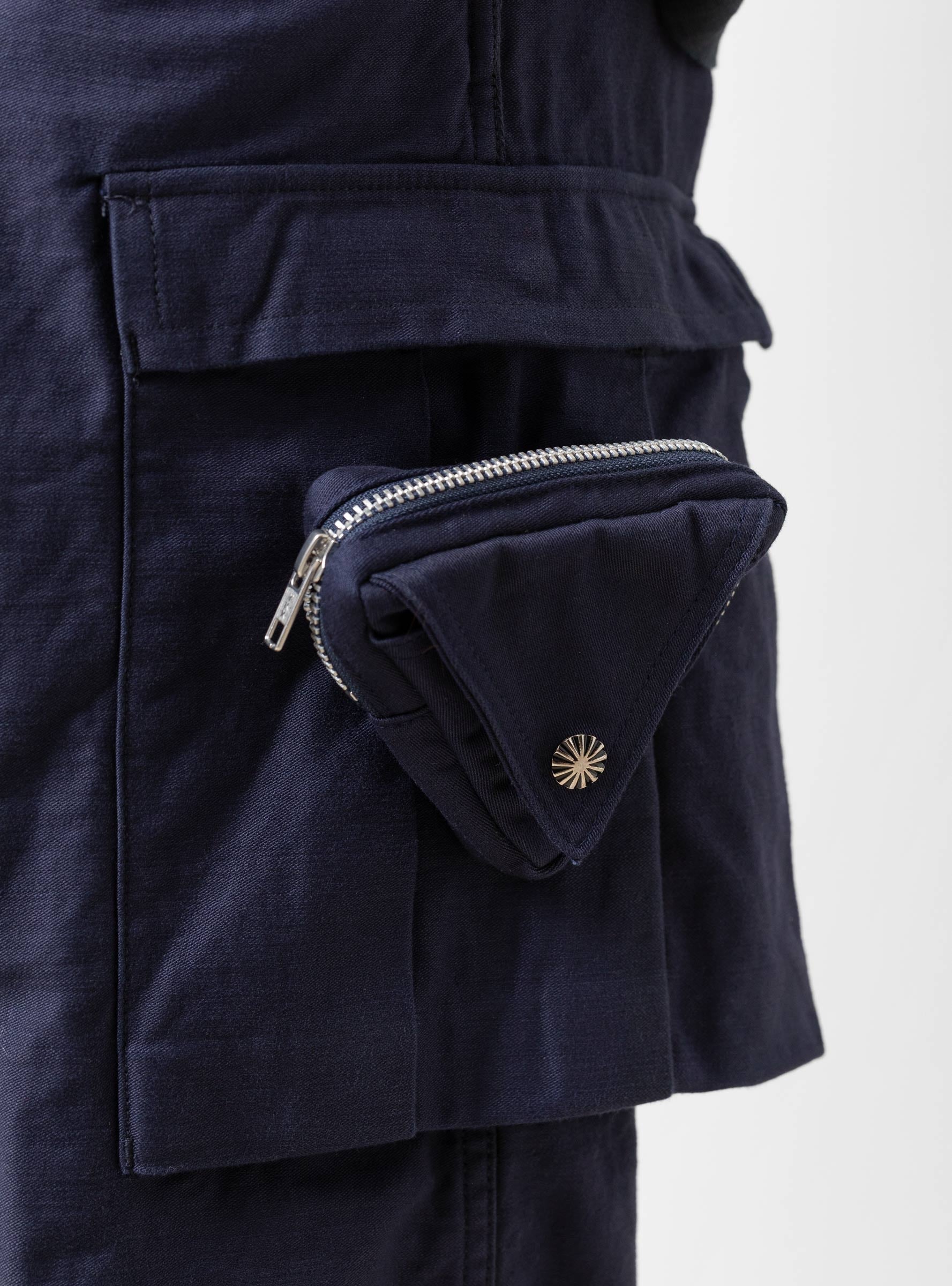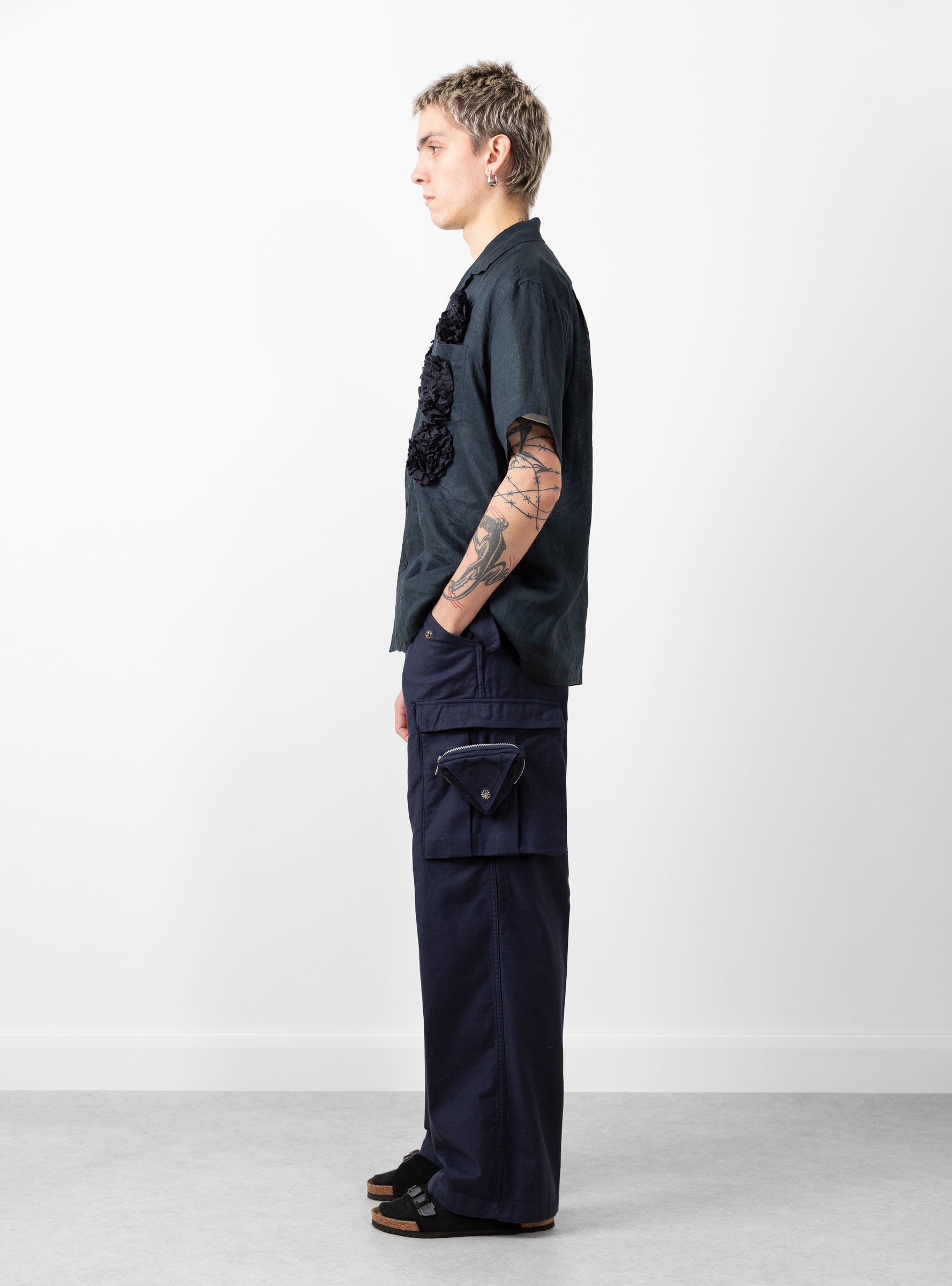 Made in Japan from sturdy cotton canvas, these navy cargo trousers from TOGA VIRILIS are cut to a relaxed silhouette with straight legs and an assortment of welt and patch pockets, including a zipped compartment at one side.