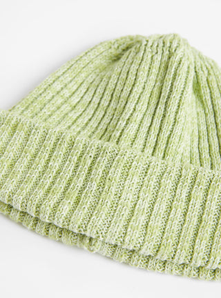 Made in Japan from a cotton and linen blend, this Green beanie from Sublimeroe is knitted by hand with a ribbed construction, featuring a folded brim.
