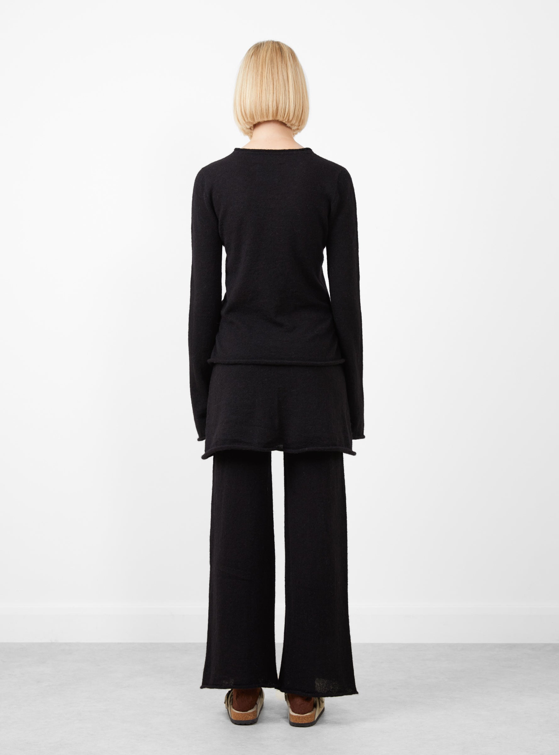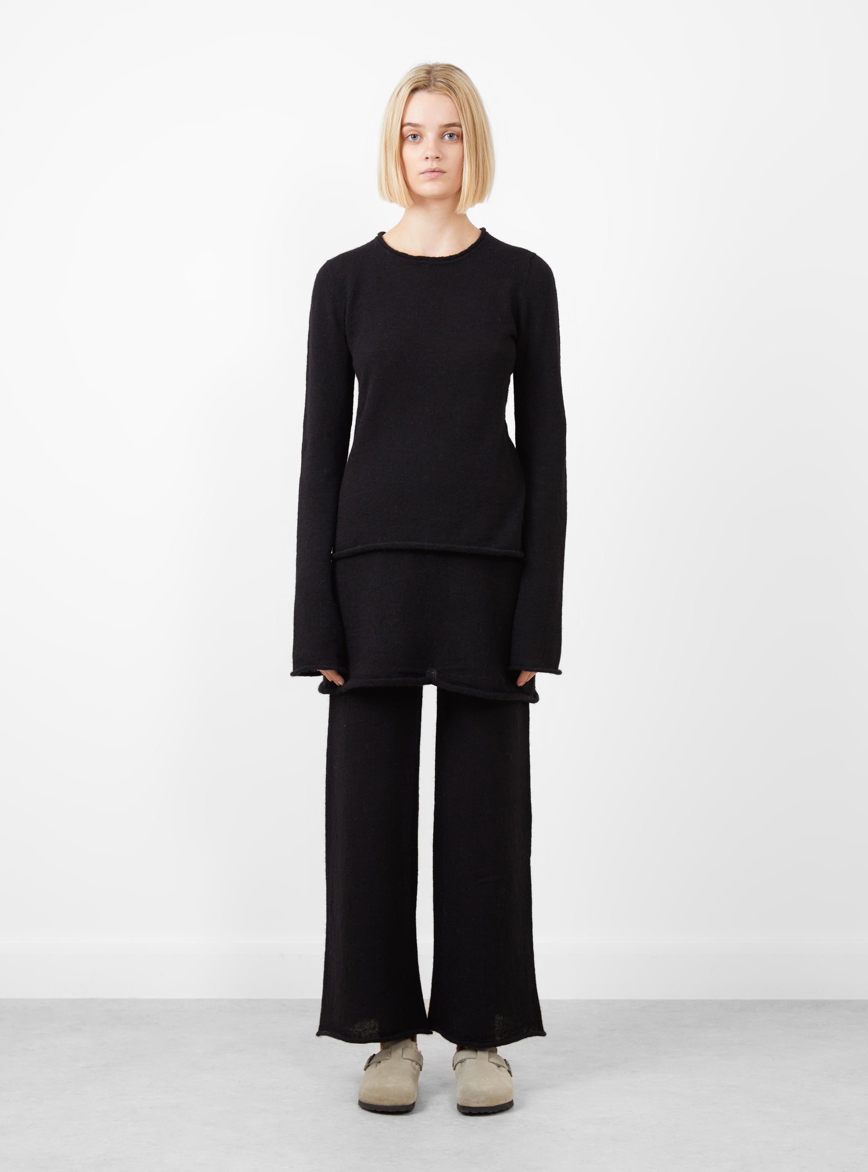 The Crewneck Jumper from Lauren Manoogian is hand-loomed in Peru from a black coloured alpaca and wool blend. Falling to a regular fit and featuring a slightly wider crewneck, the jumper also has rolled edge seams throughout, providing interest and texture. A perfect winter layering hero.