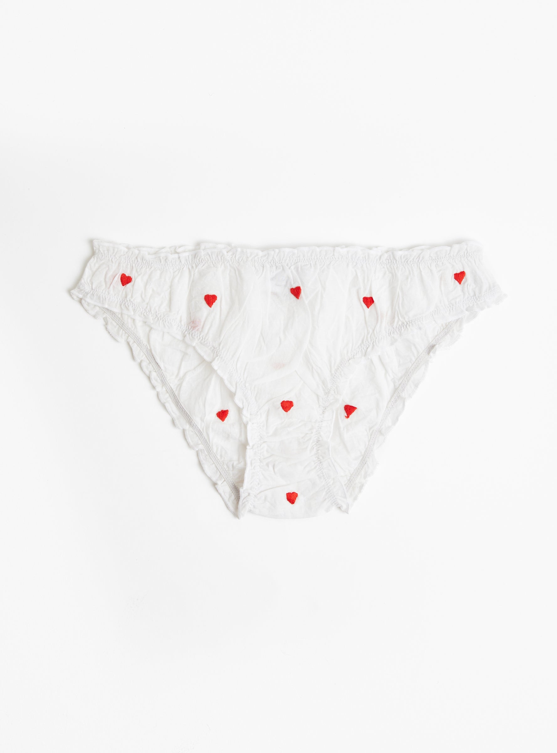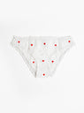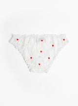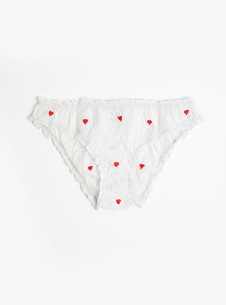 The Cullote Valentine briefs from Scarlette Ateliers are made from cotton and feature red love heart motifs, as well as ruffled edges.