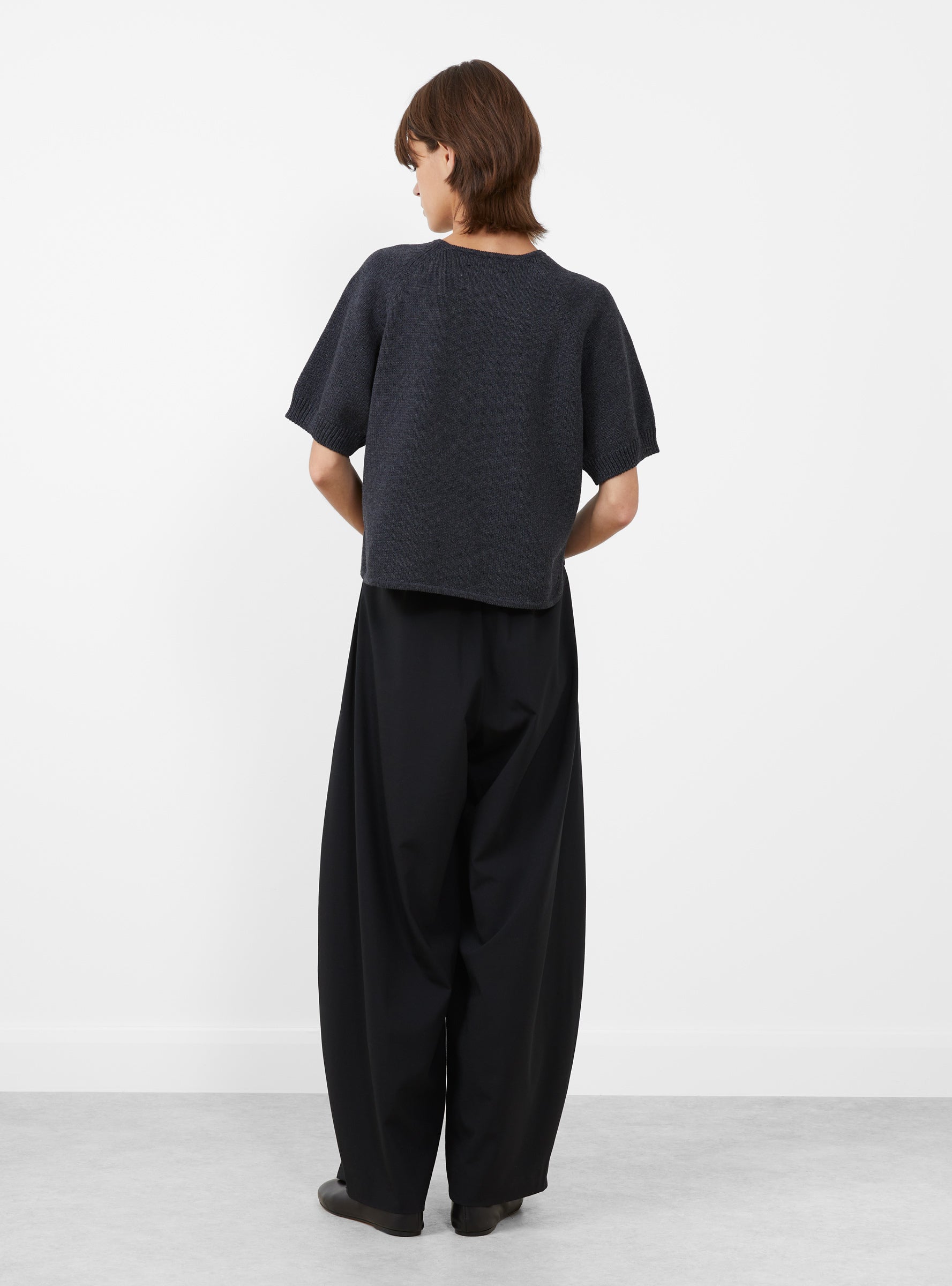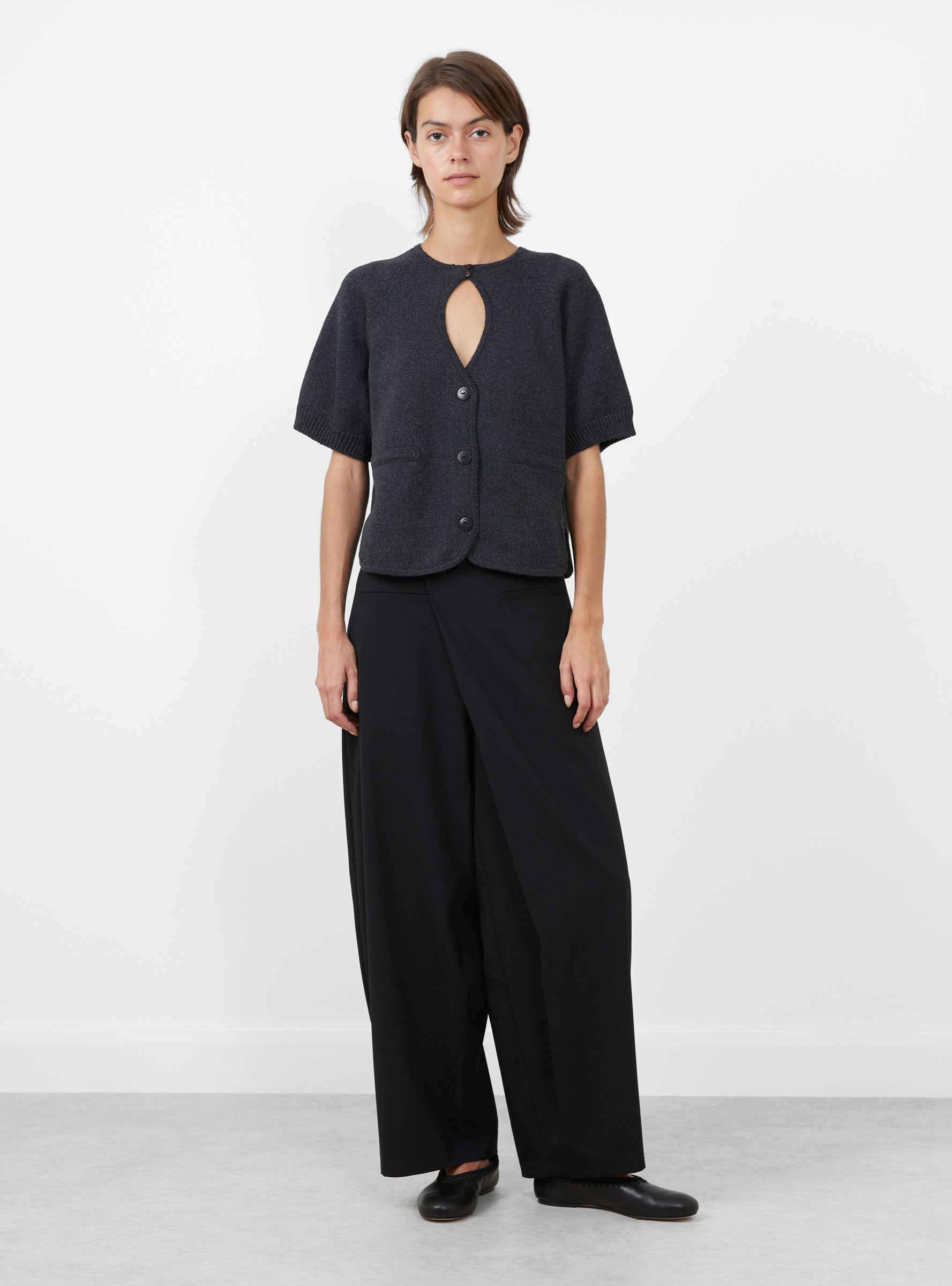 The Cut Out Knit Top from Cordera arrives in Anthracite. Made in Spain from a soft and durable cotton blend, this cropped top features a teardrop neckline and short sleeves. It includes a front button closure with two welted pockets and red stitching for subtle detail.