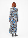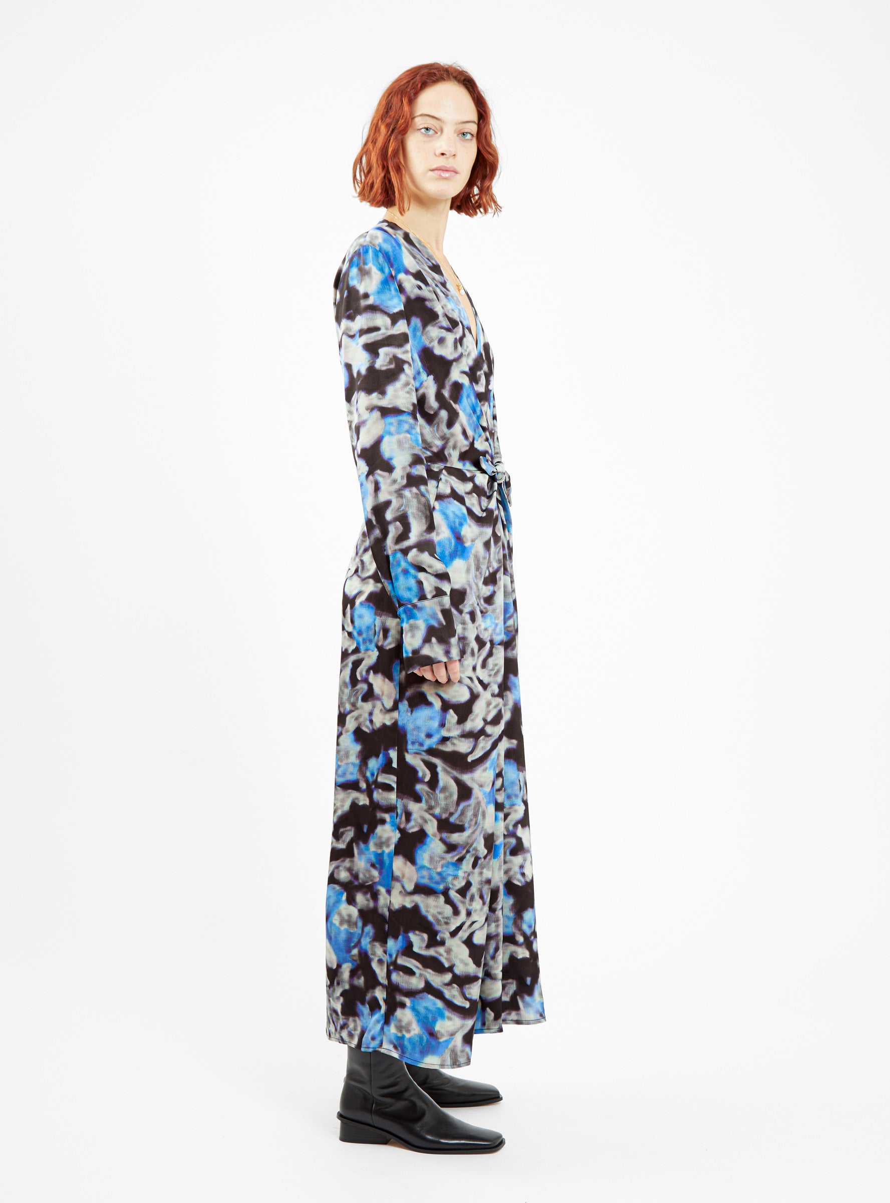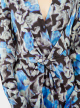 Featuring one of the label’s signature abstract motifs, this blue Darkah dress from Christian Wijnants is cut to a figure-skimming silhouette with a V-neck and knotted waist detailing.